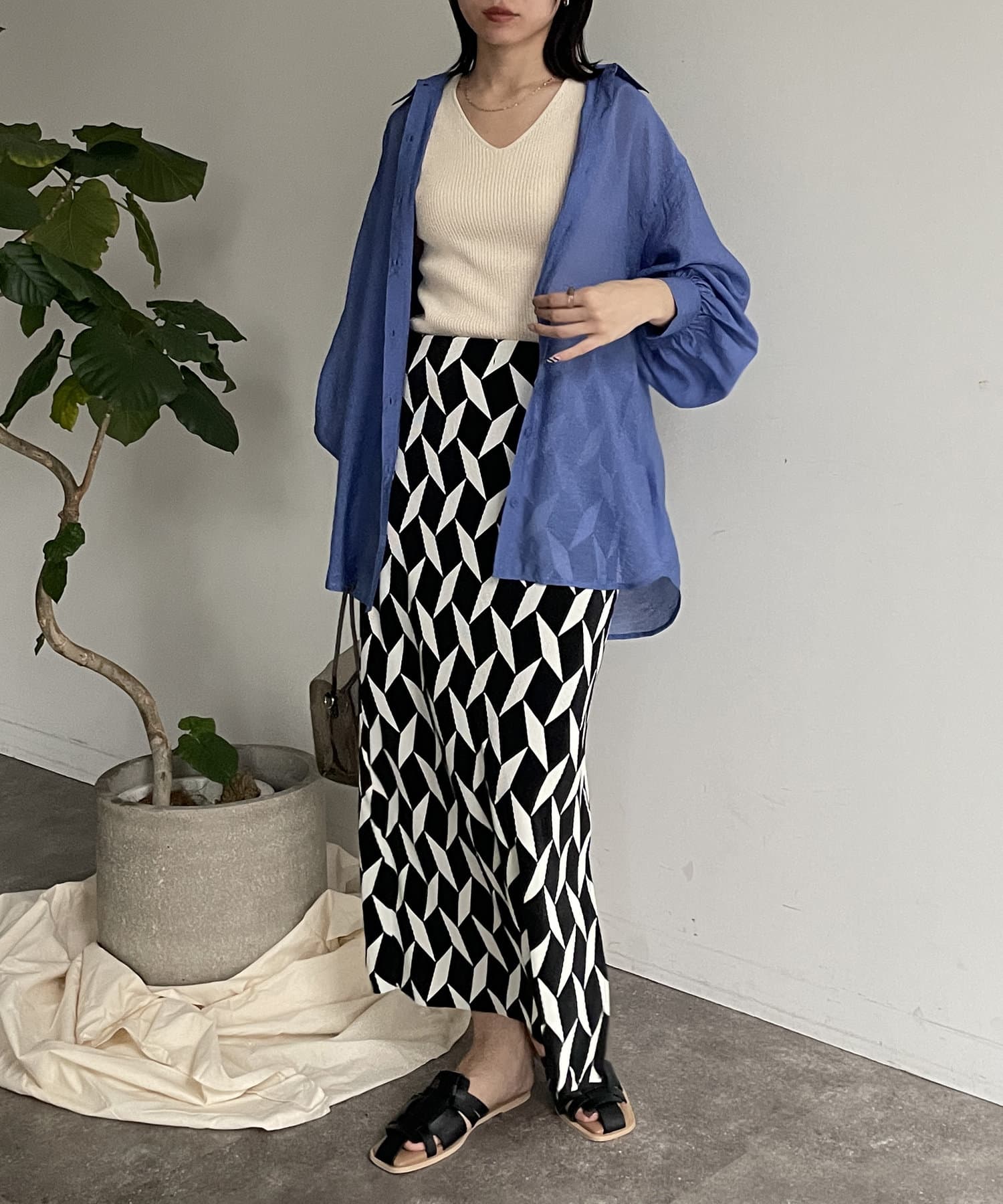 履くだけでこなれ感UPの幾何柄スカート