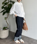 #ショート丈 #短丈 #ノーカラー #ブラウス