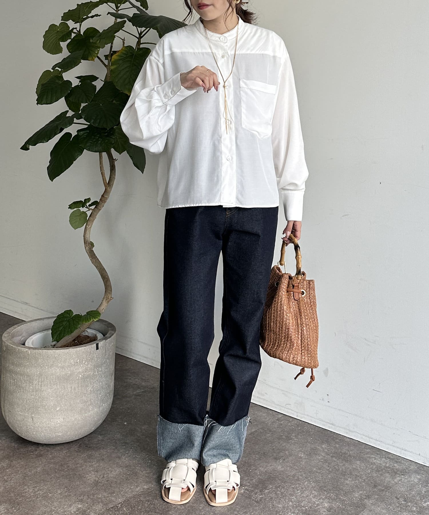 ・首元がスッキリ見えスタイルUPが叶うバンドカラー