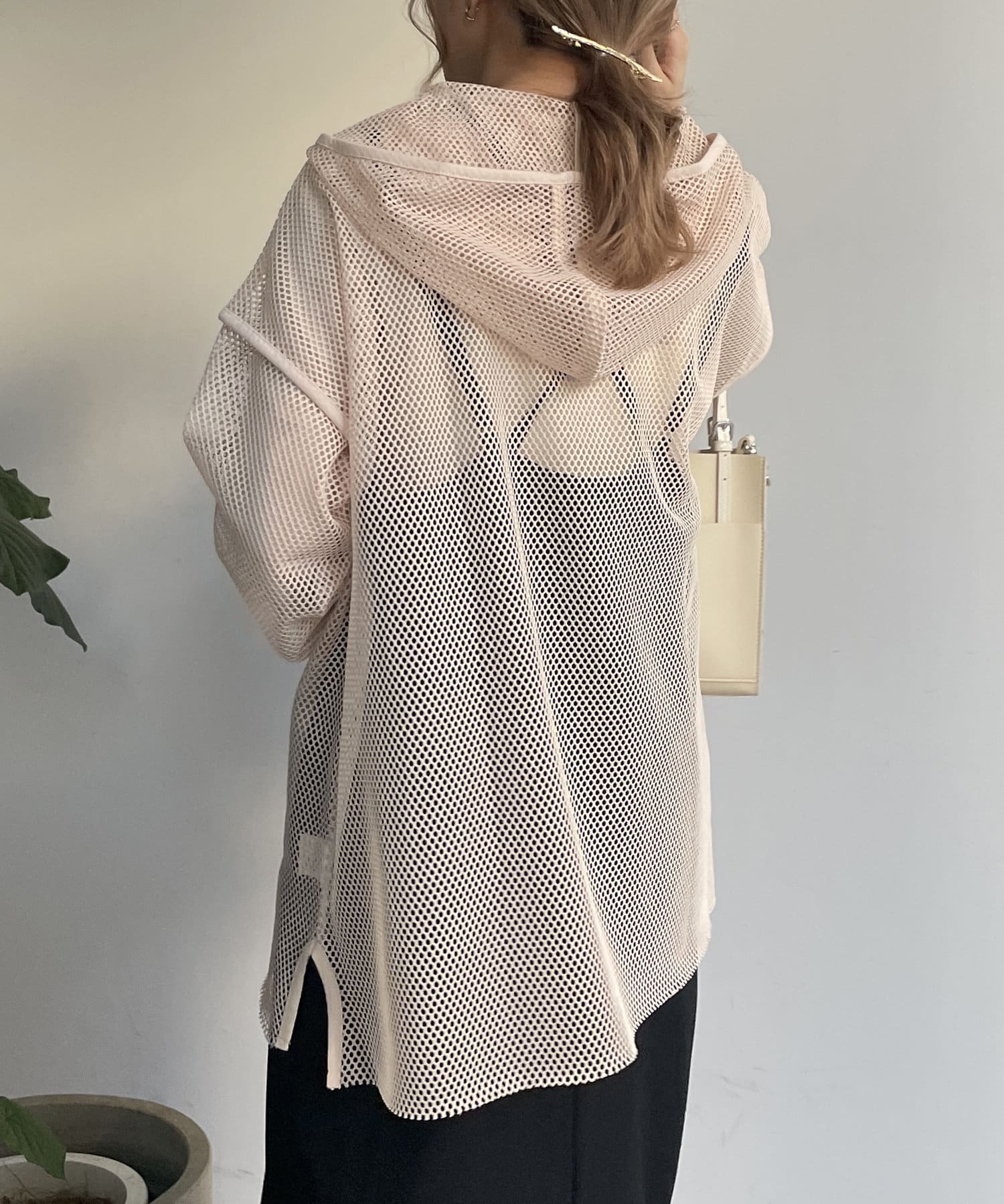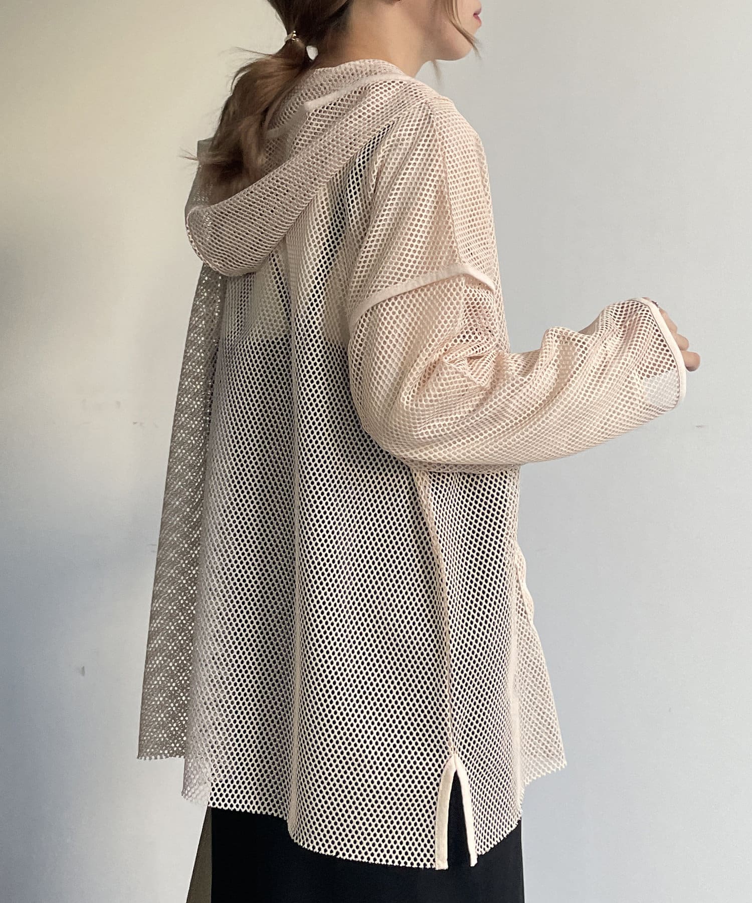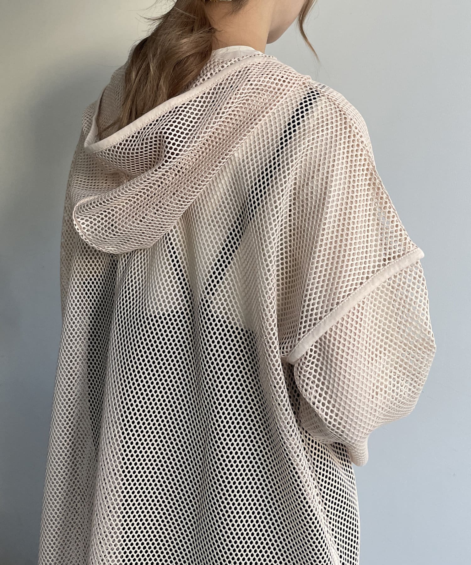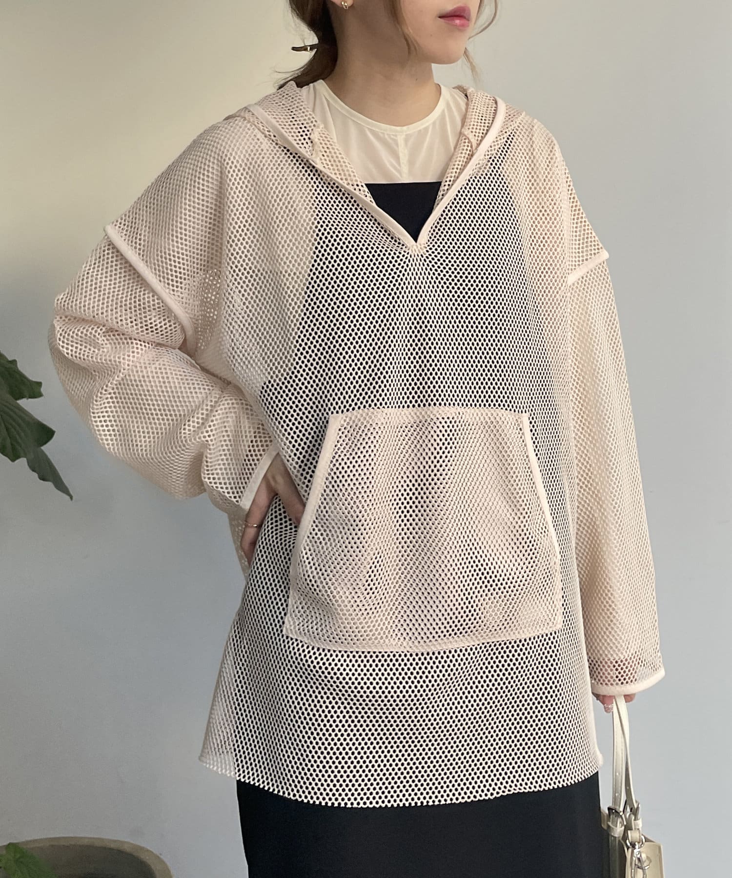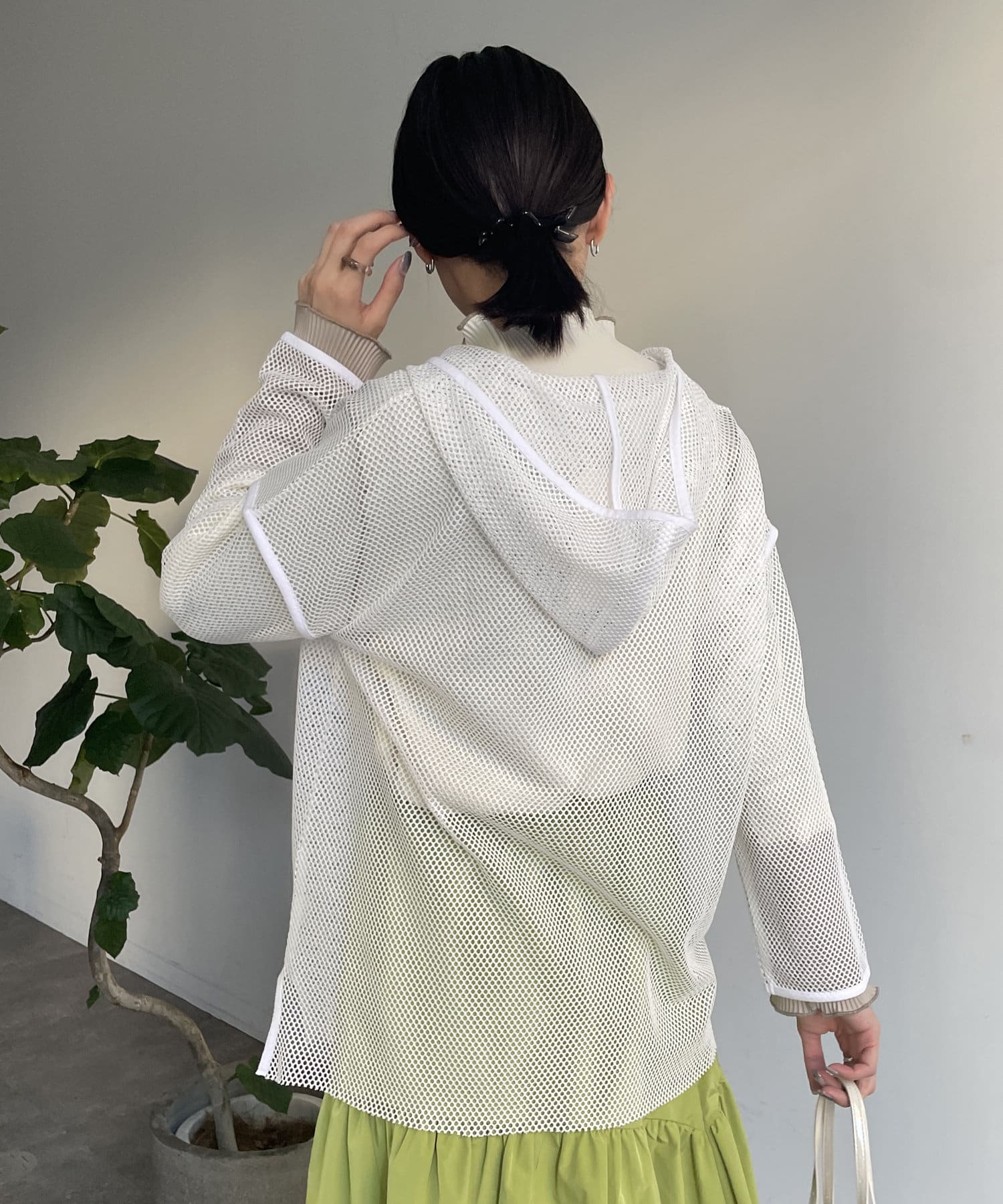 ・カジュアルさと女性らしさを合わせたメッシュ素材のフーディー