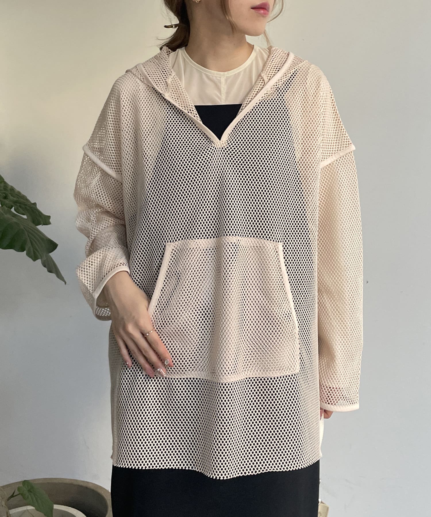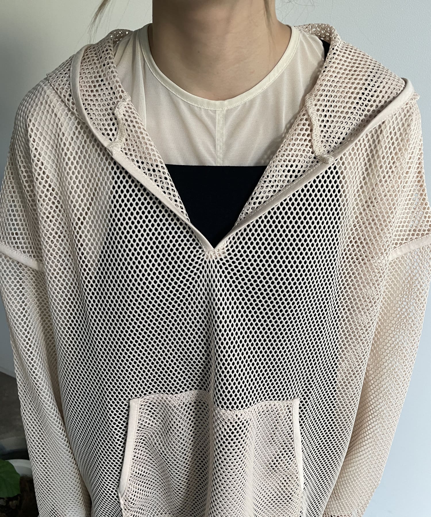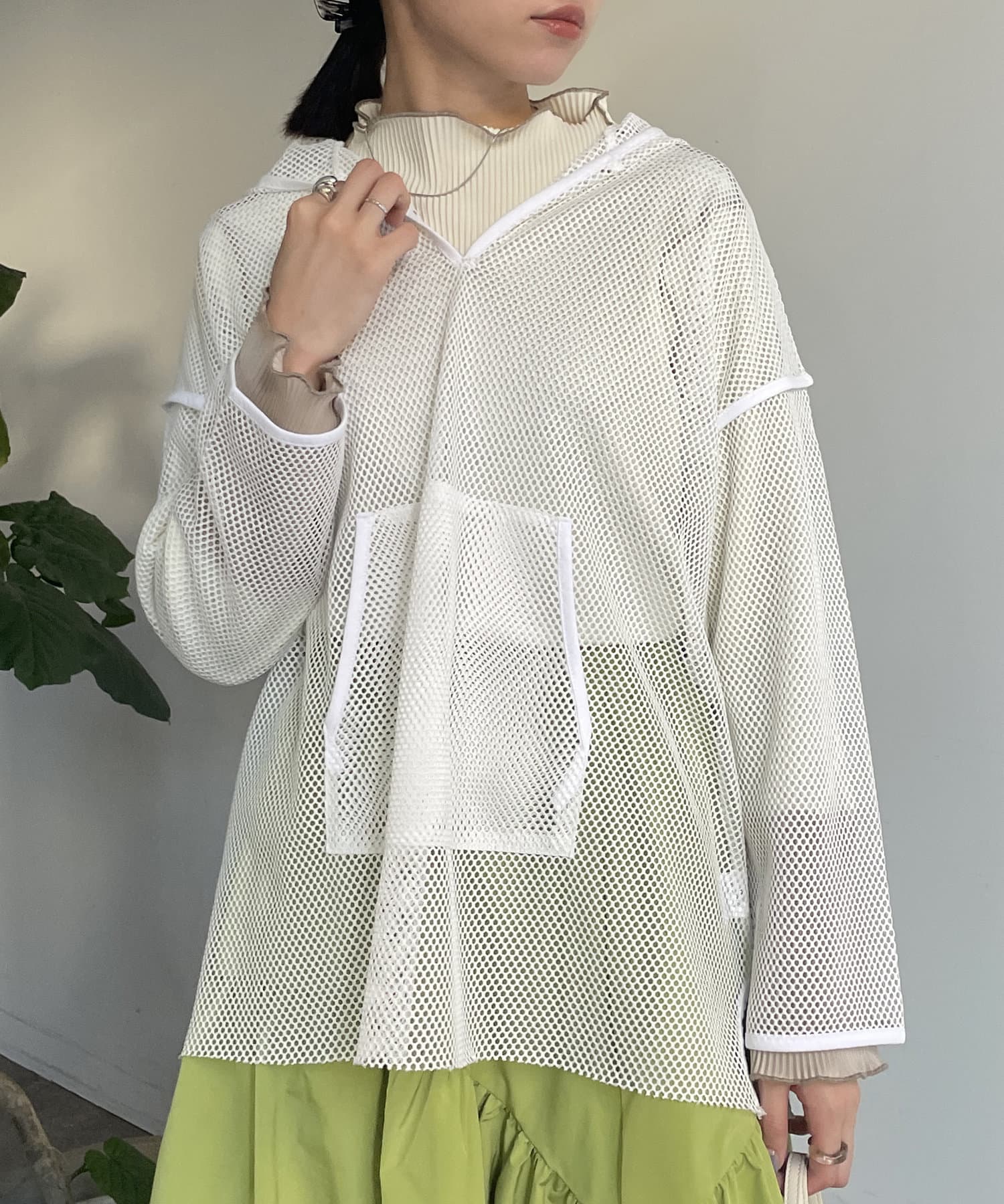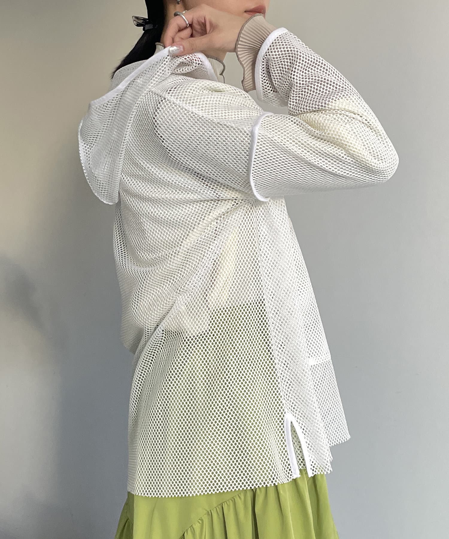・カジュアルさと女性らしさを合わせたメッシュ素材のフーディー