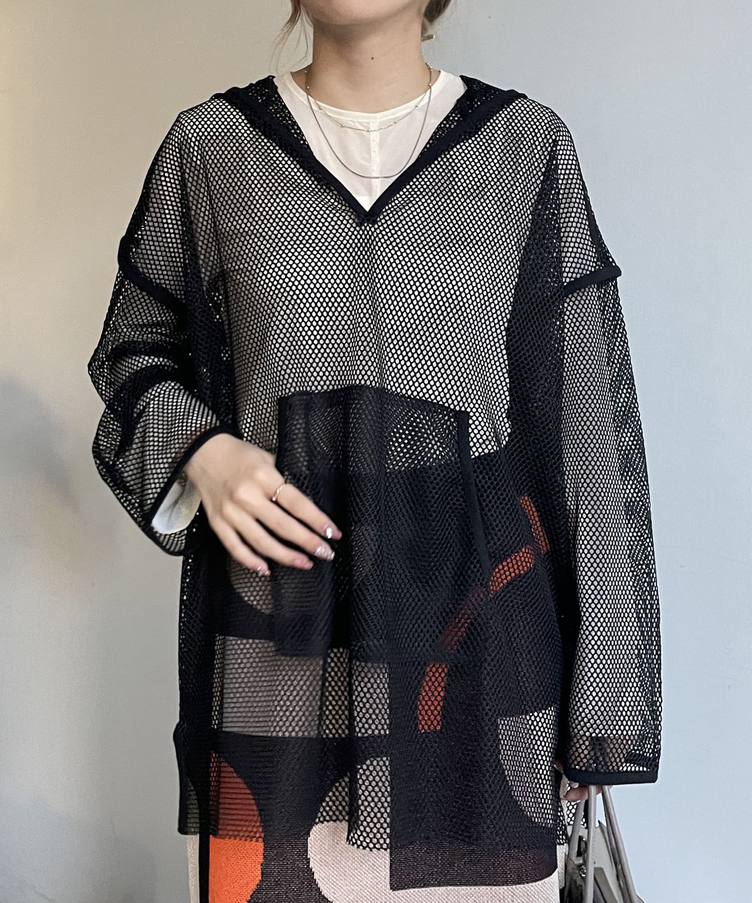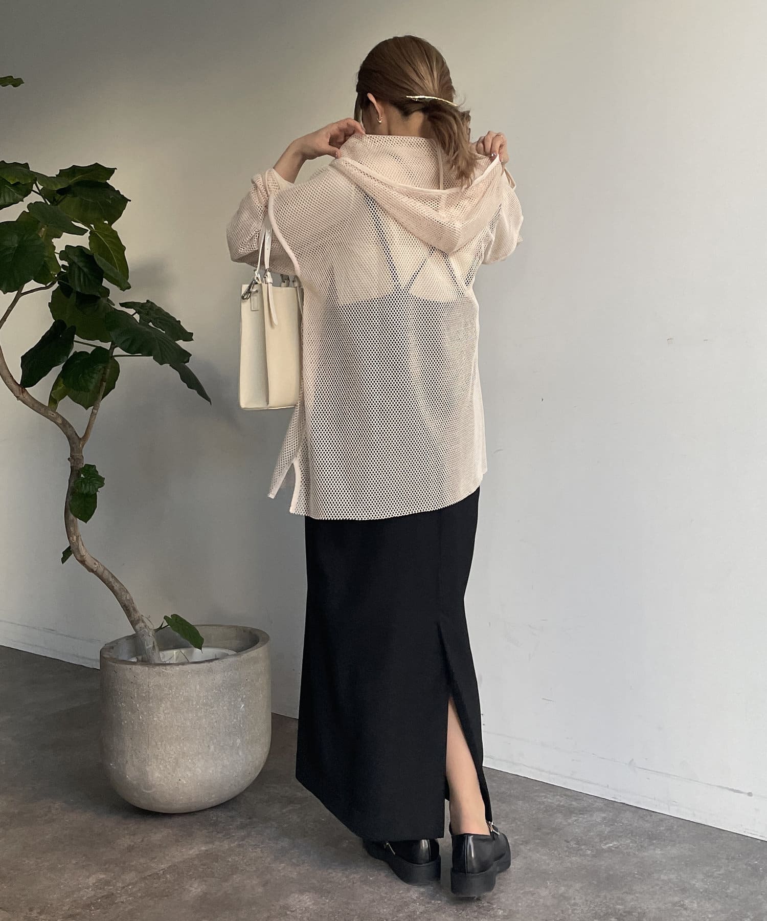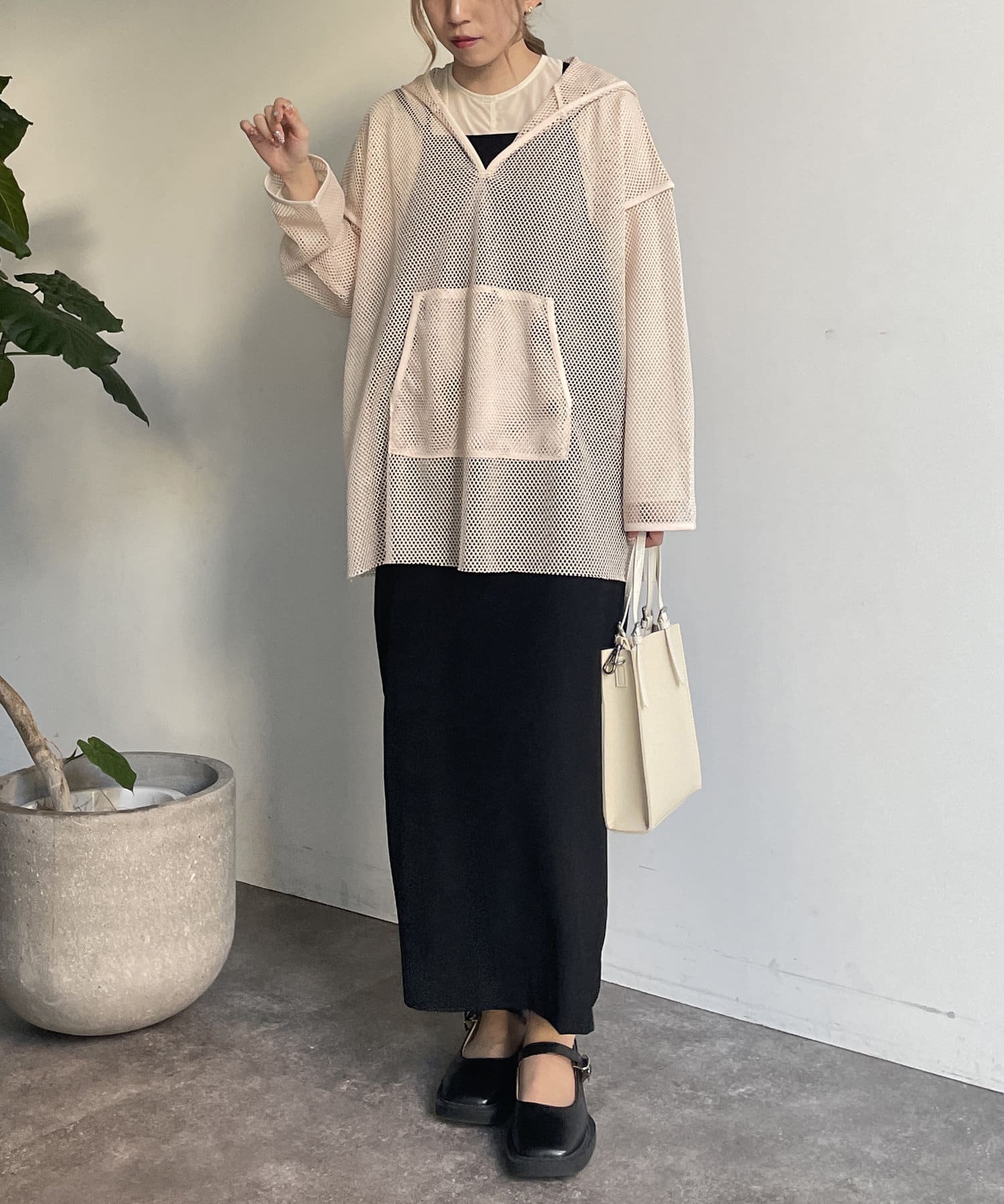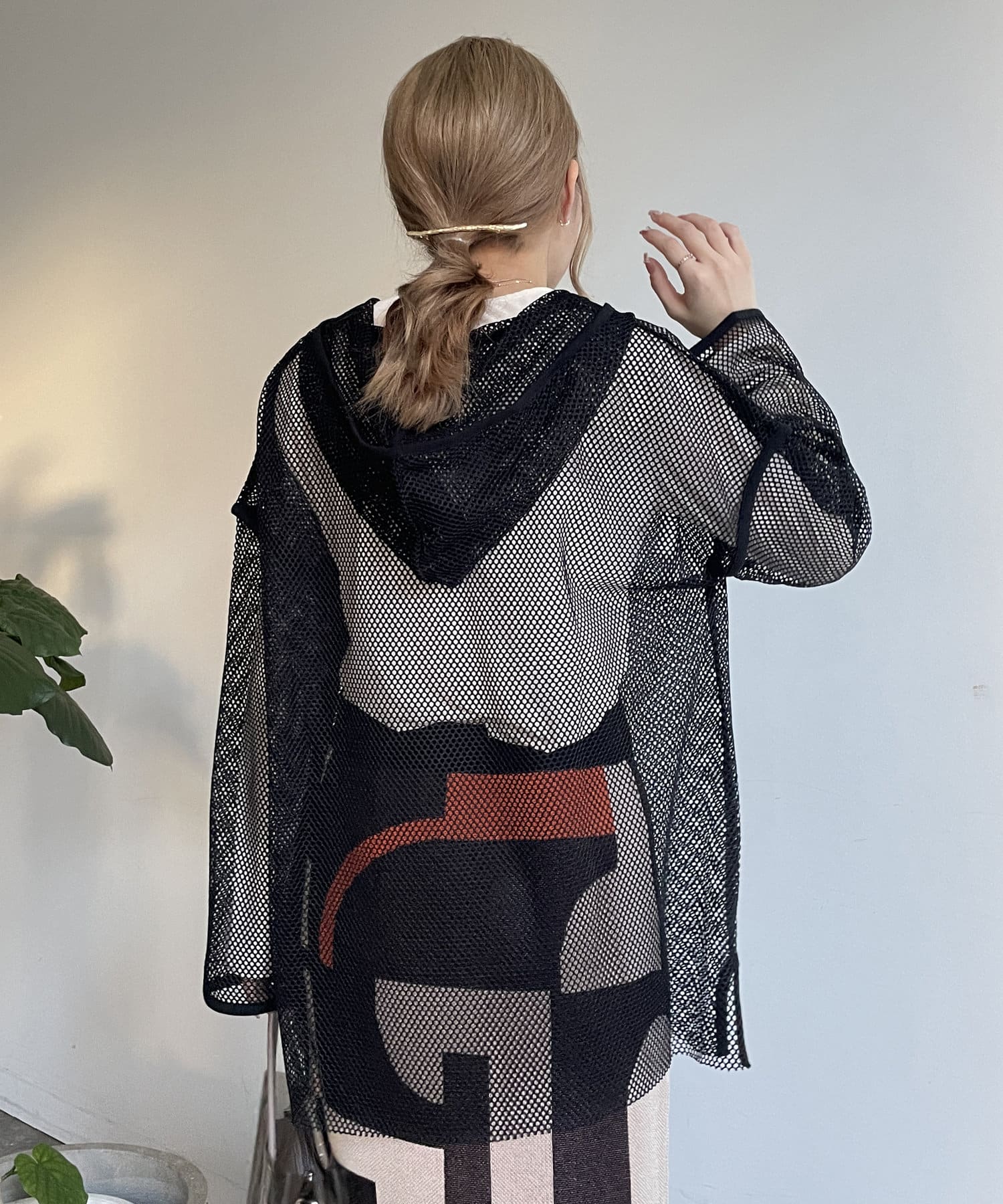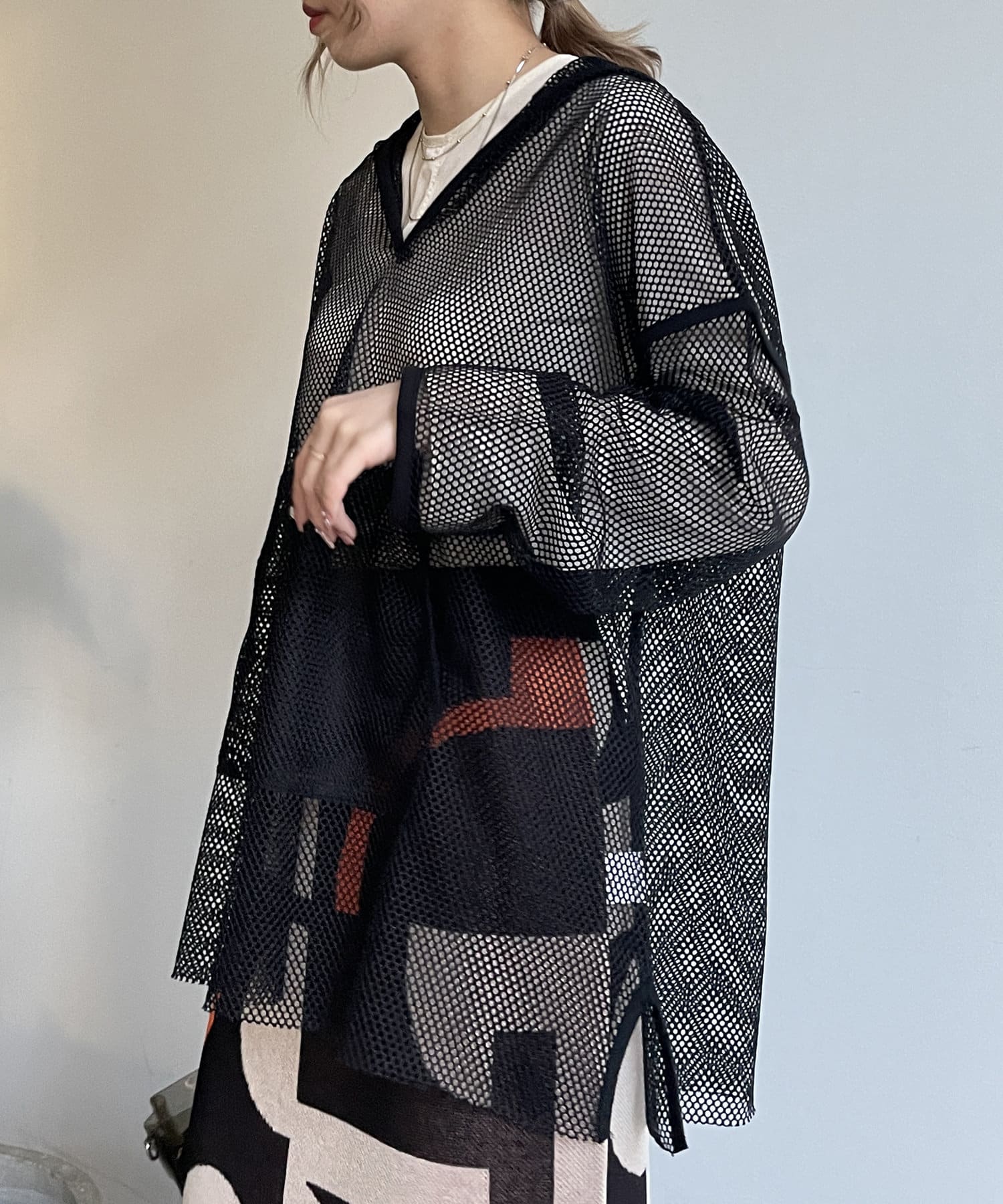 ・カジュアルさと女性らしさを合わせたメッシュ素材のフーディー