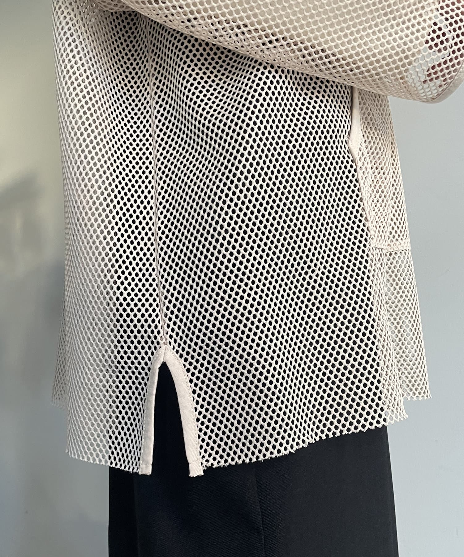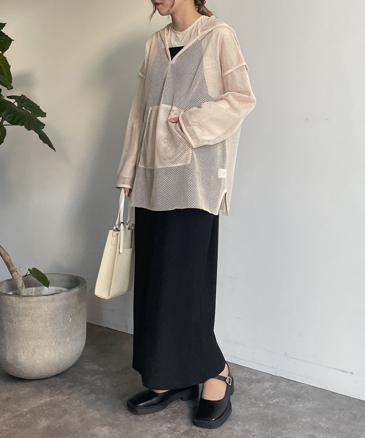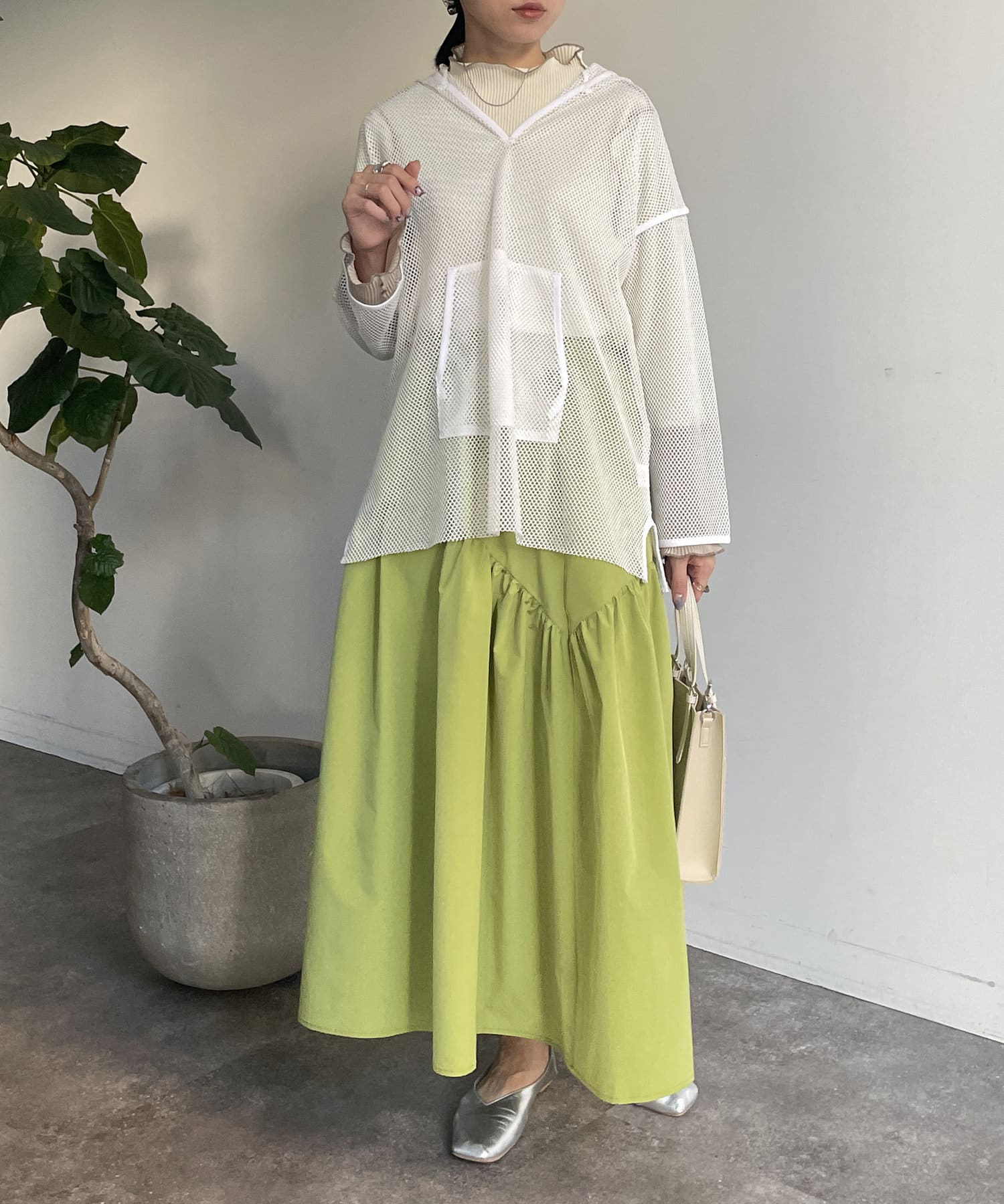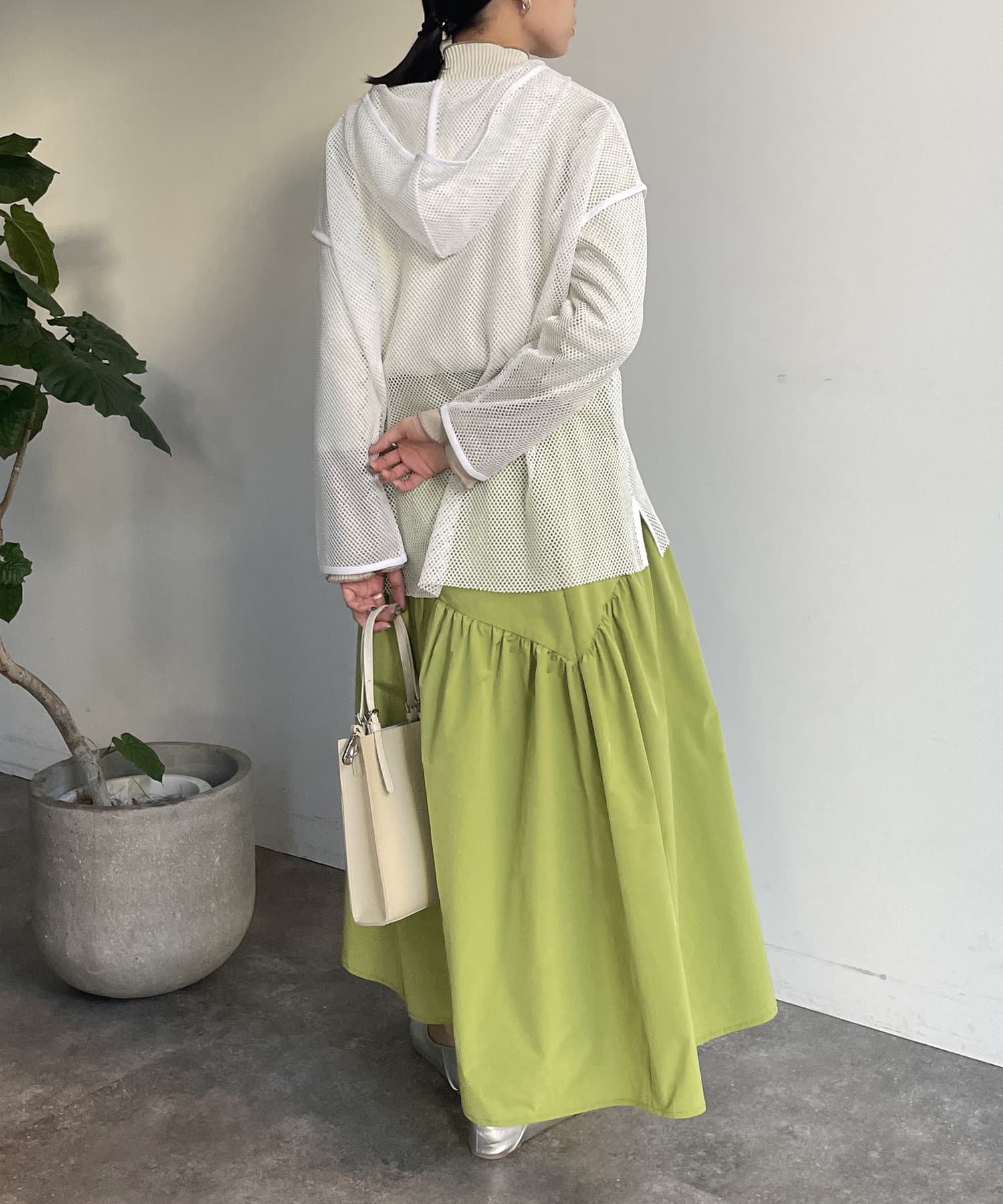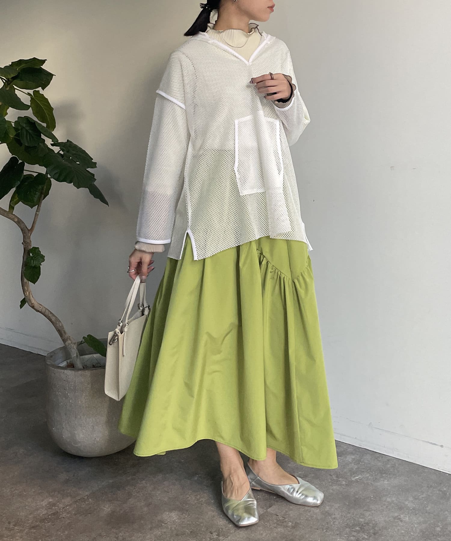 ・カジュアルさと女性らしさを合わせたメッシュ素材のフーディー