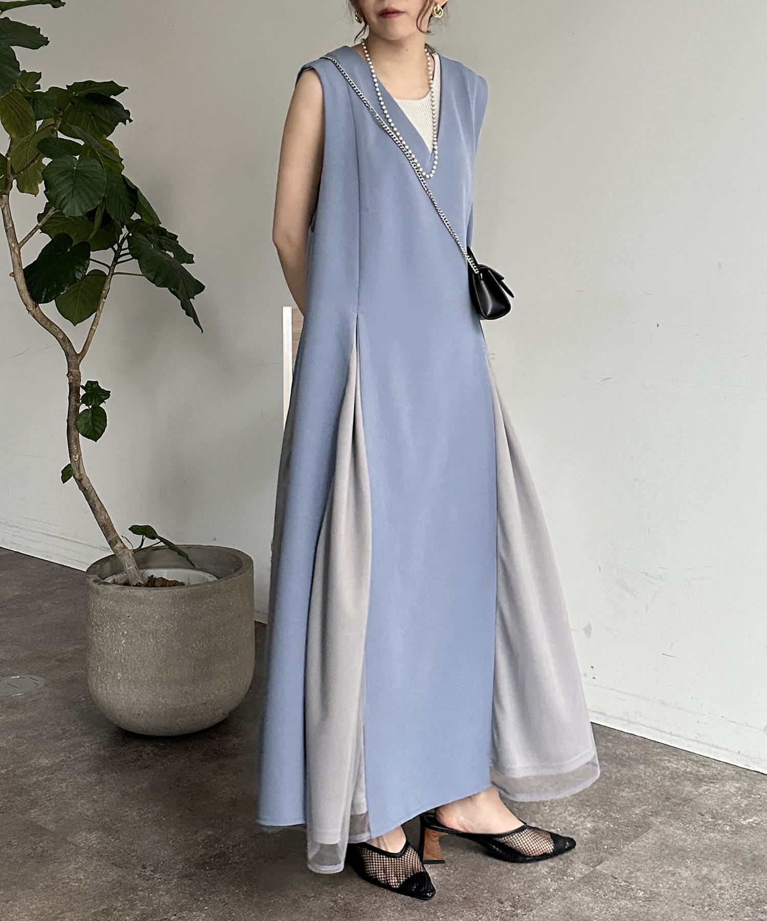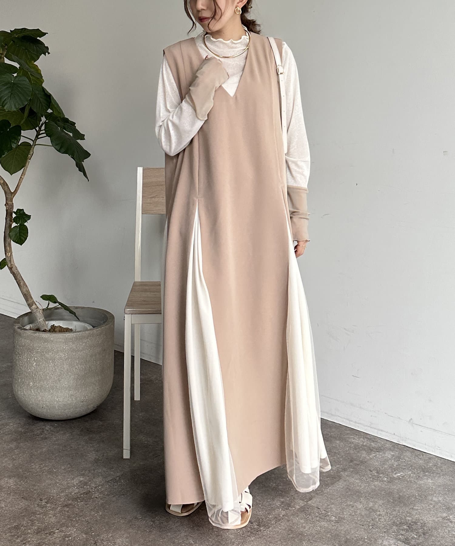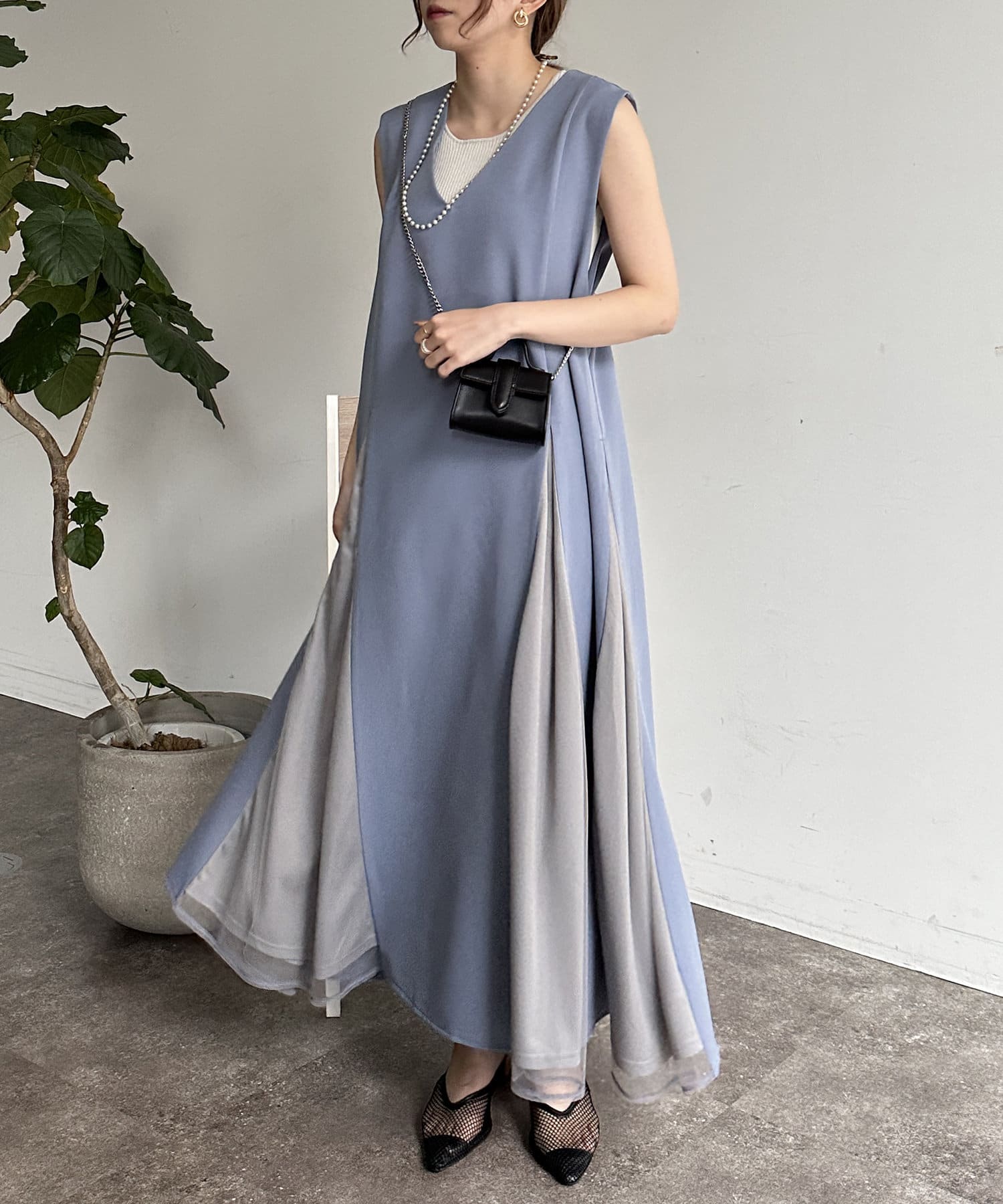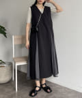 #レイヤード #異素材切替 #バイカラー #デザインワンピース