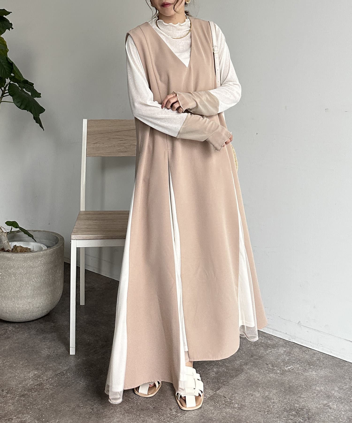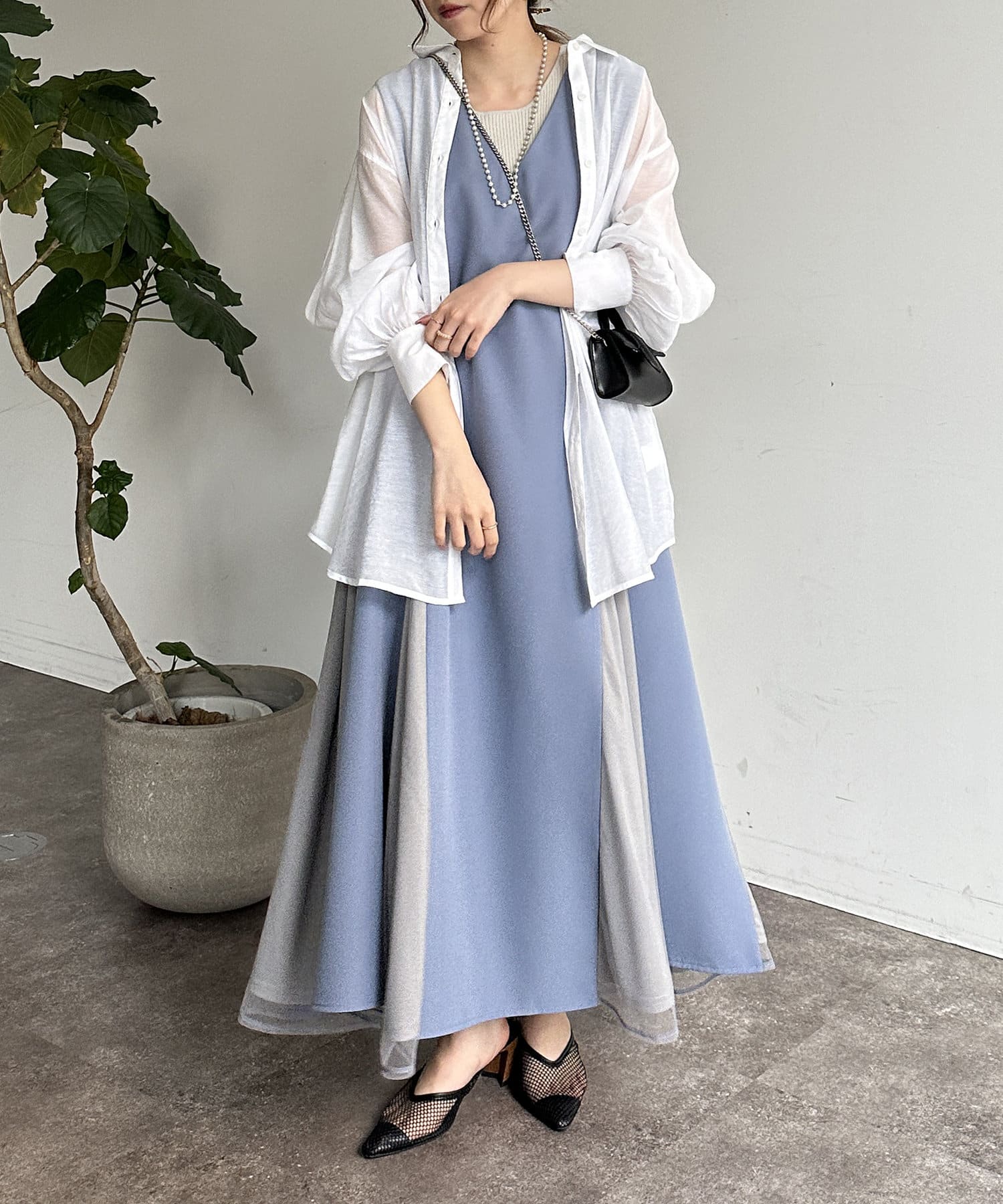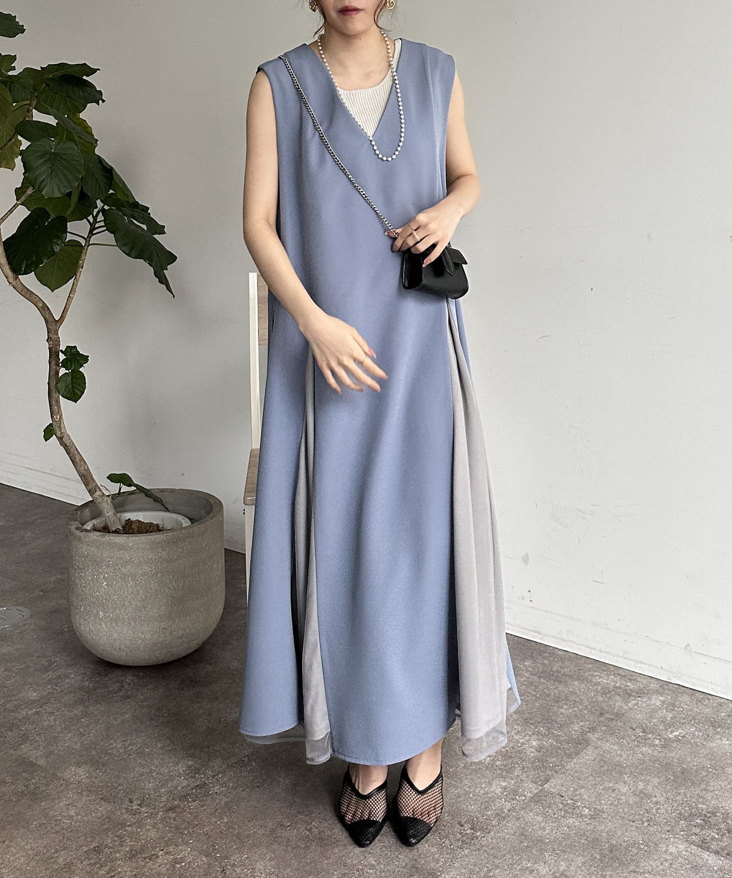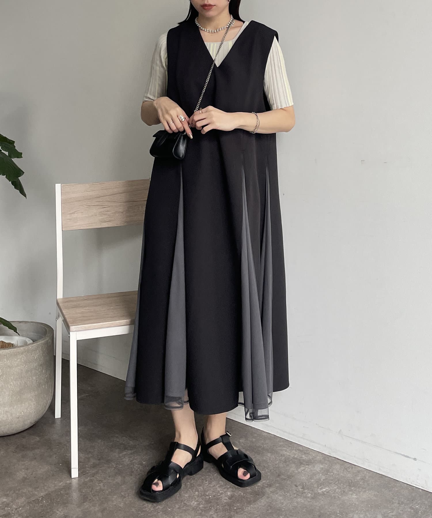 #レイヤード #異素材切替 #バイカラー #デザインワンピース