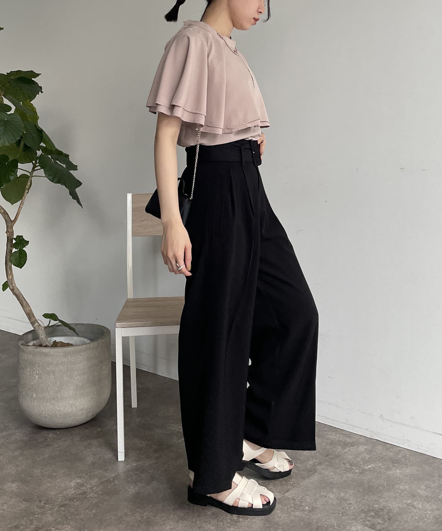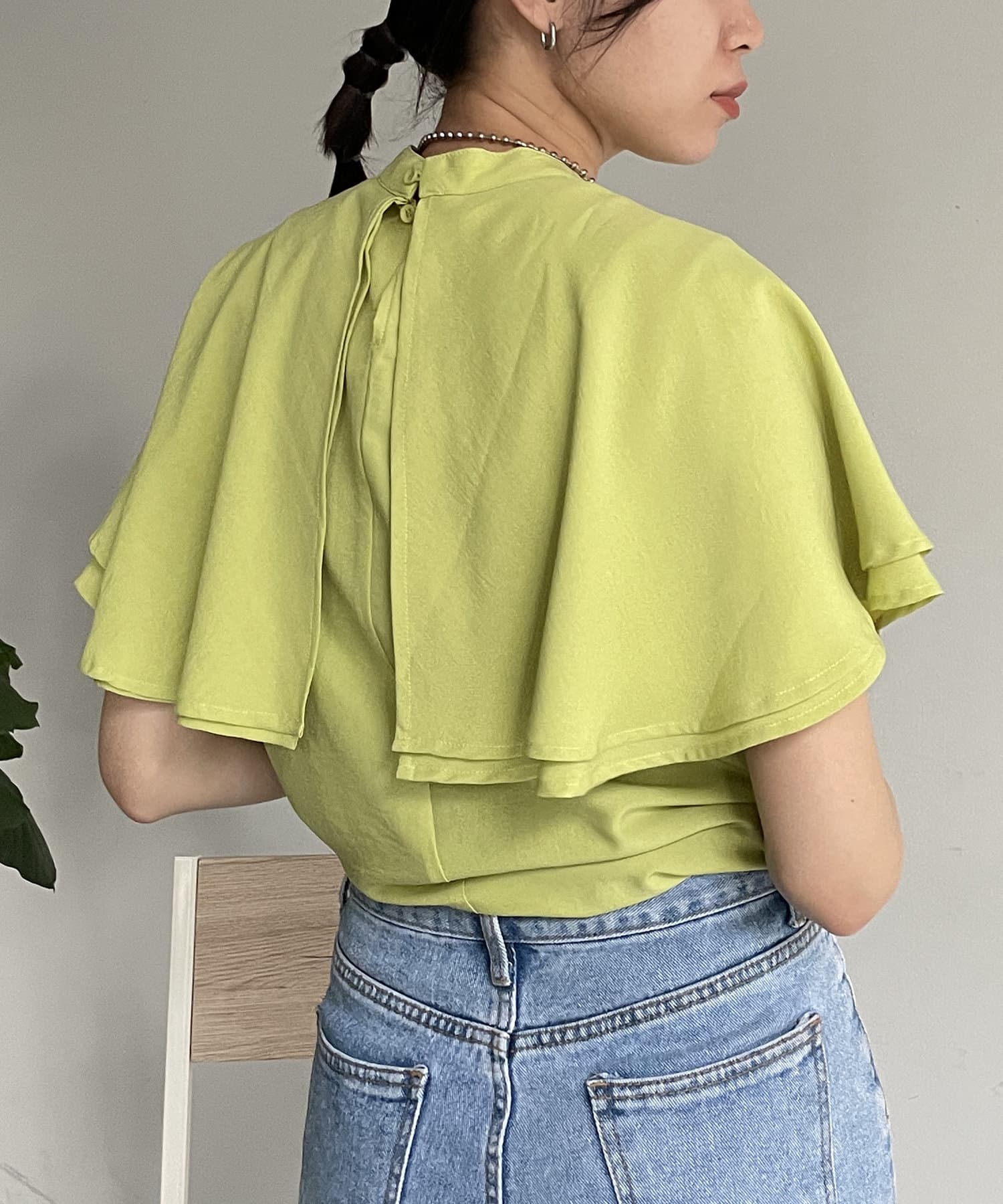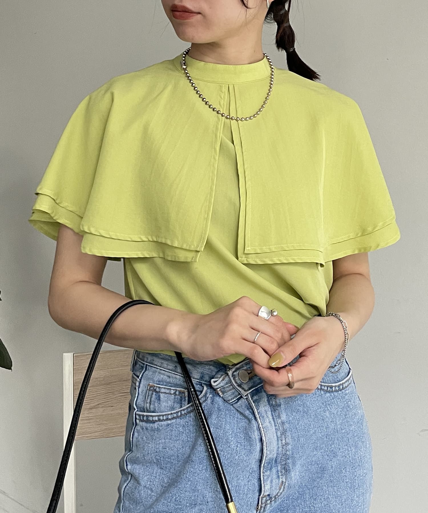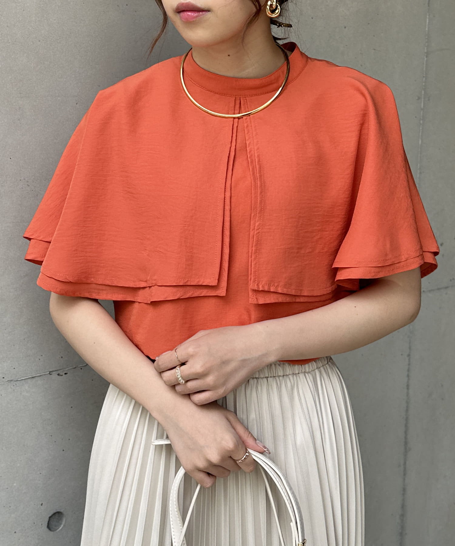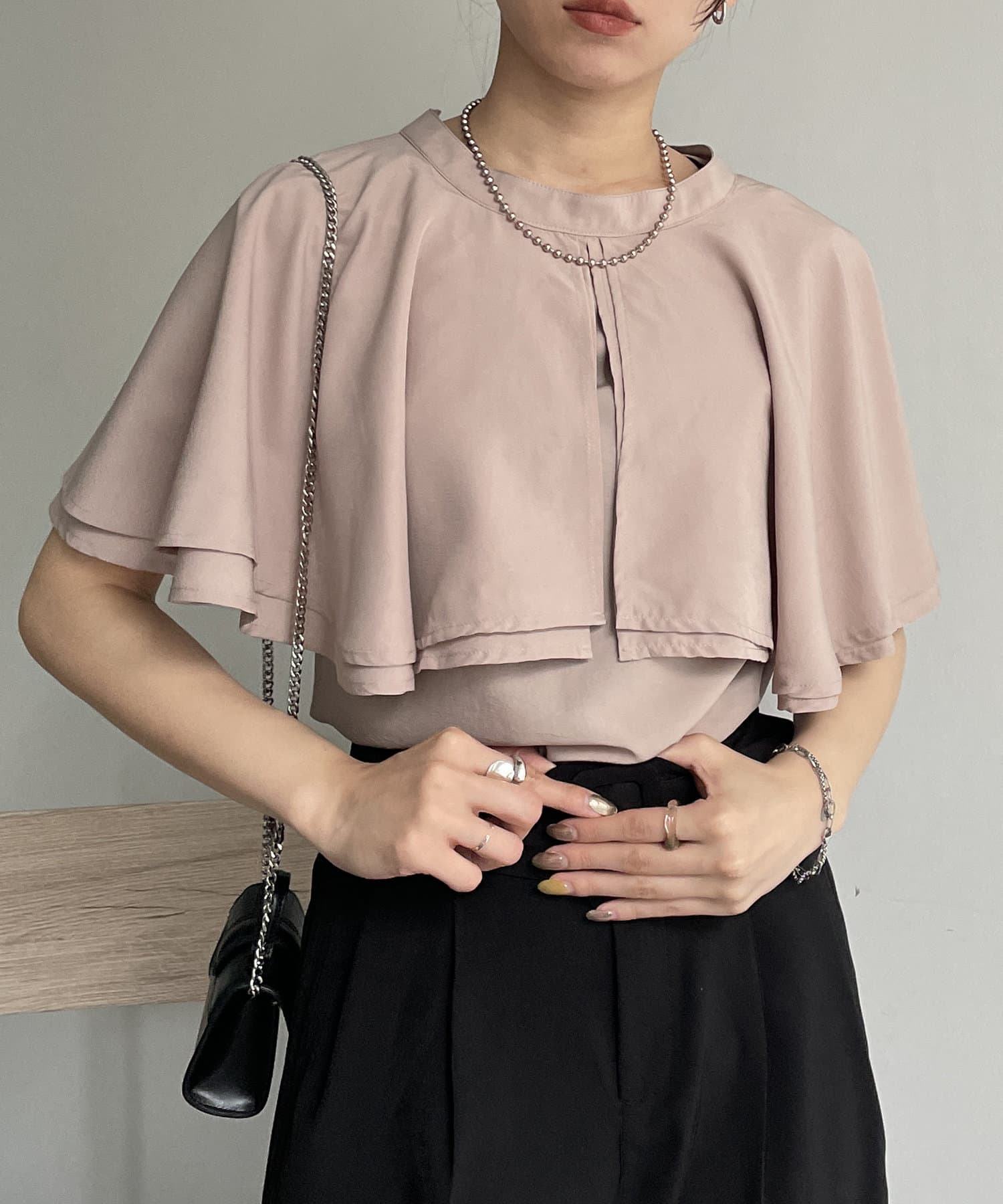 女性らしさ満載のケープブラウス