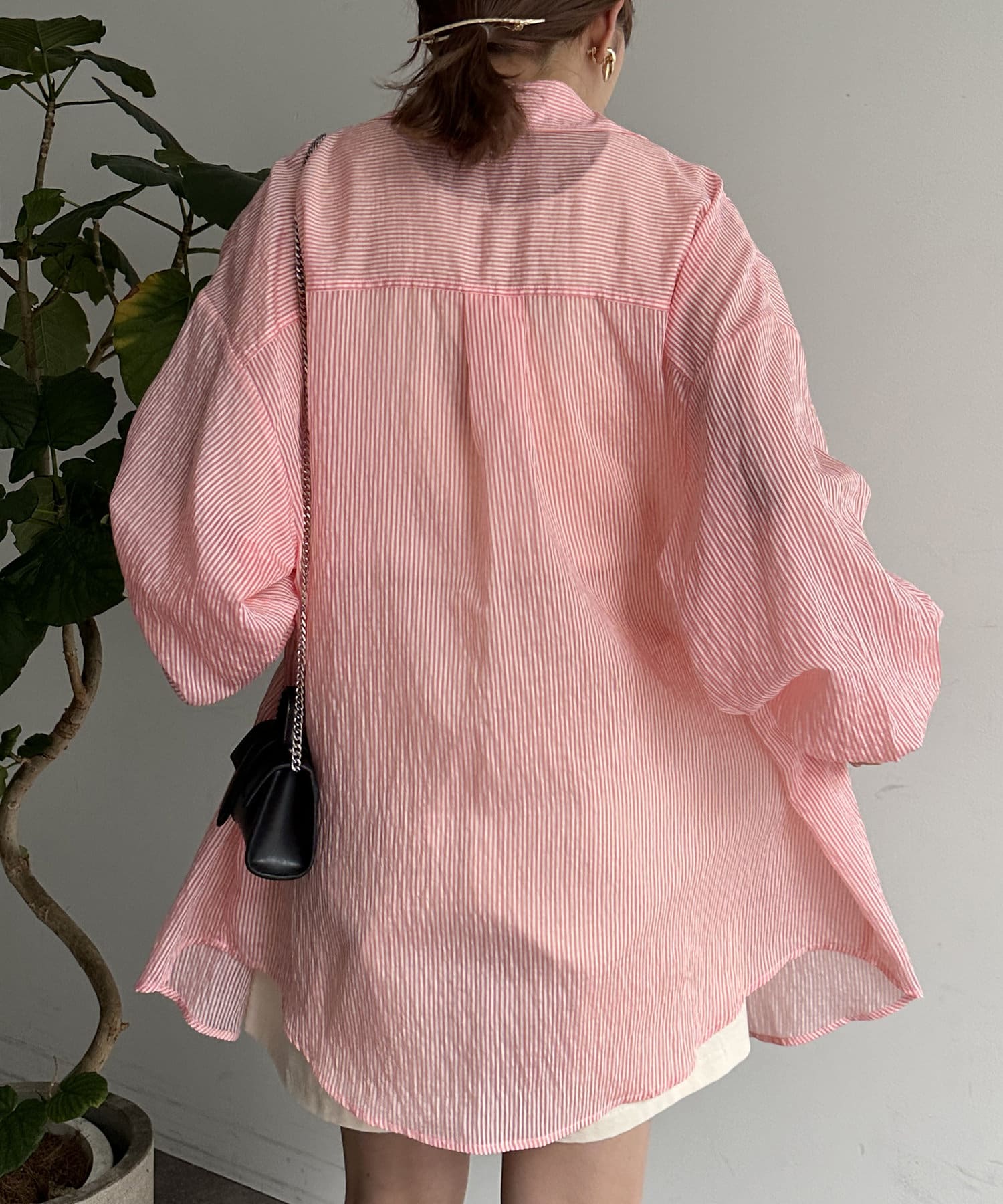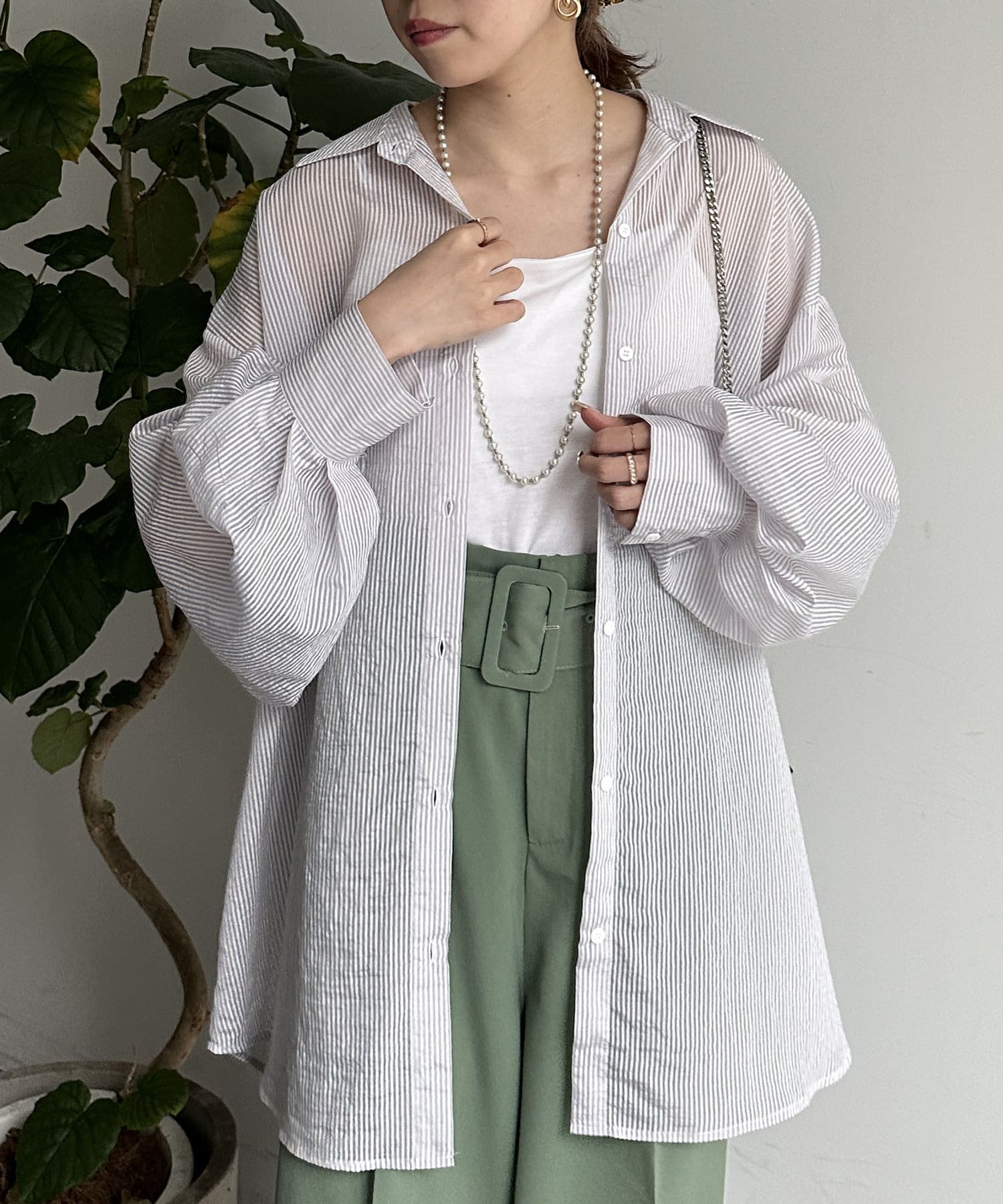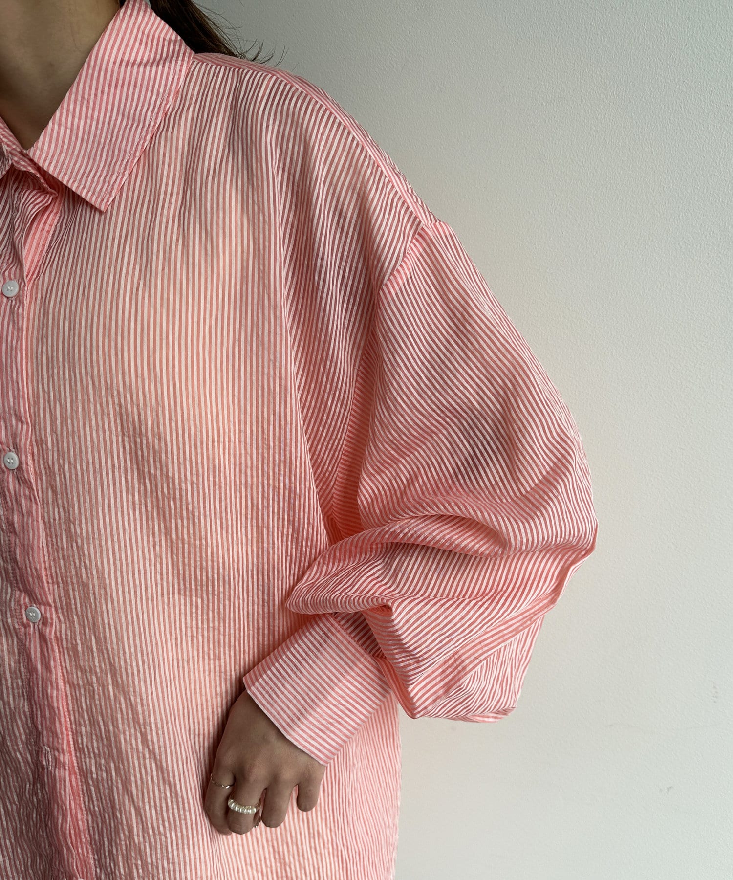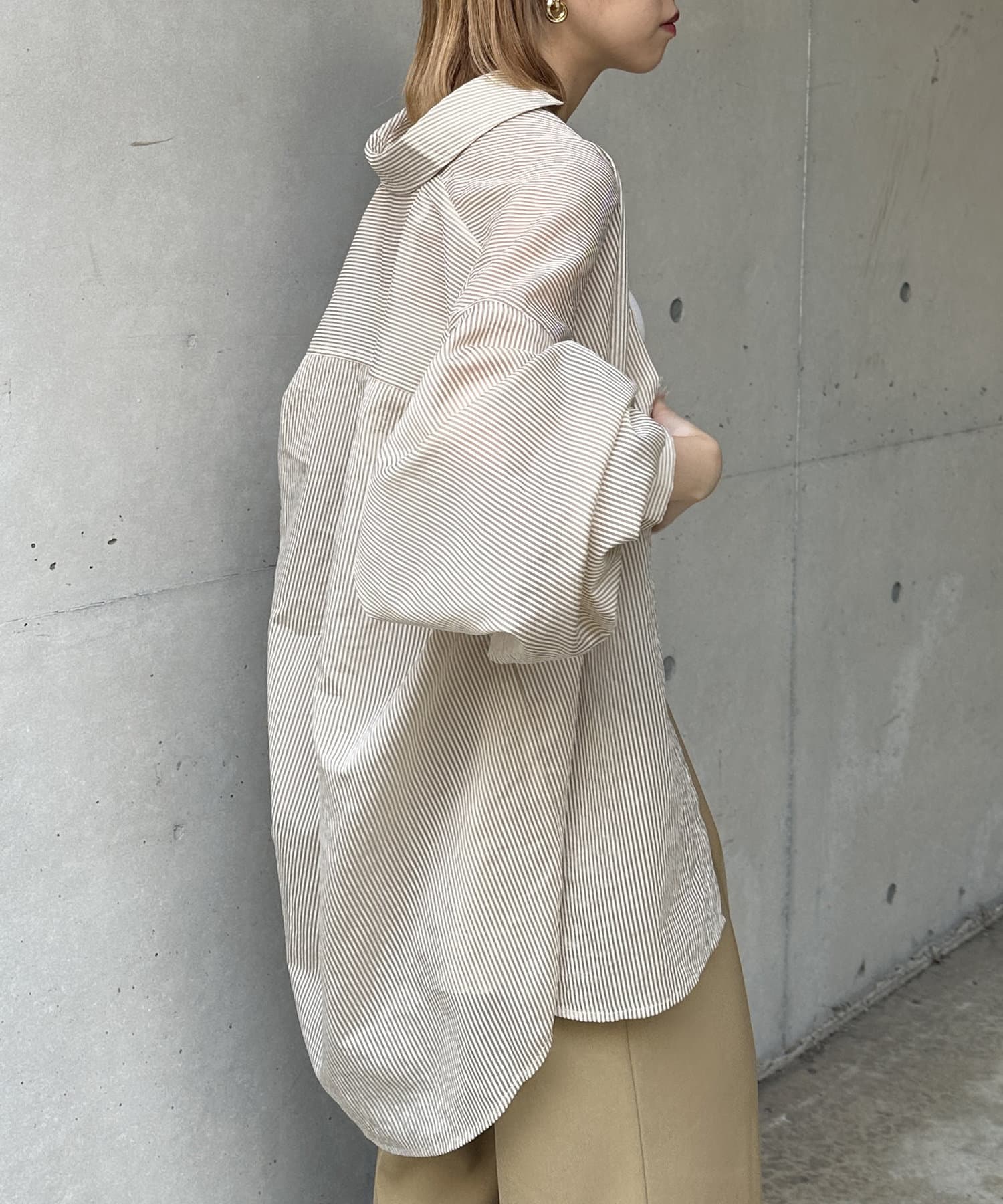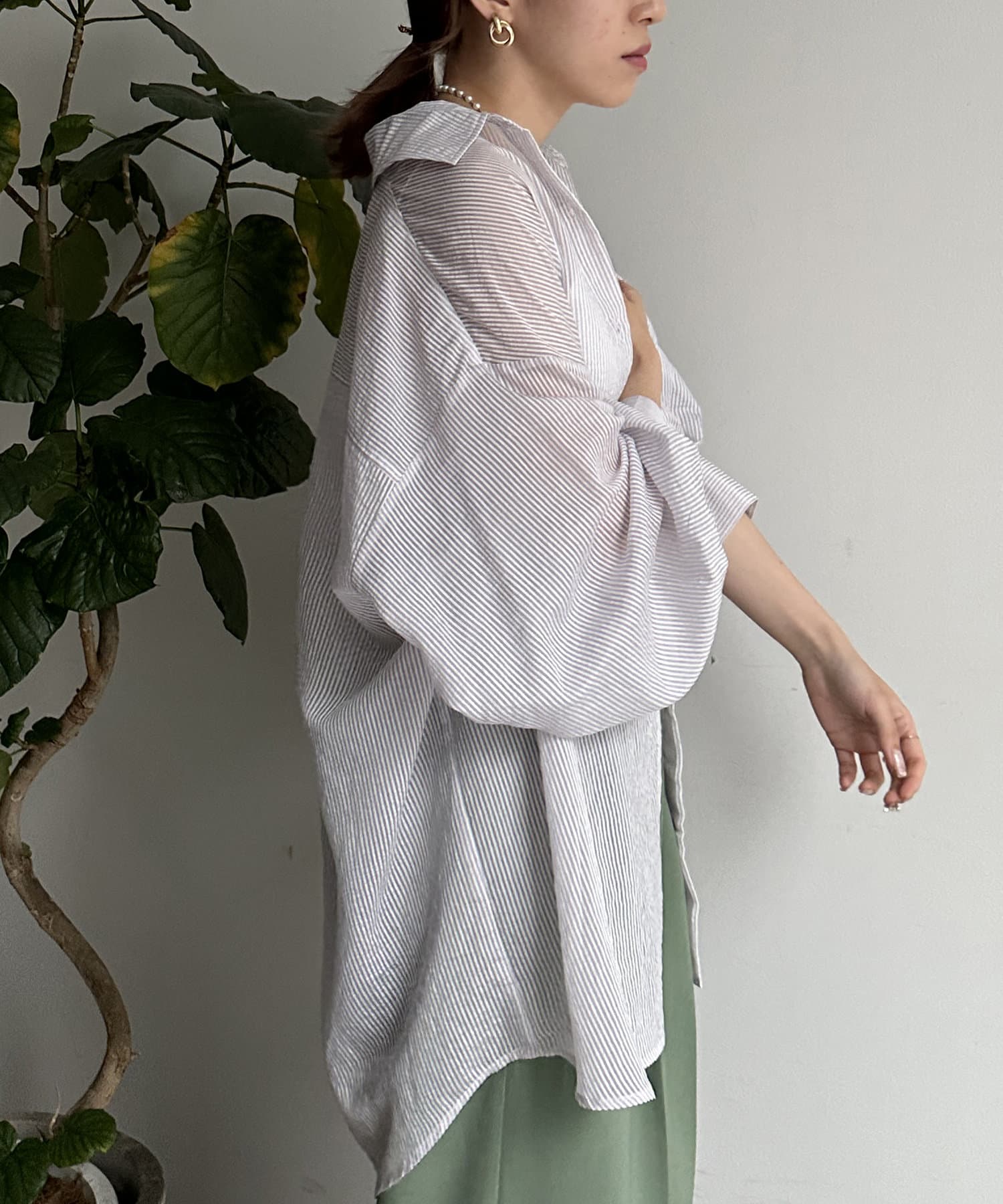 透け感のあるストライプ柄が夏を感じさせる、オーバーサイズシャツ