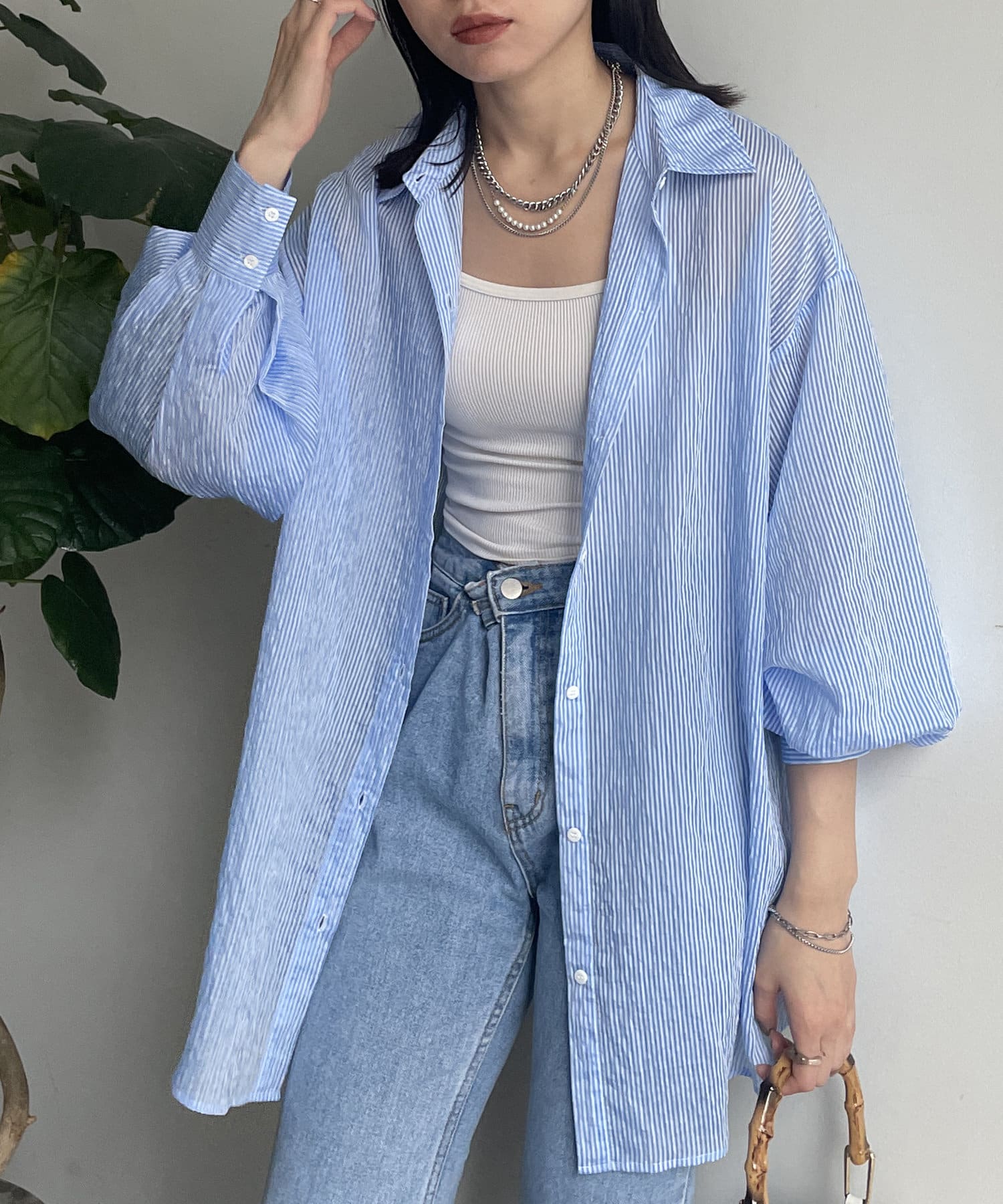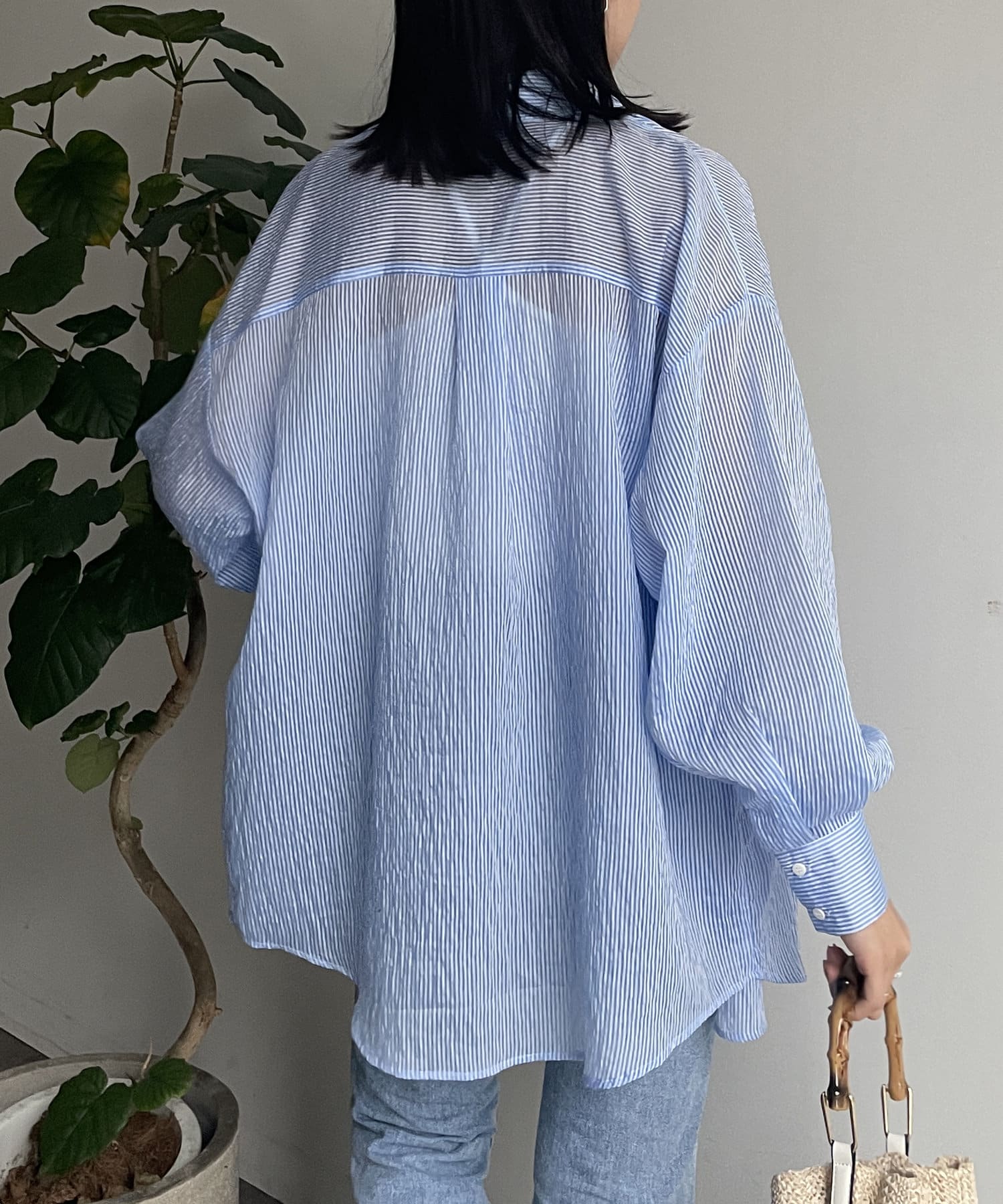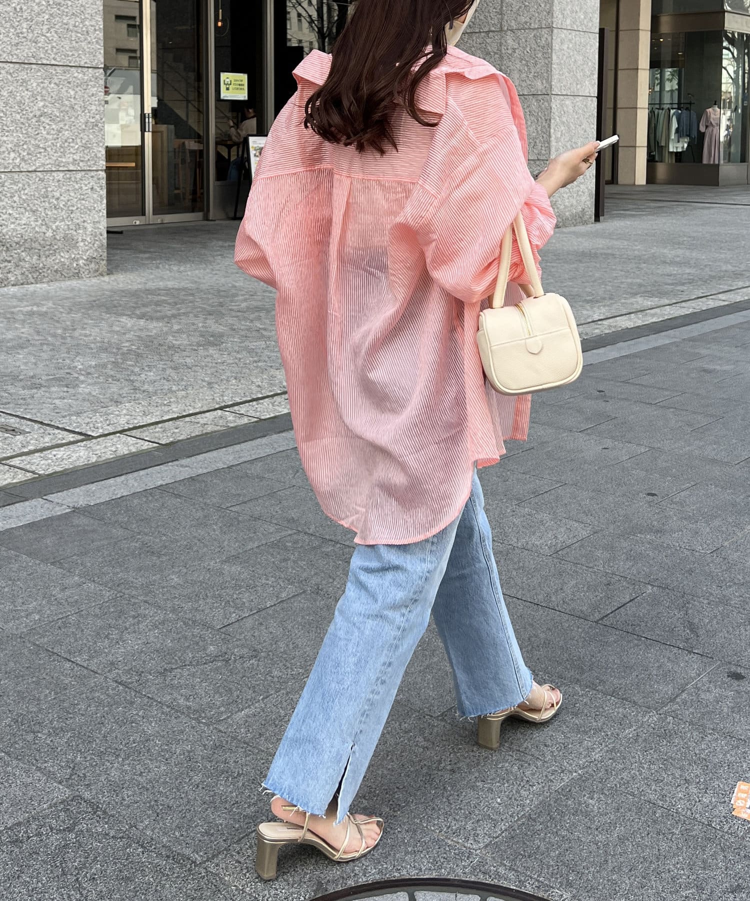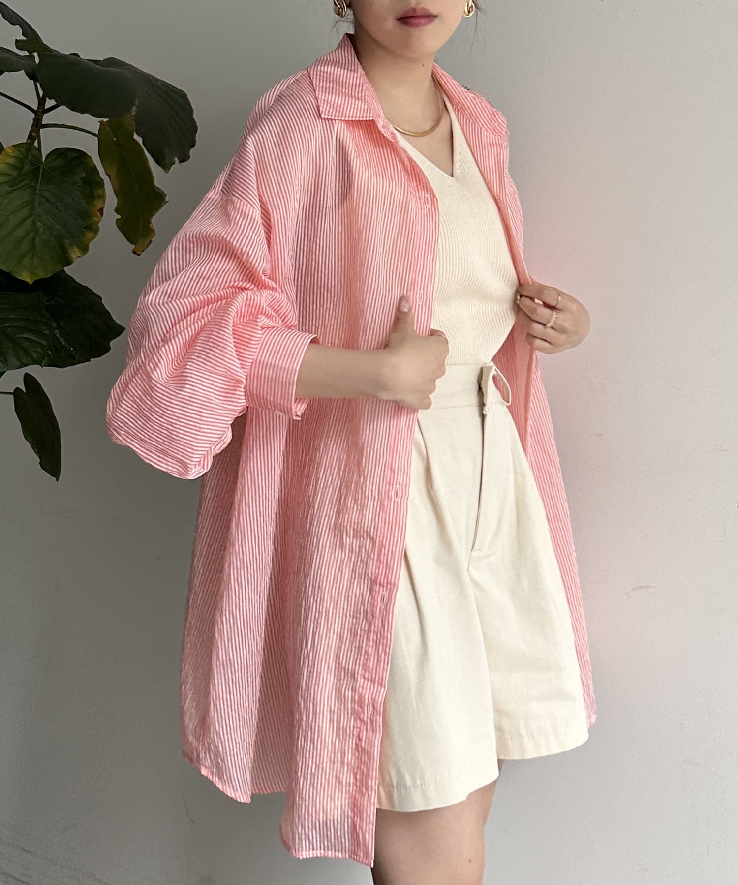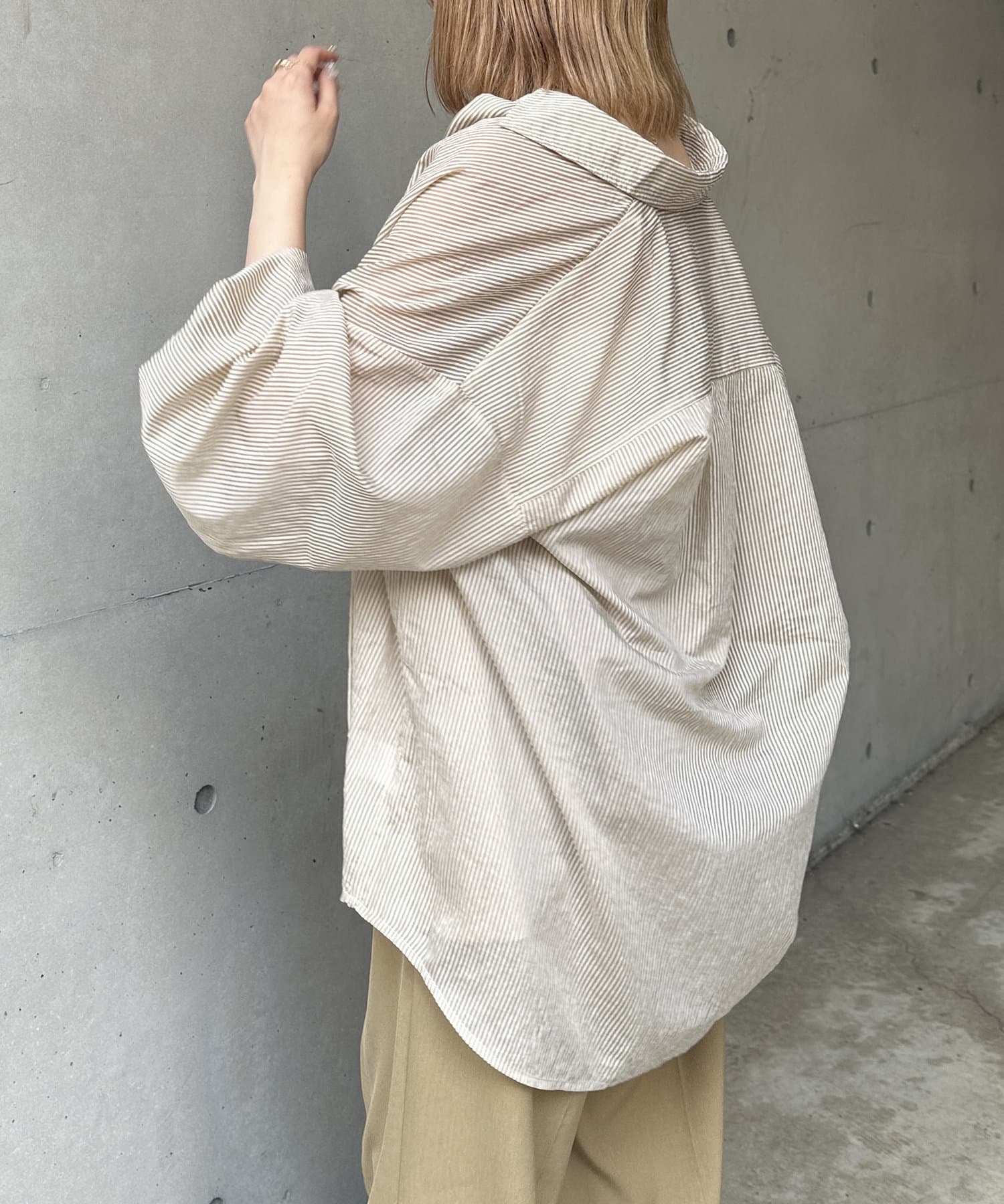 透け感のあるストライプ柄が夏を感じさせる、オーバーサイズシャツ