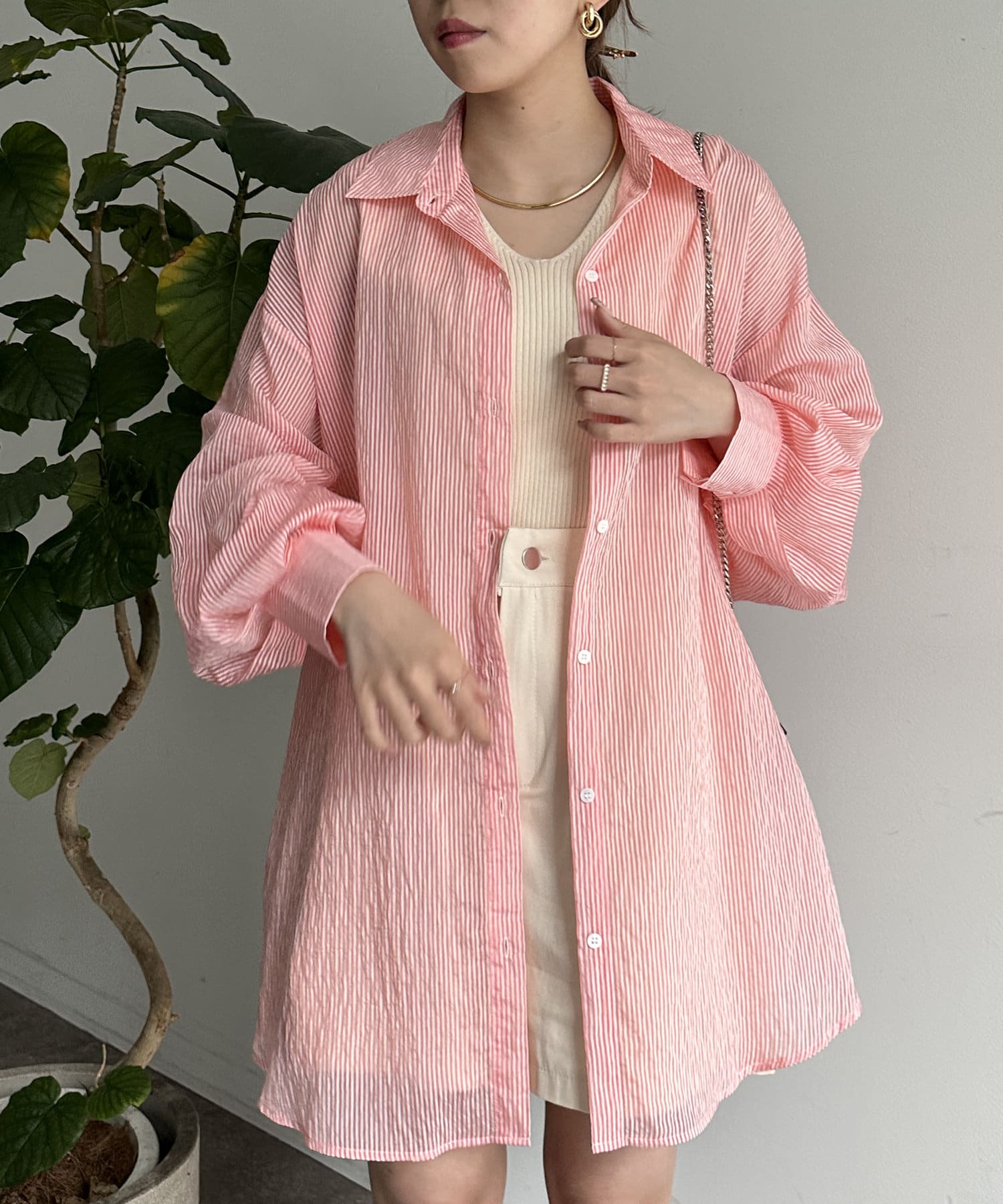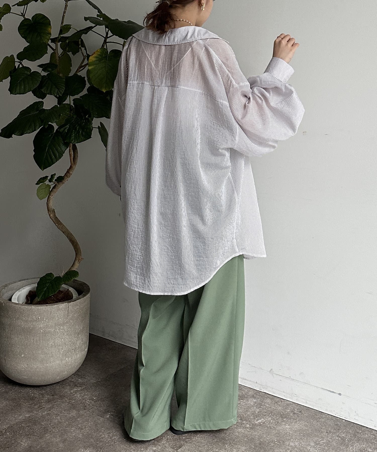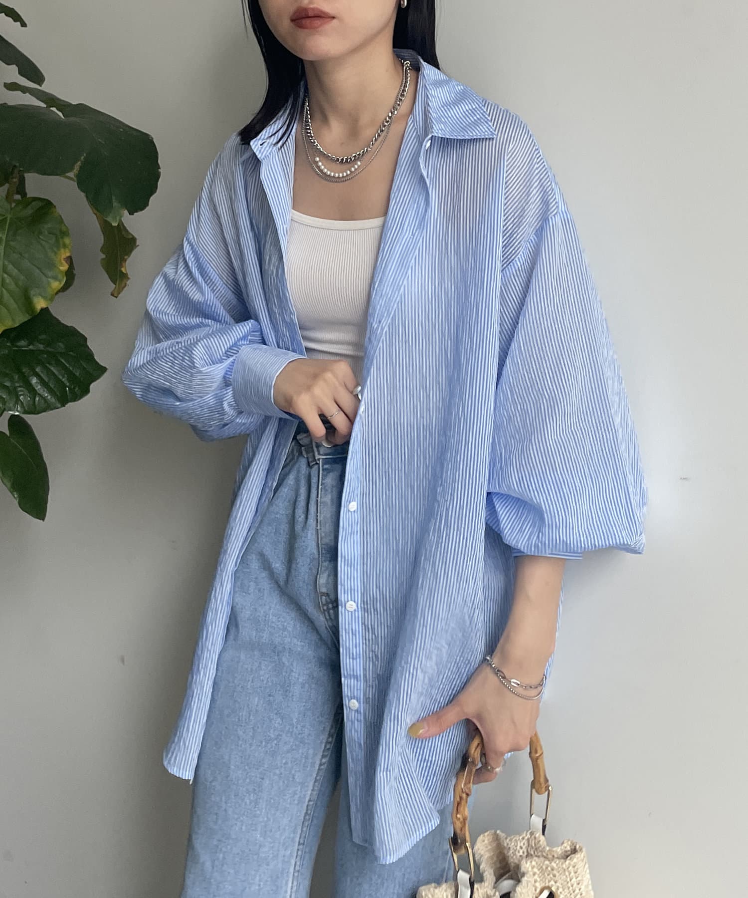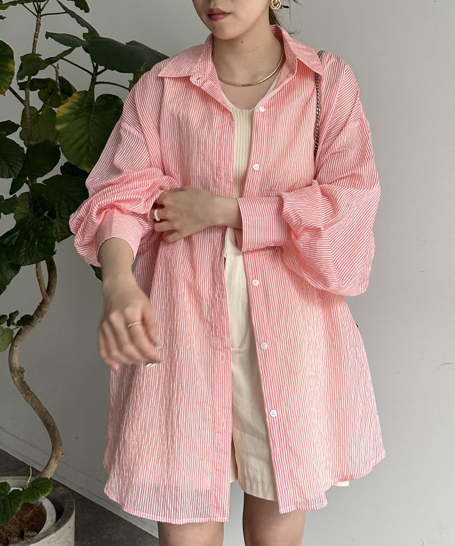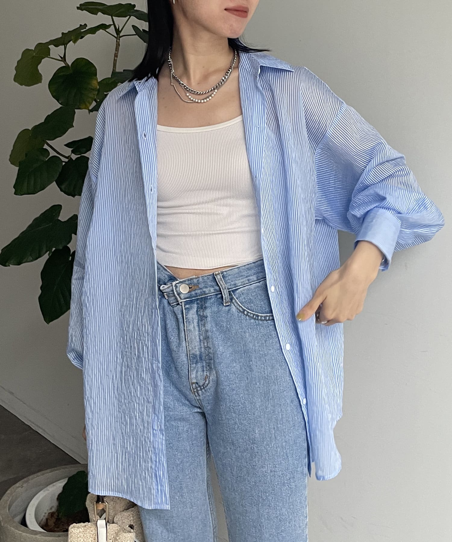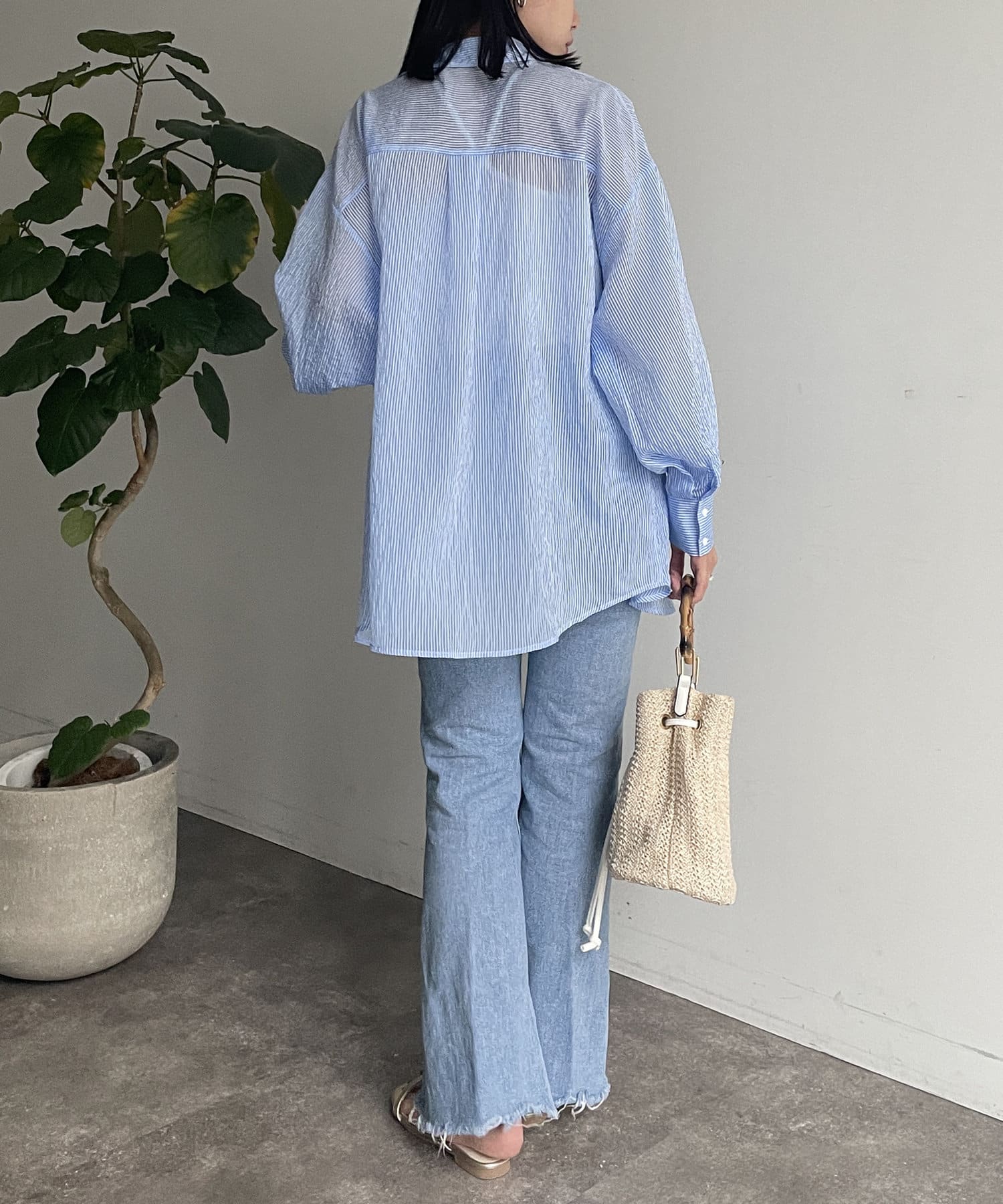 透け感のあるストライプ柄が夏を感じさせる、オーバーサイズシャツ