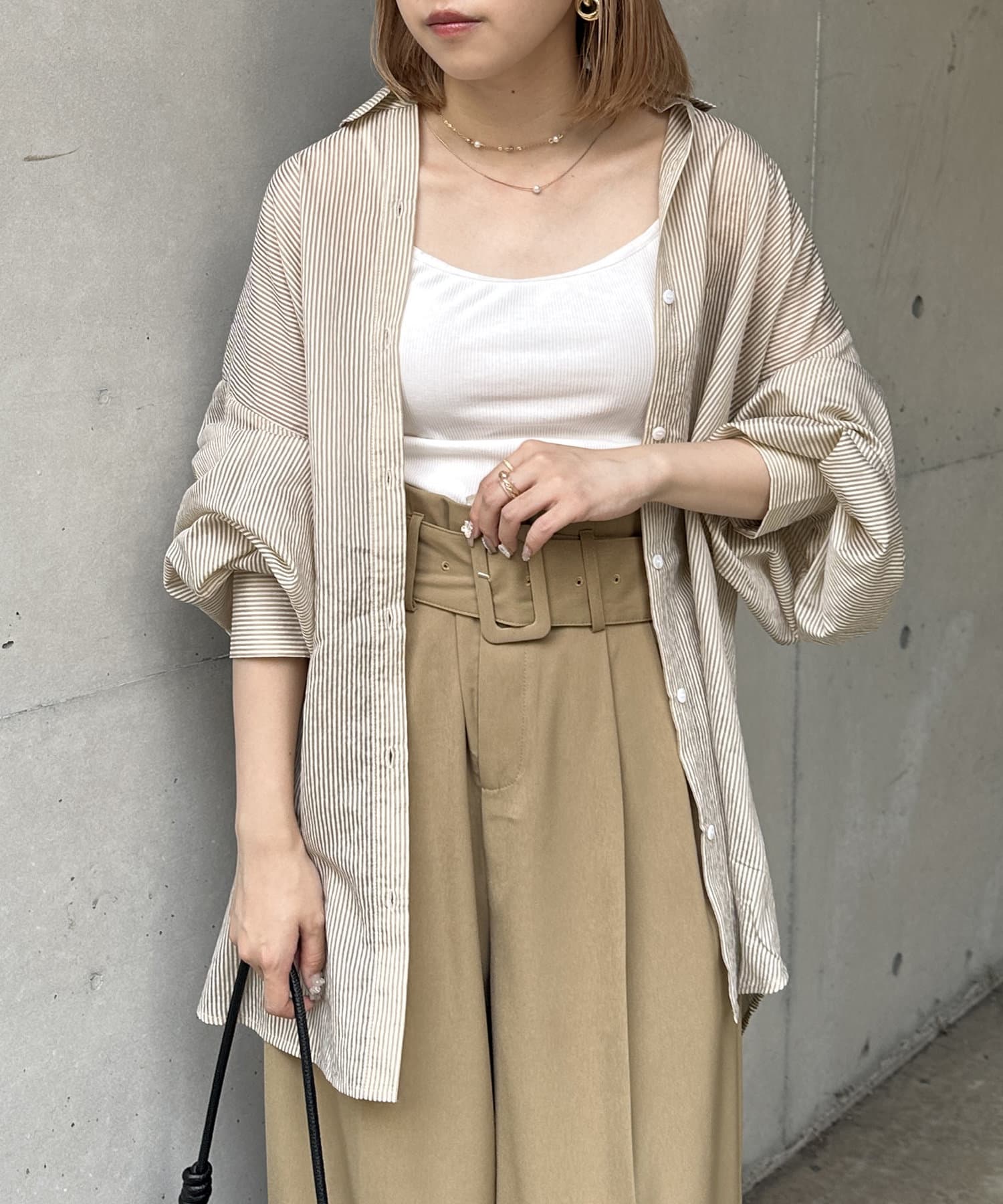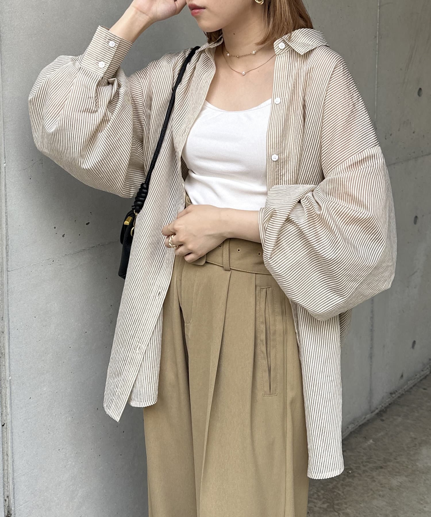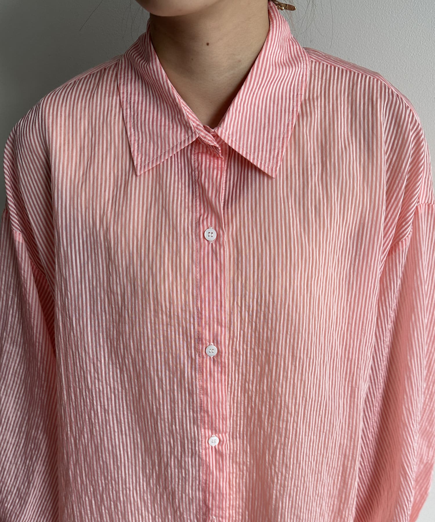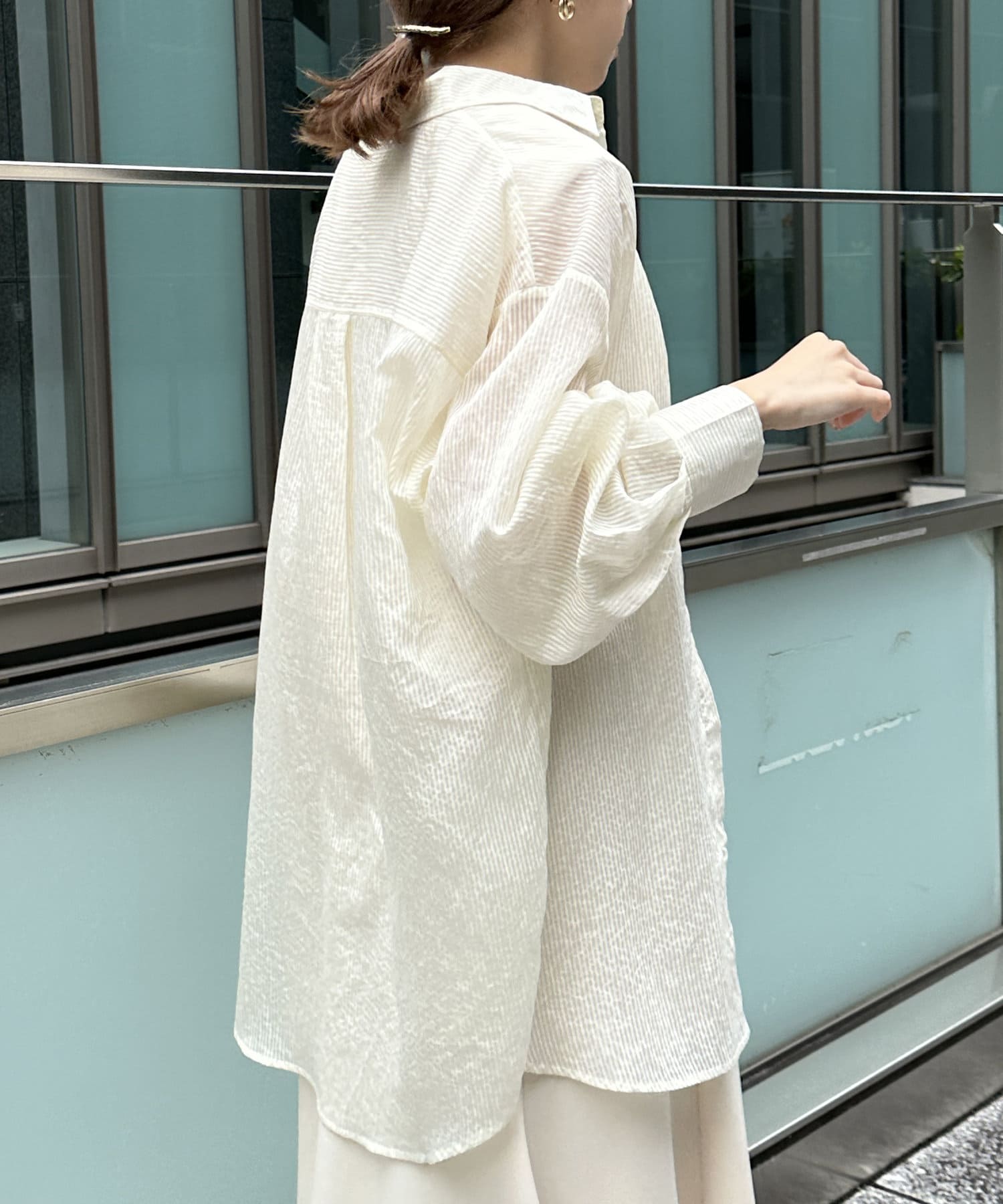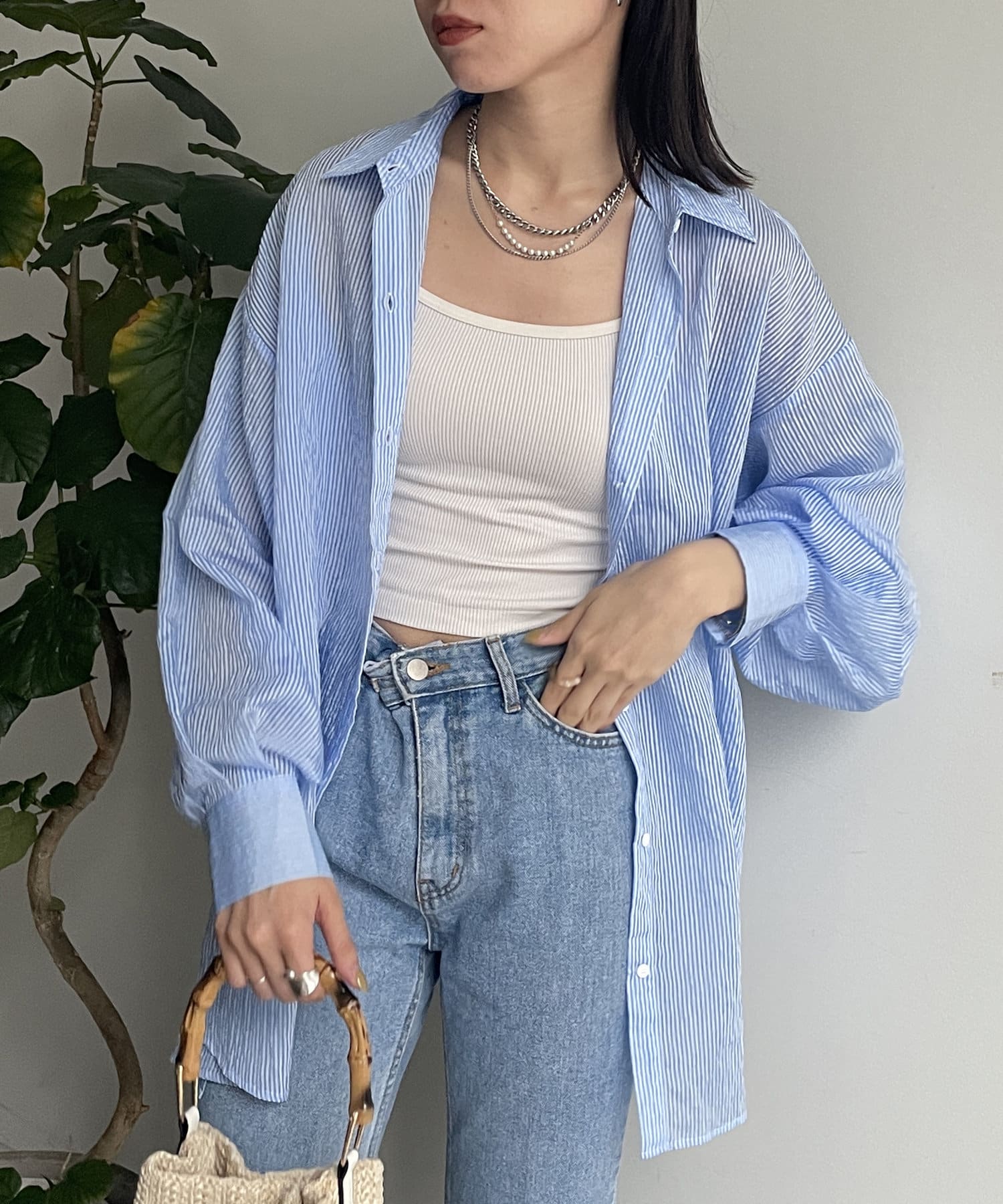 透け感のあるストライプ柄が夏を感じさせる、オーバーサイズシャツ