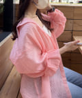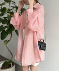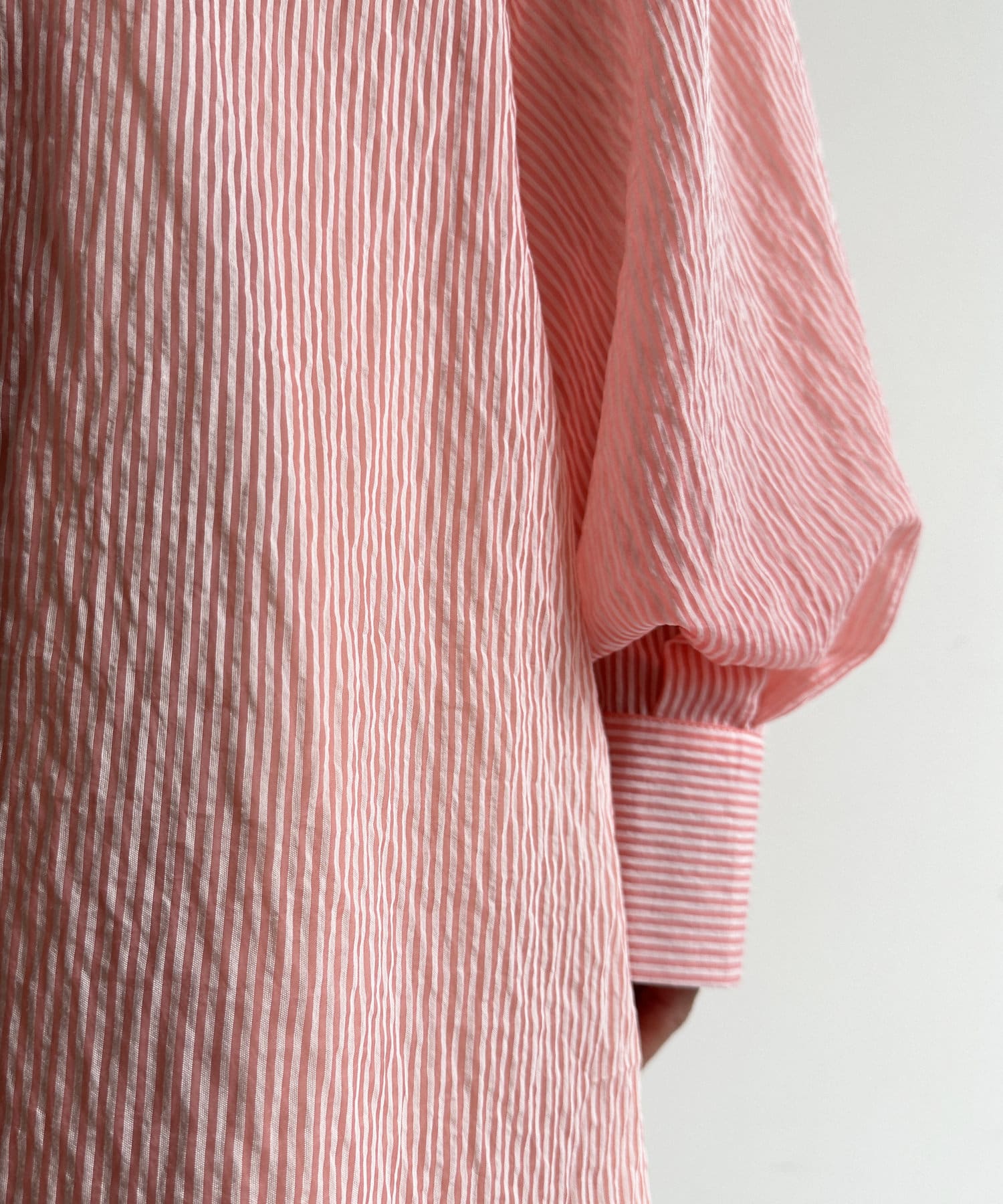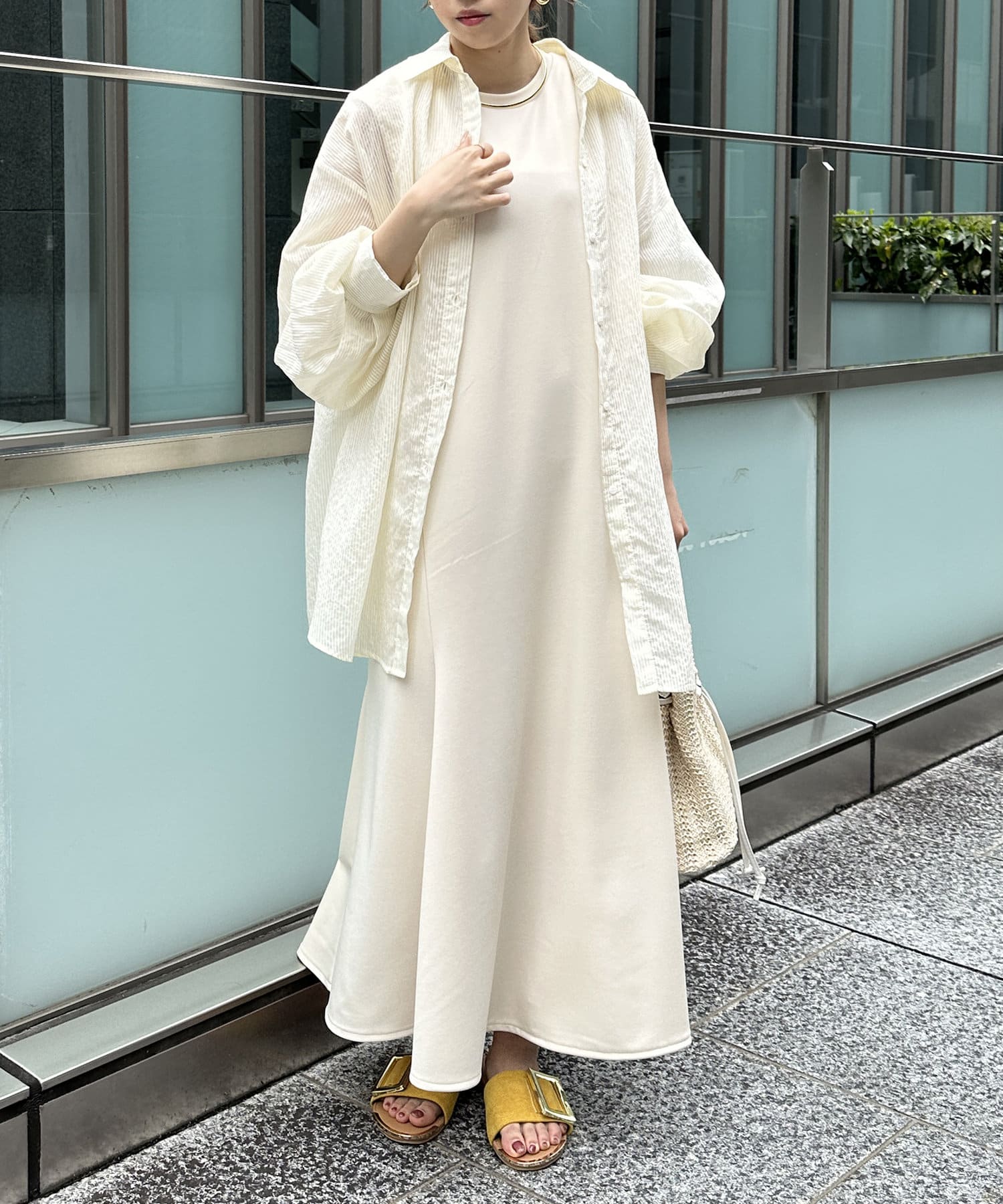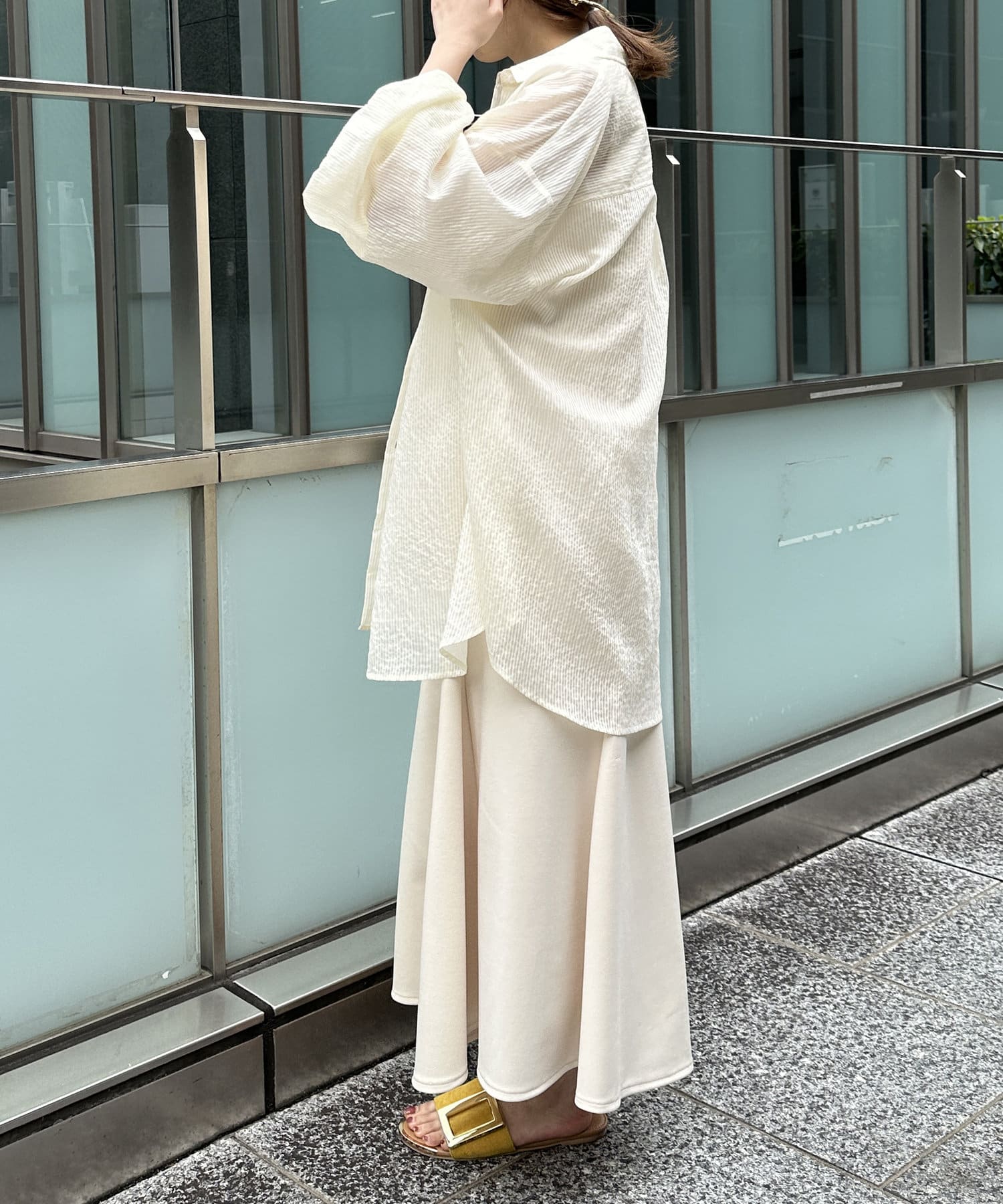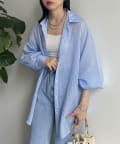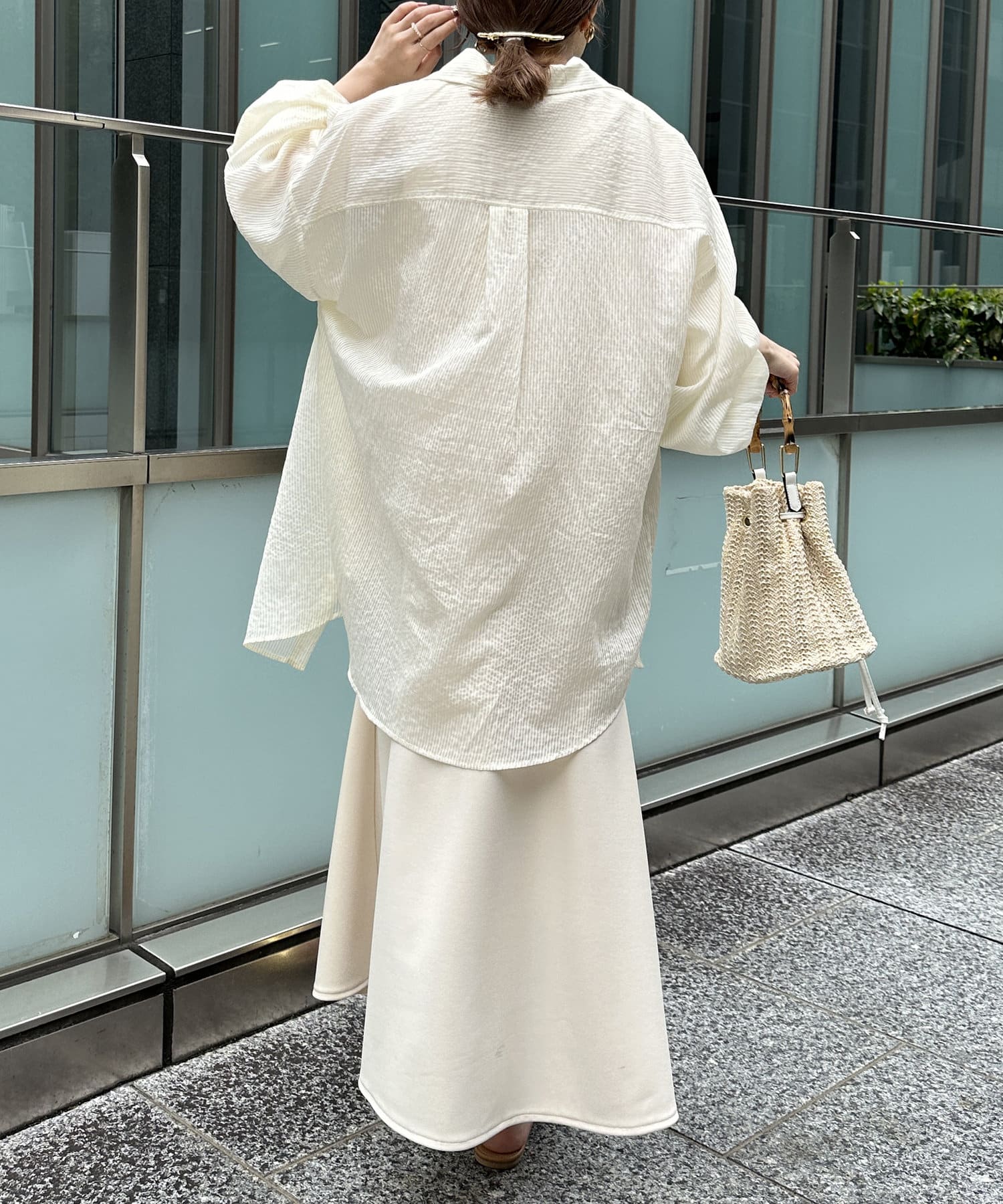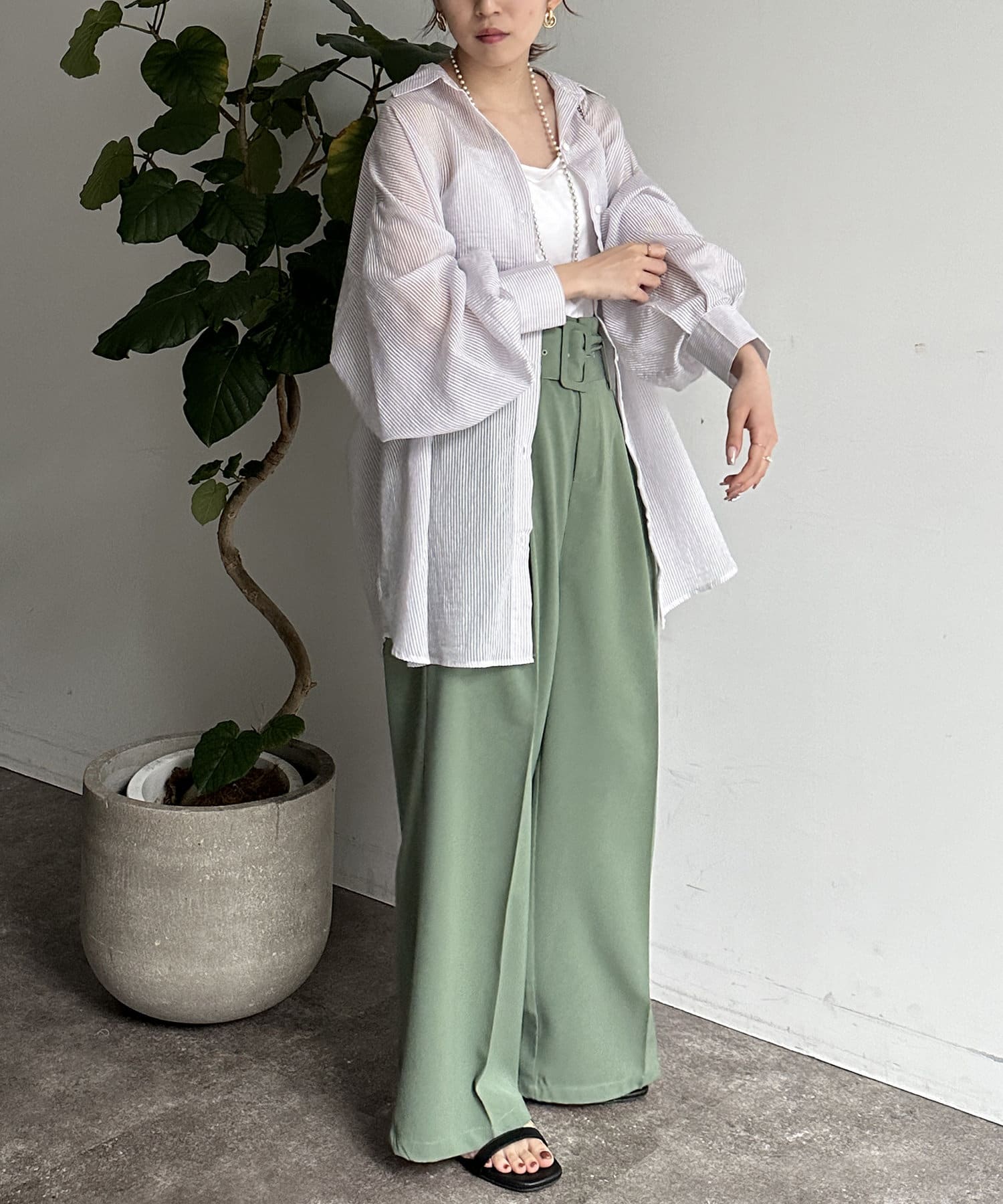 透け感のあるストライプ柄が夏を感じさせる、オーバーサイズシャツ