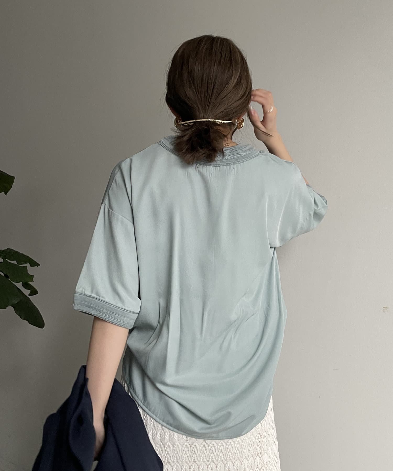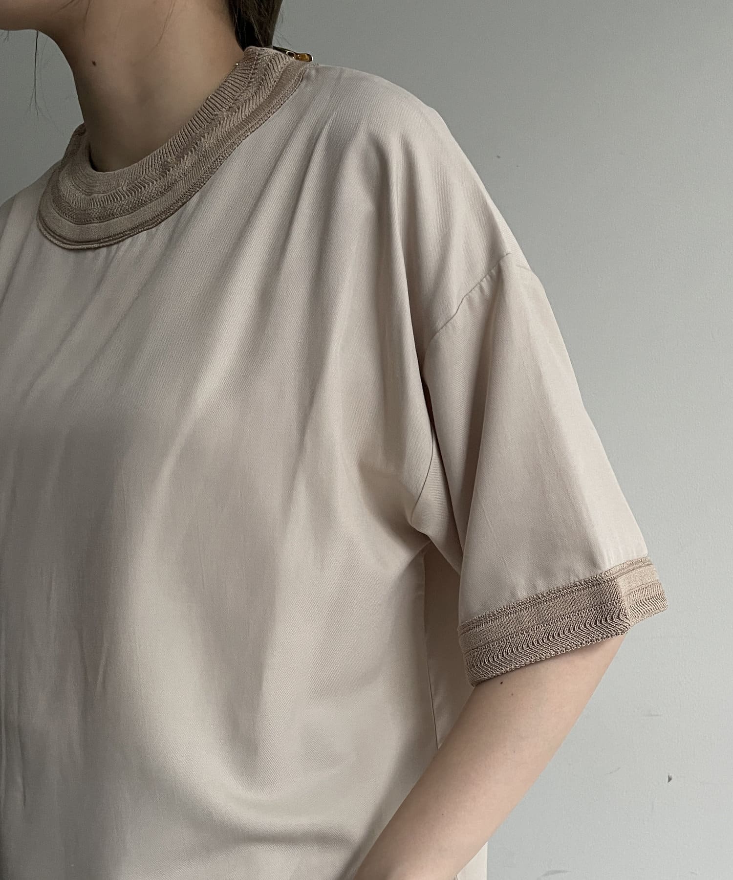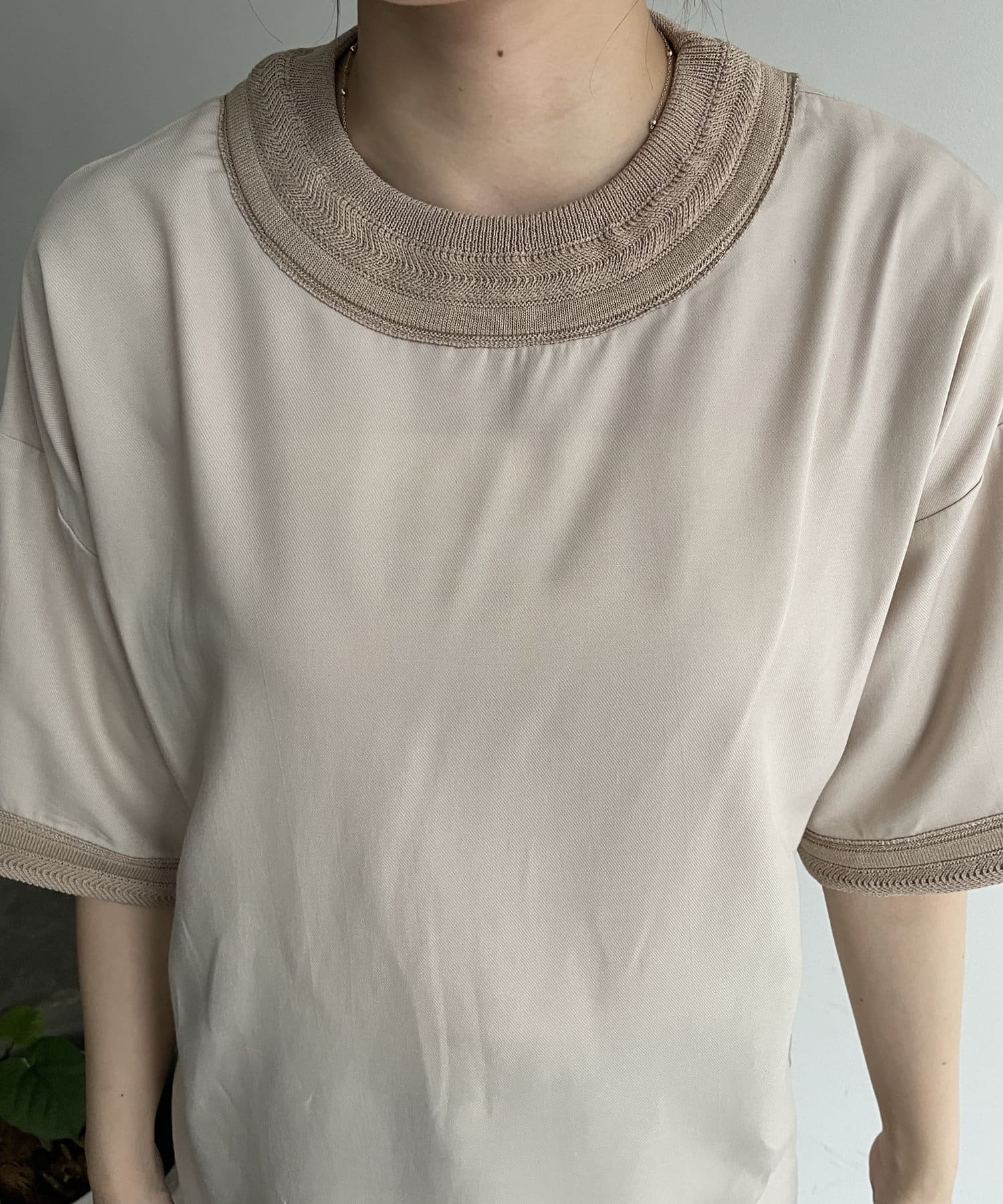 キレイめなブラウス素材を組み合わせたTブラウス