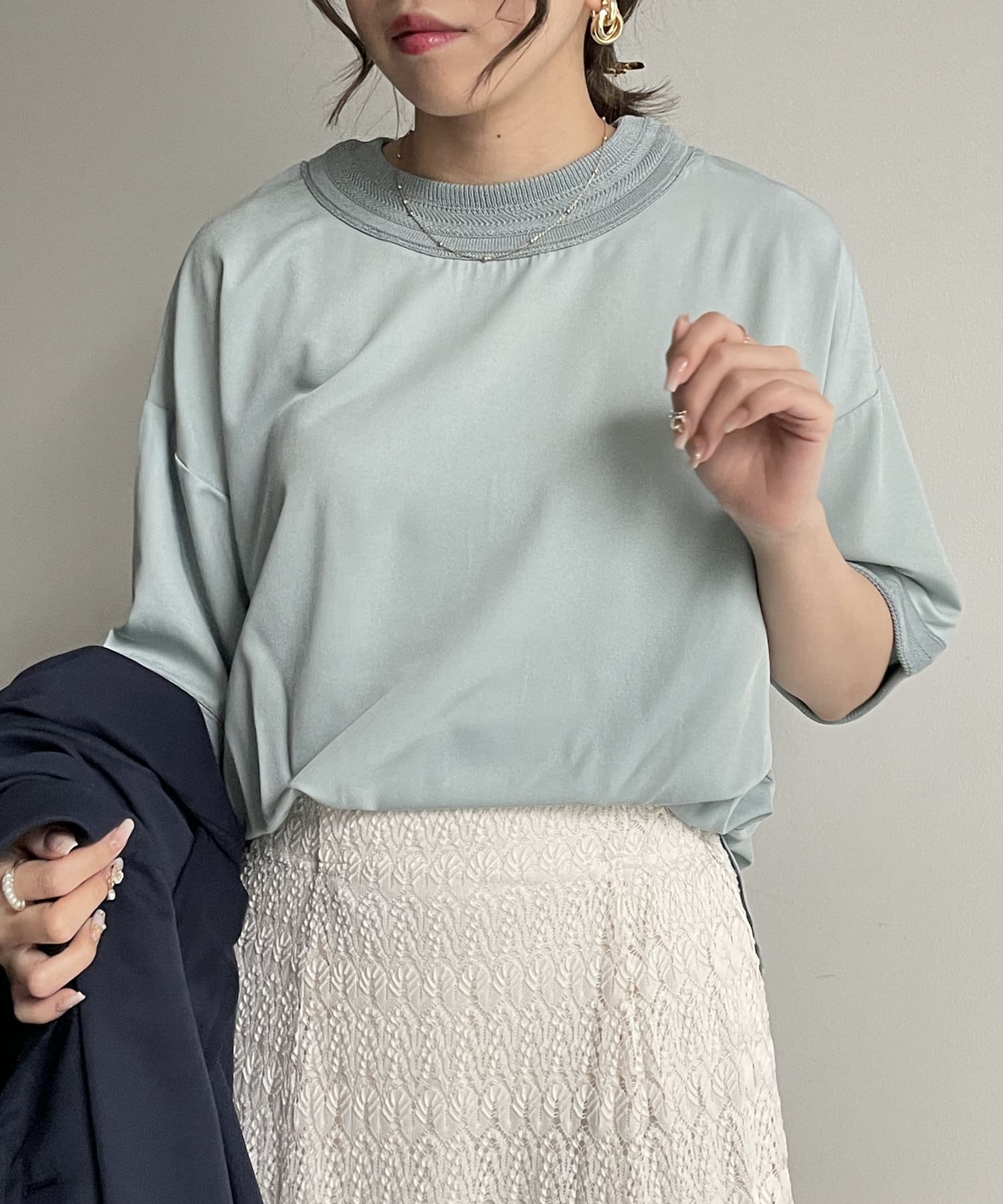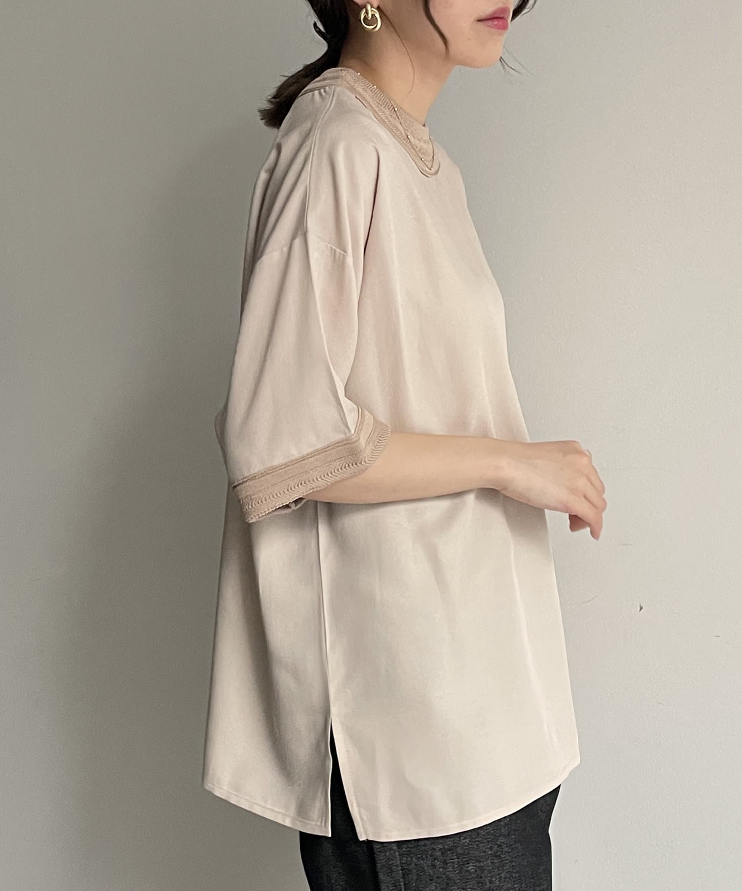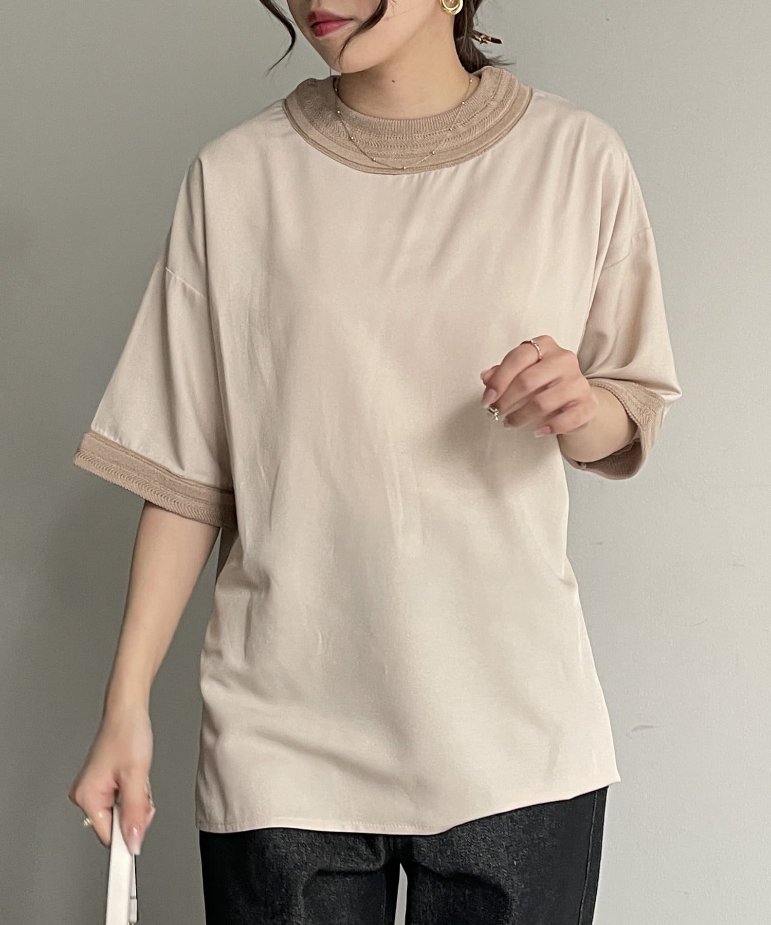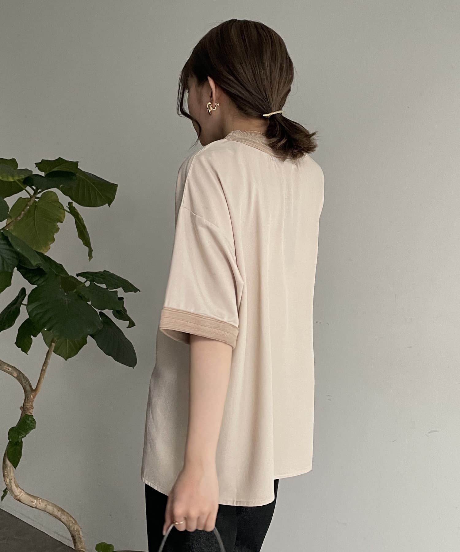 キレイめなブラウス素材を組み合わせたTブラウス
