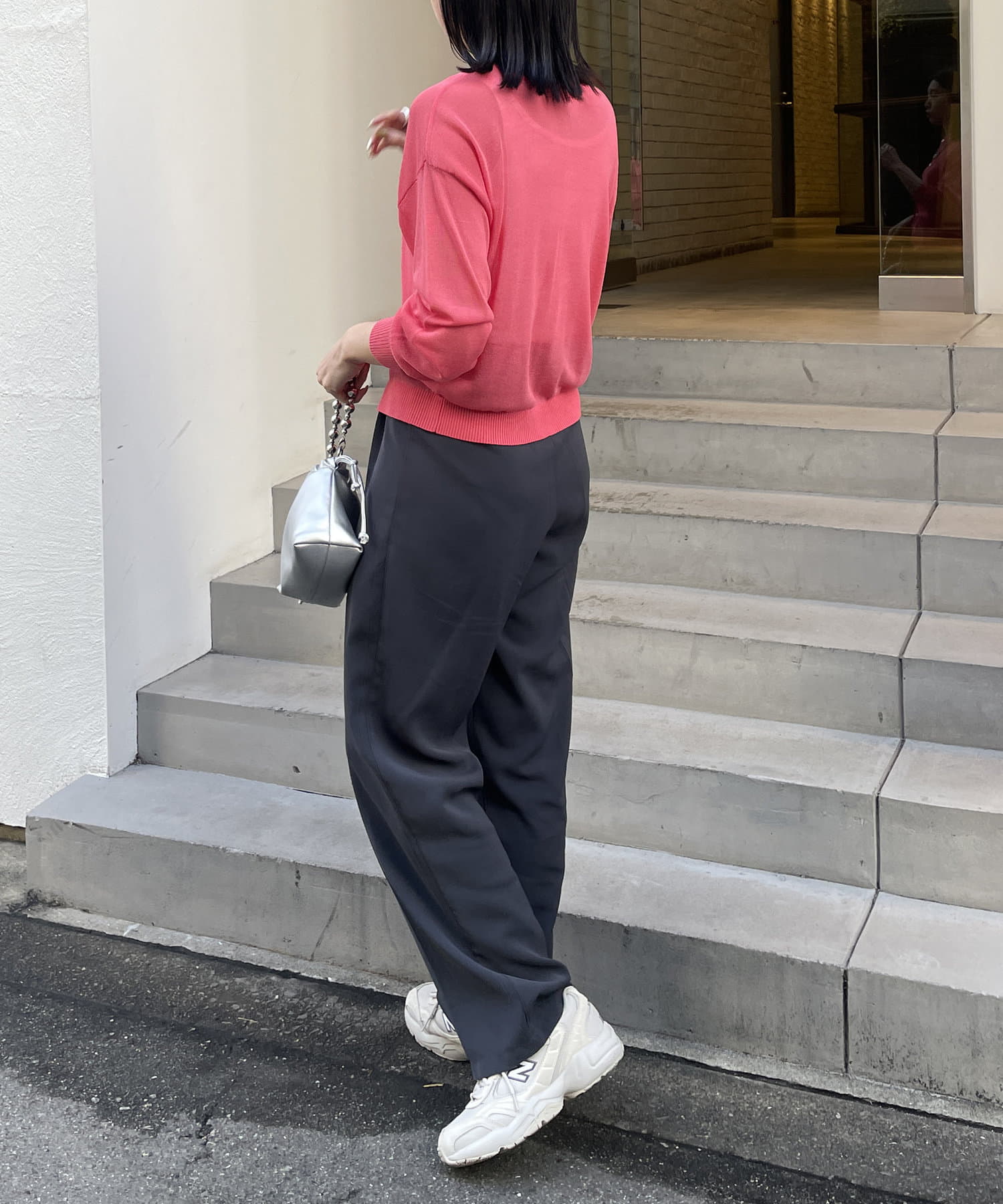 ・トレンドに左右されないベーシックなシルエットでボトムスを選ばず、