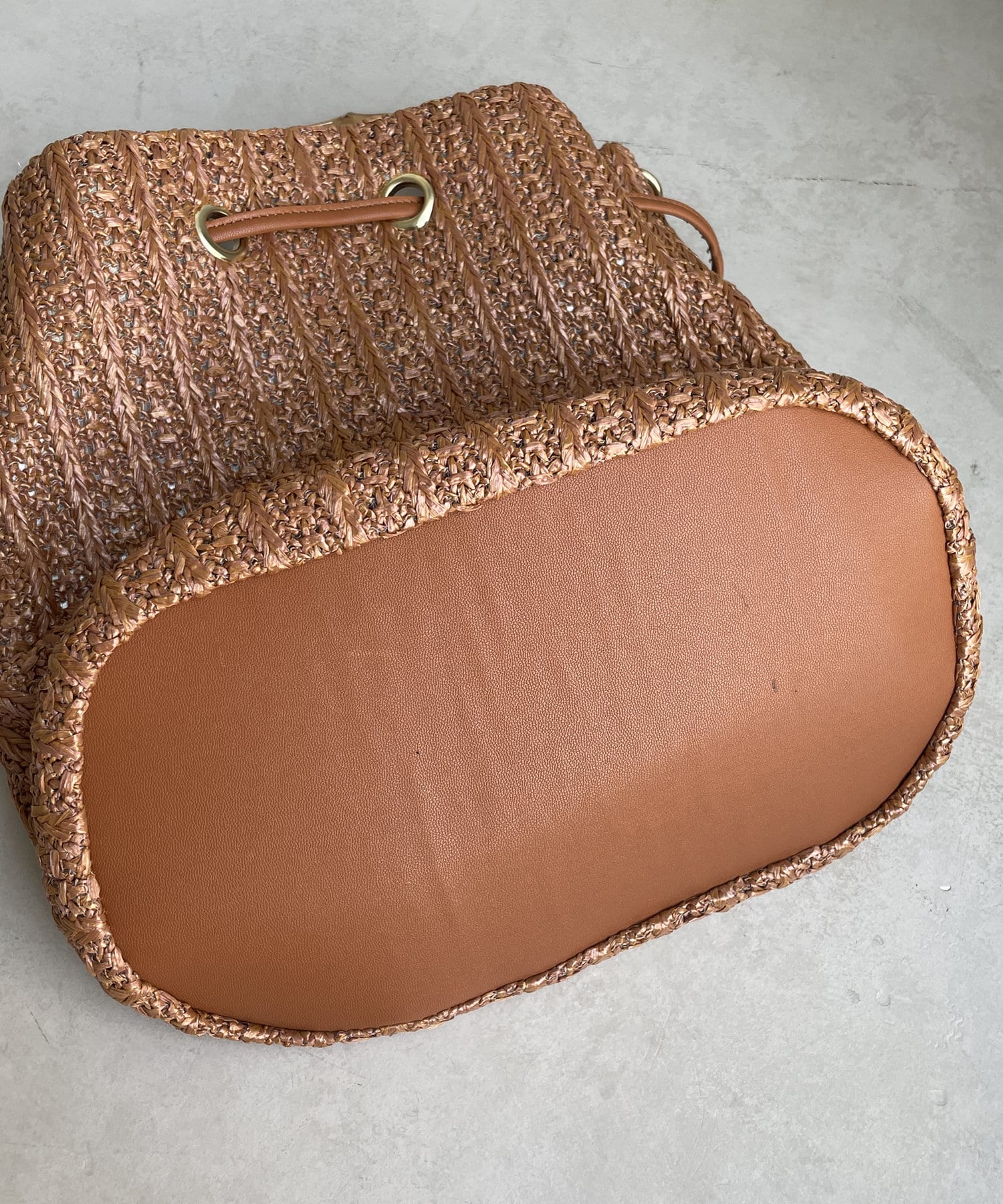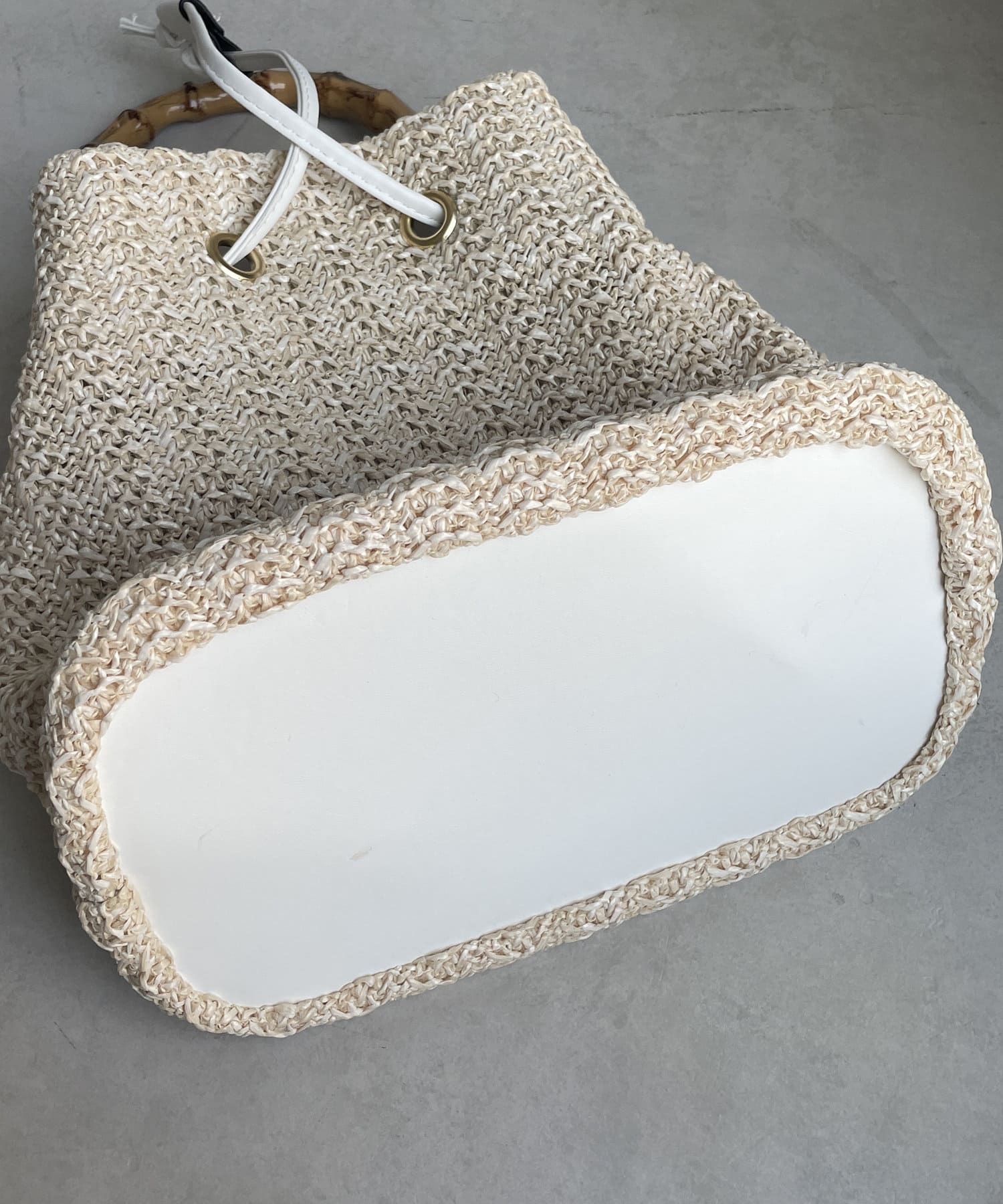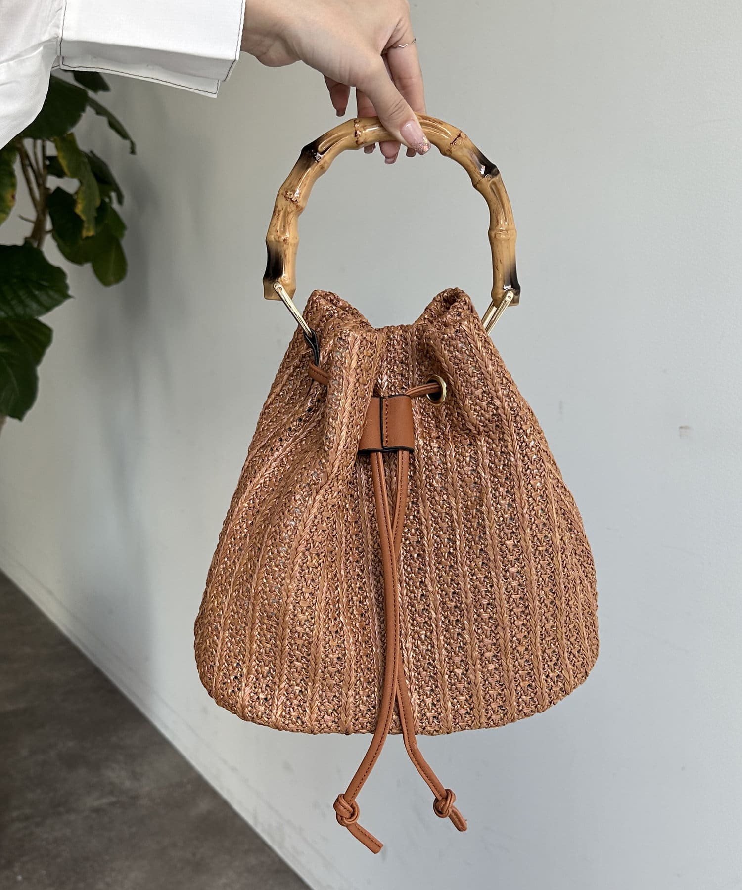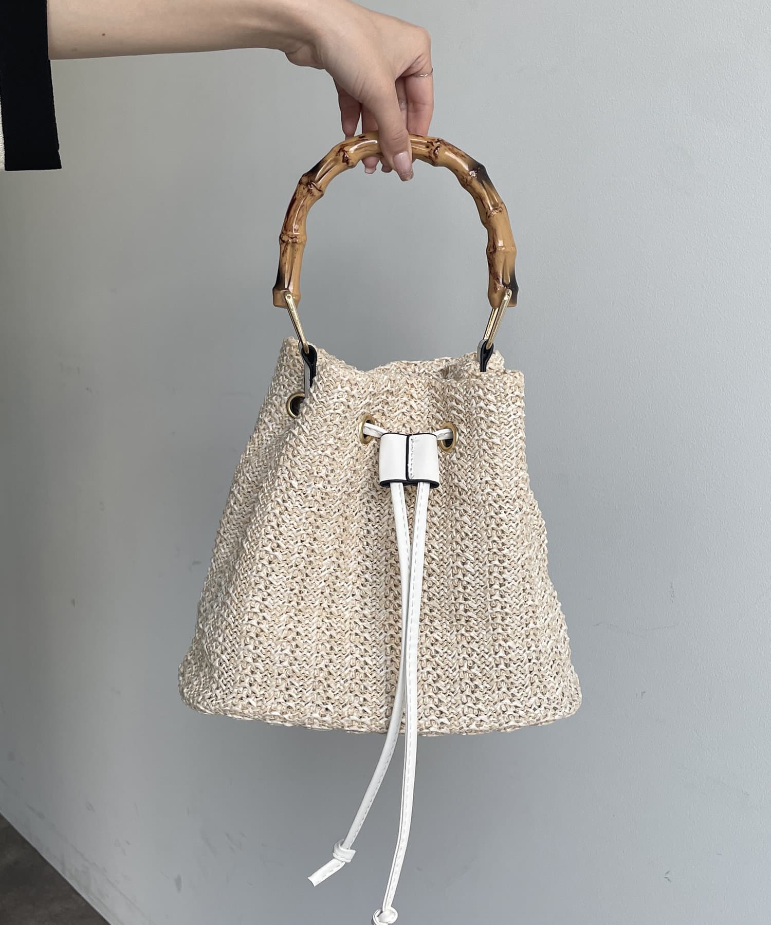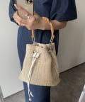 バンブーハンドル雑材巾着バッグ
