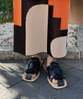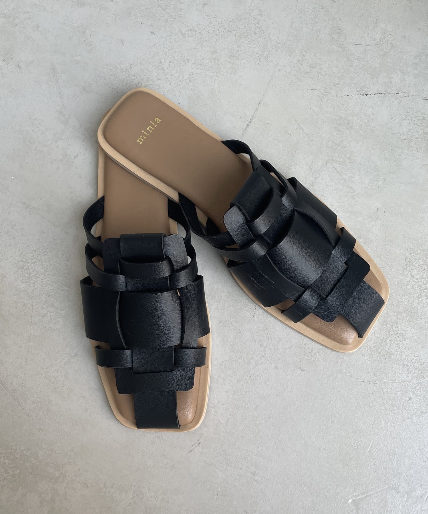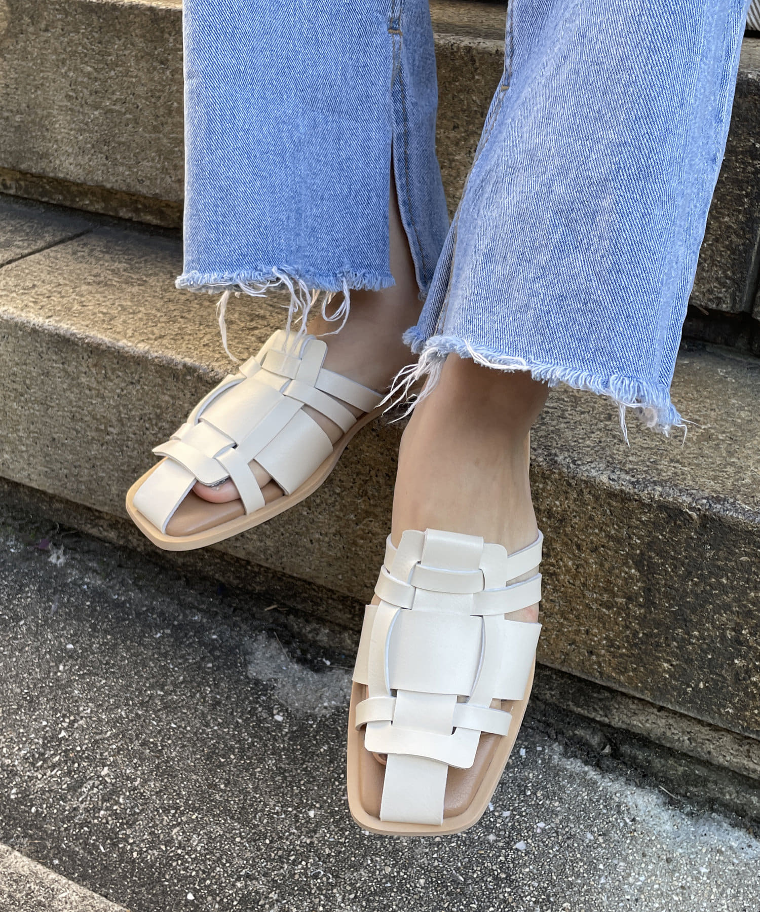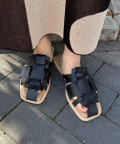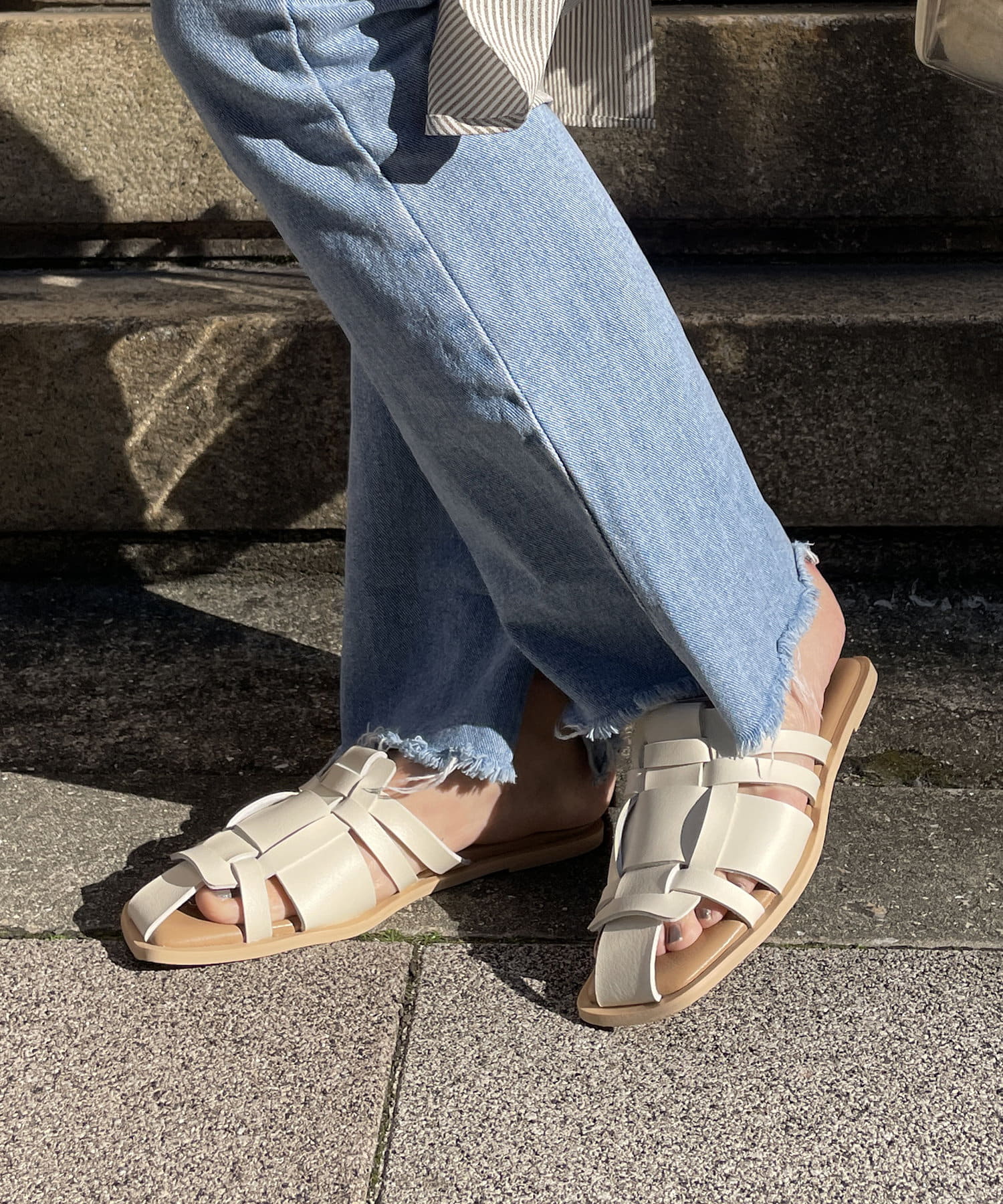 ・スクエアトゥ×フラットがスタイリッシュな印象に