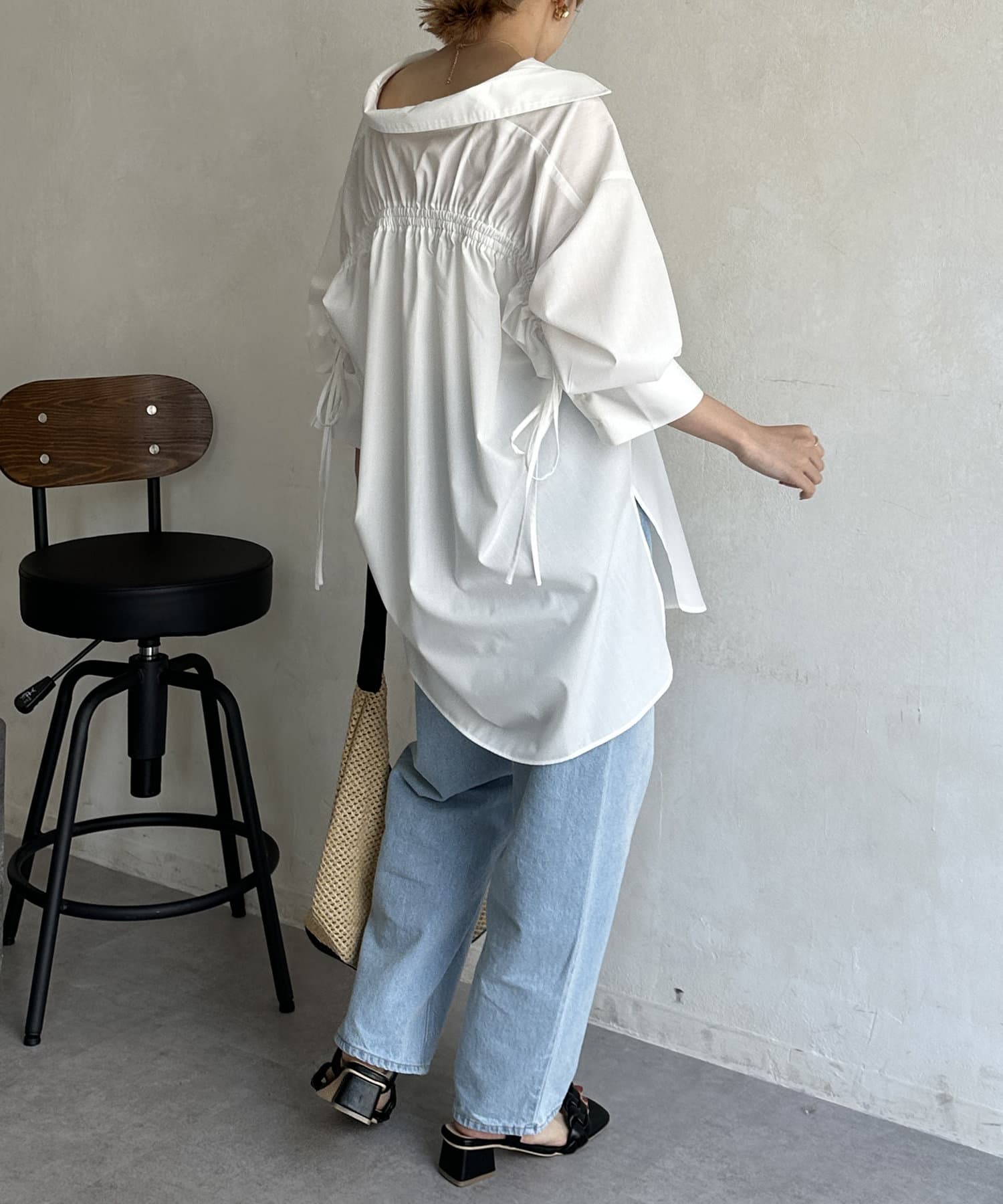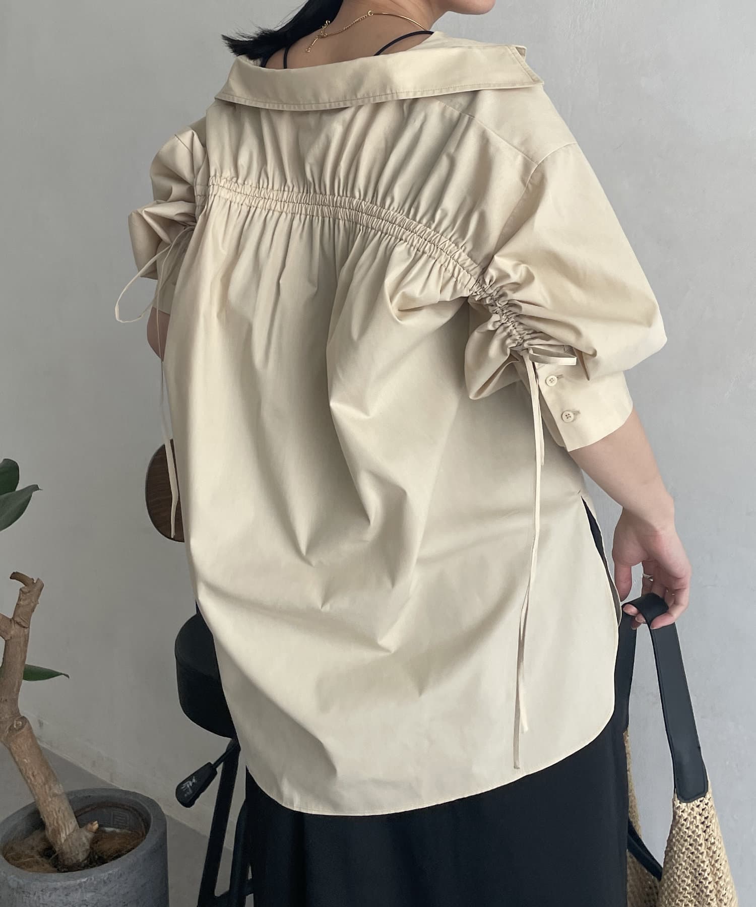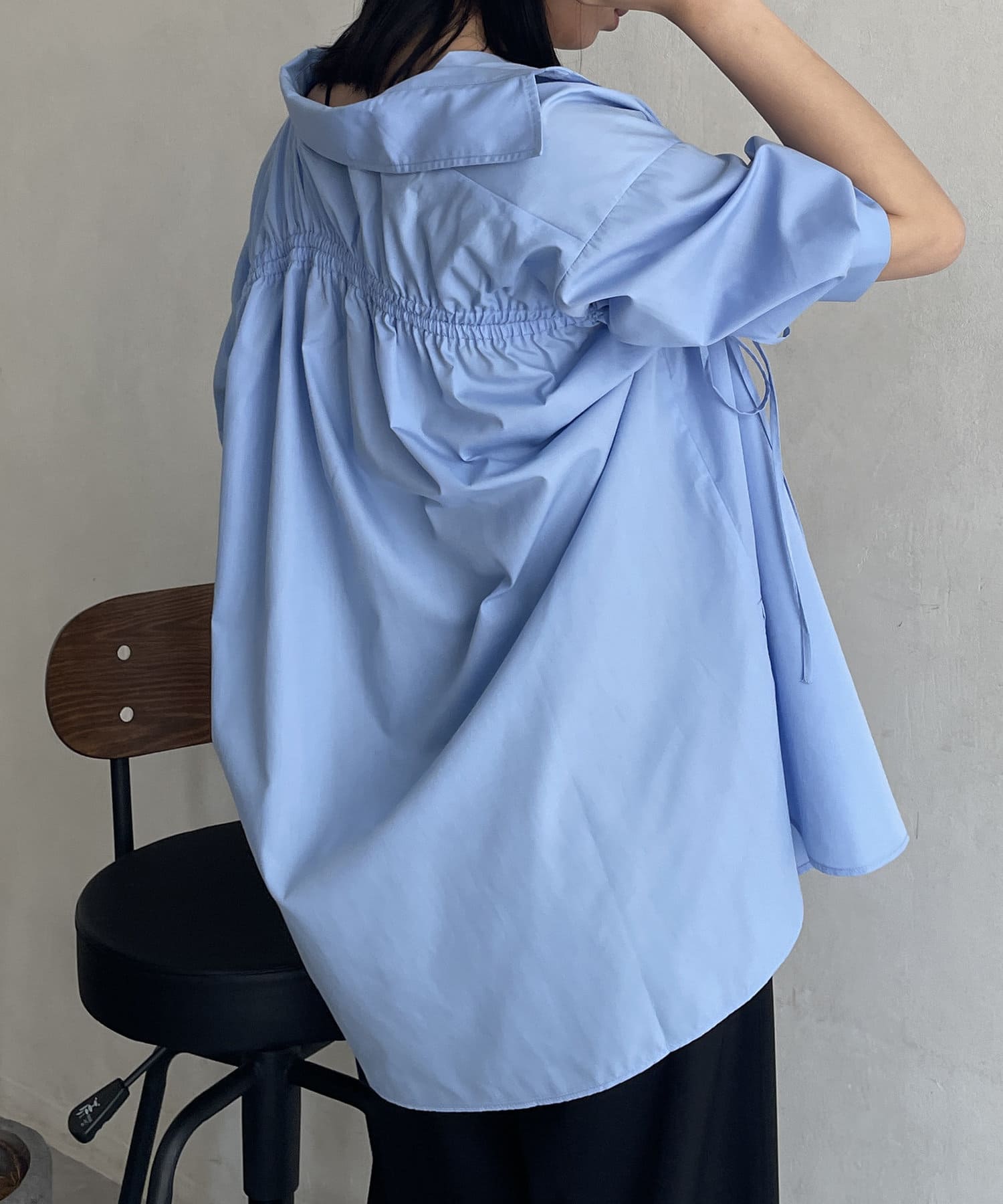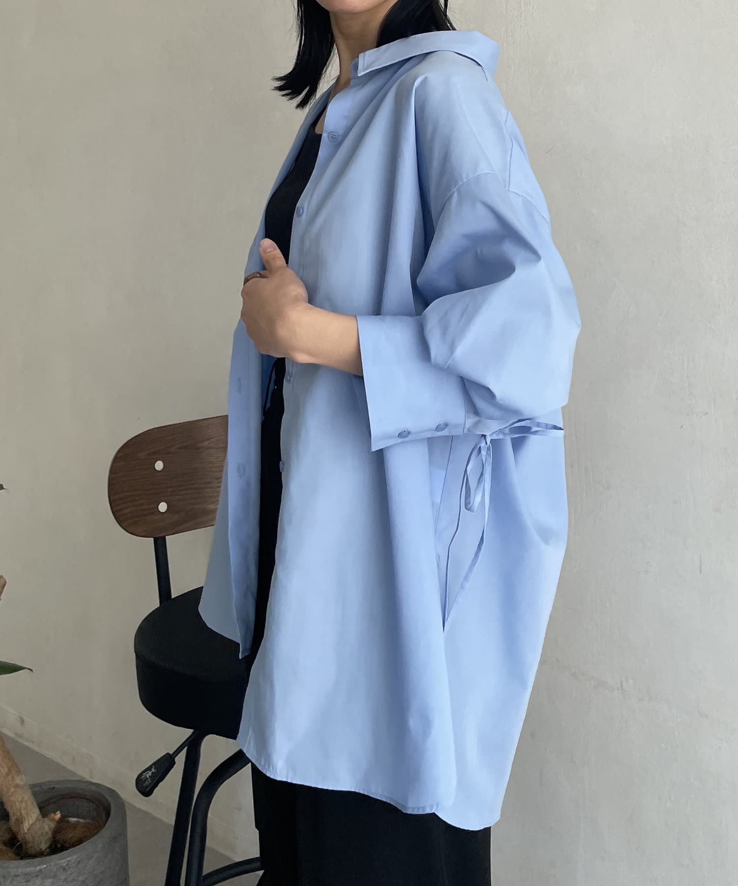 バックドロスト7分袖ブロードシャツ