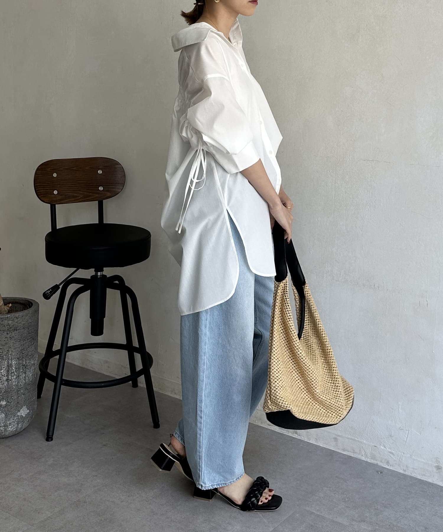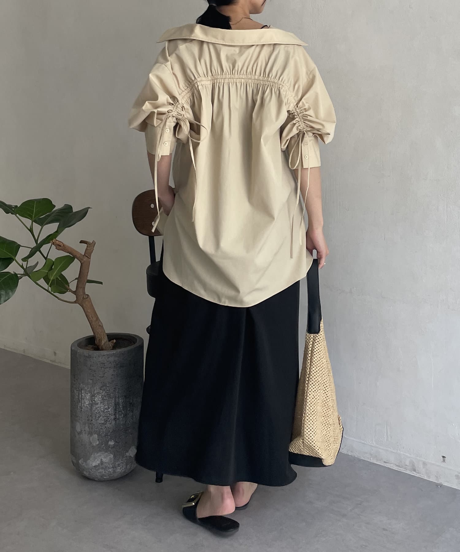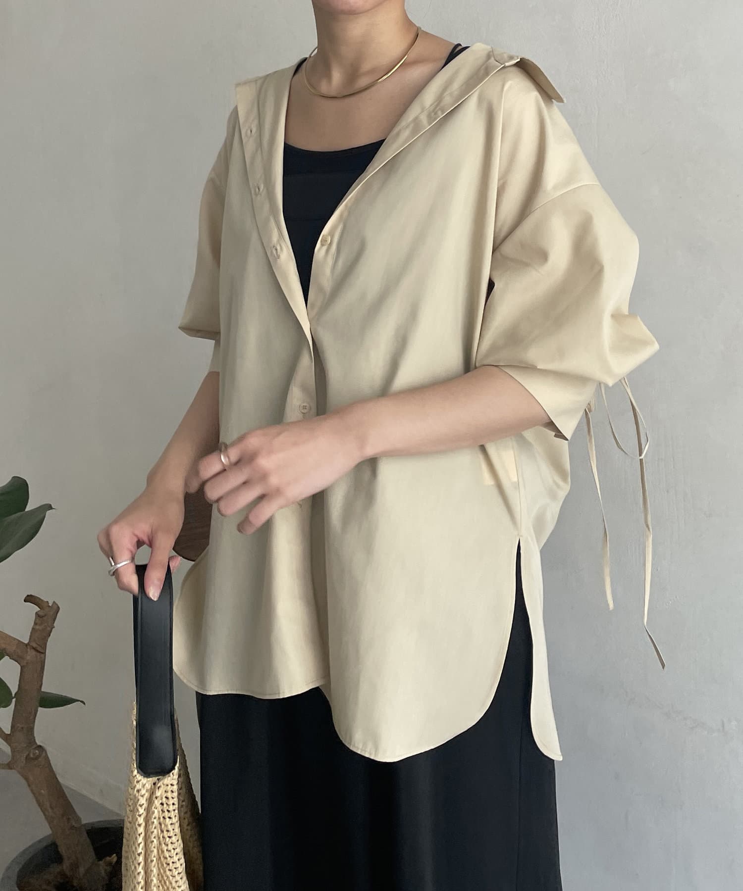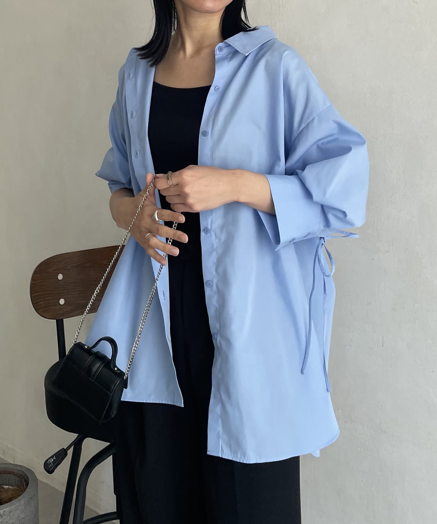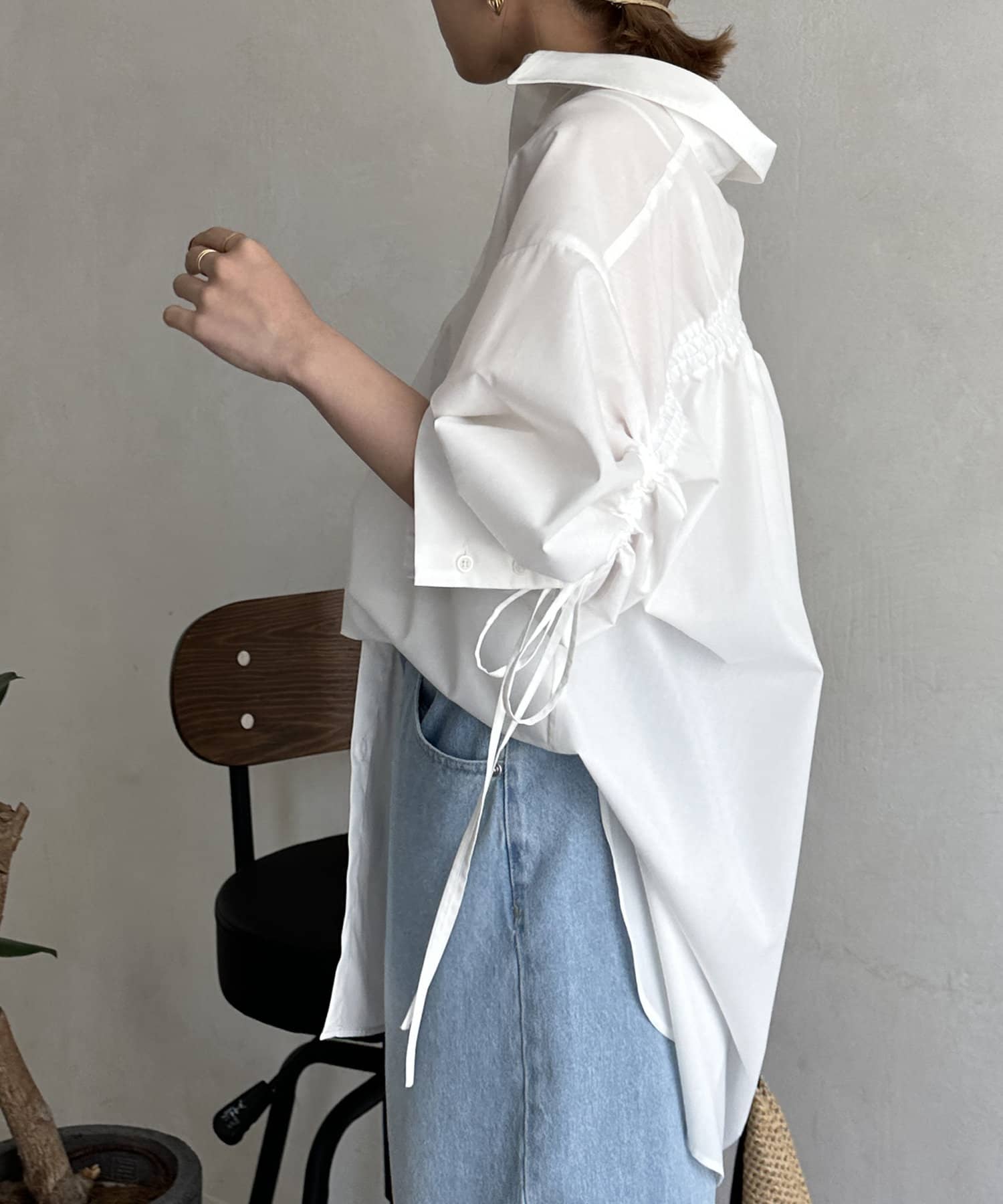バックドロスト7分袖ブロードシャツ