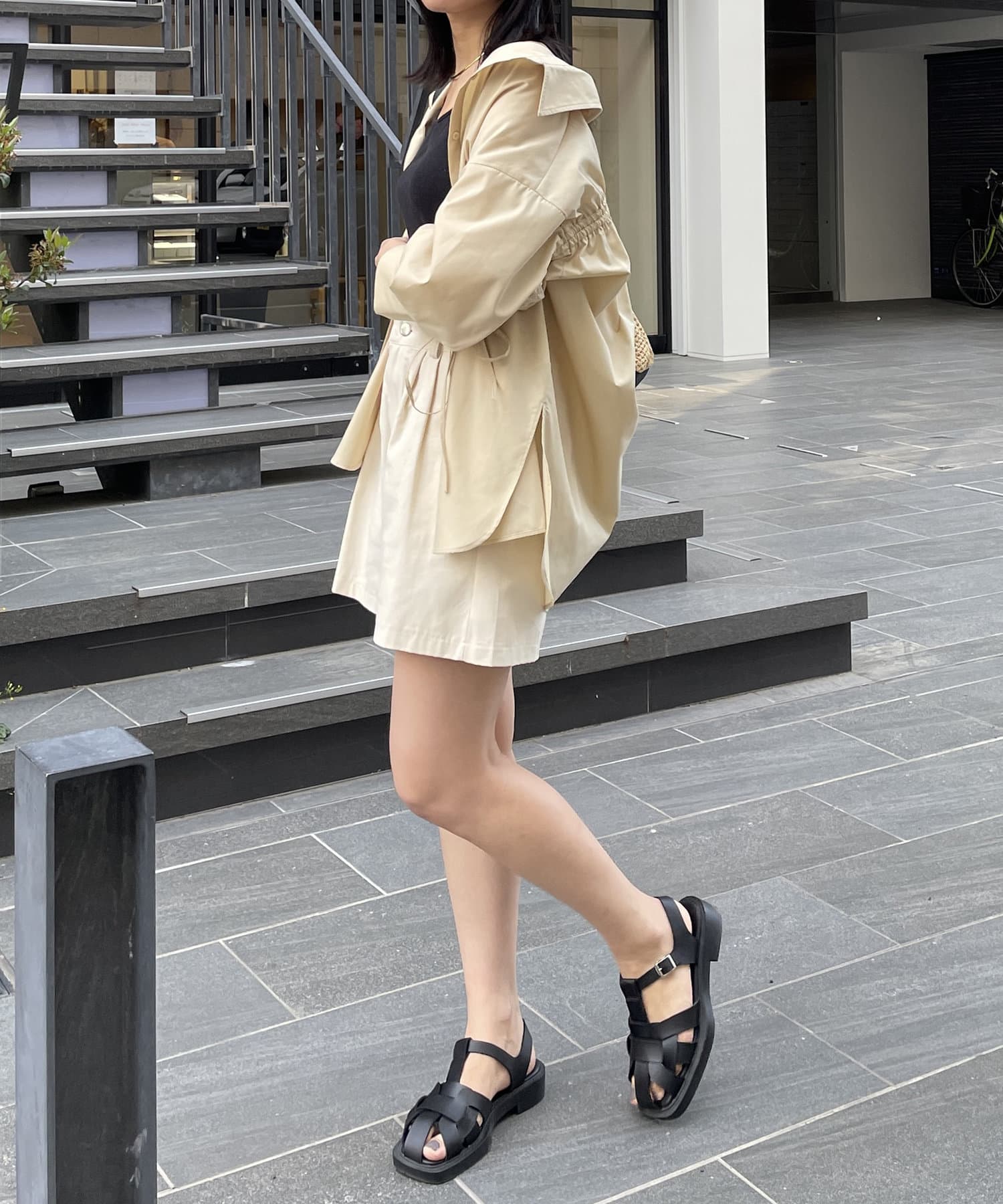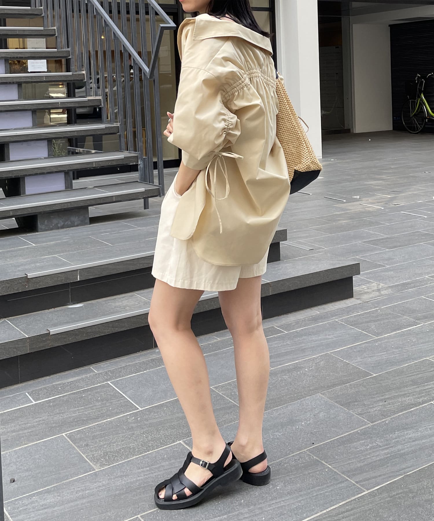 ・オーバーサイズなのでボトムスはハーフパンツや