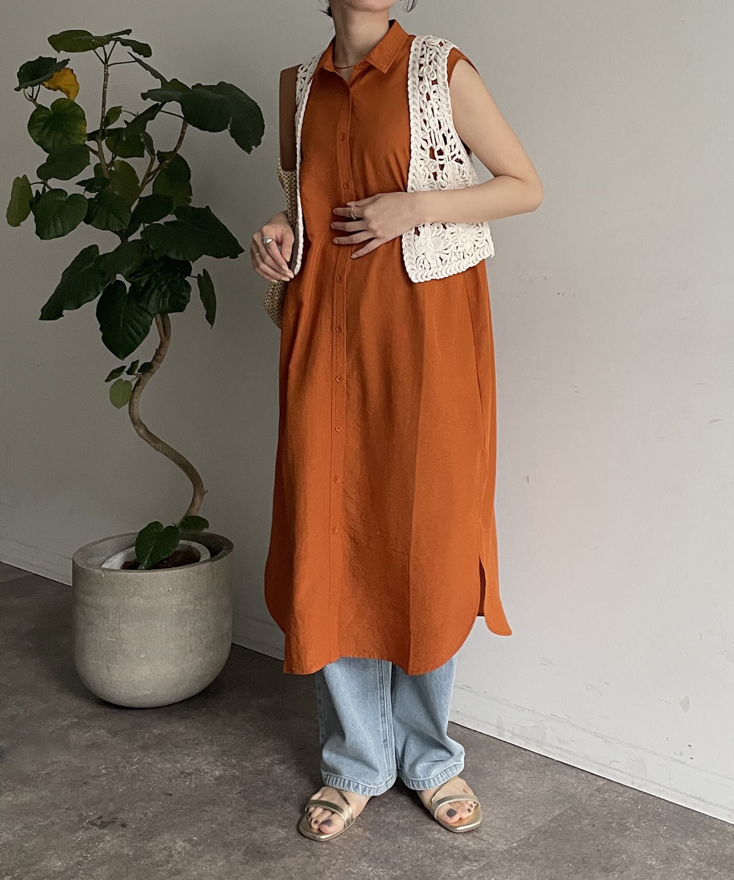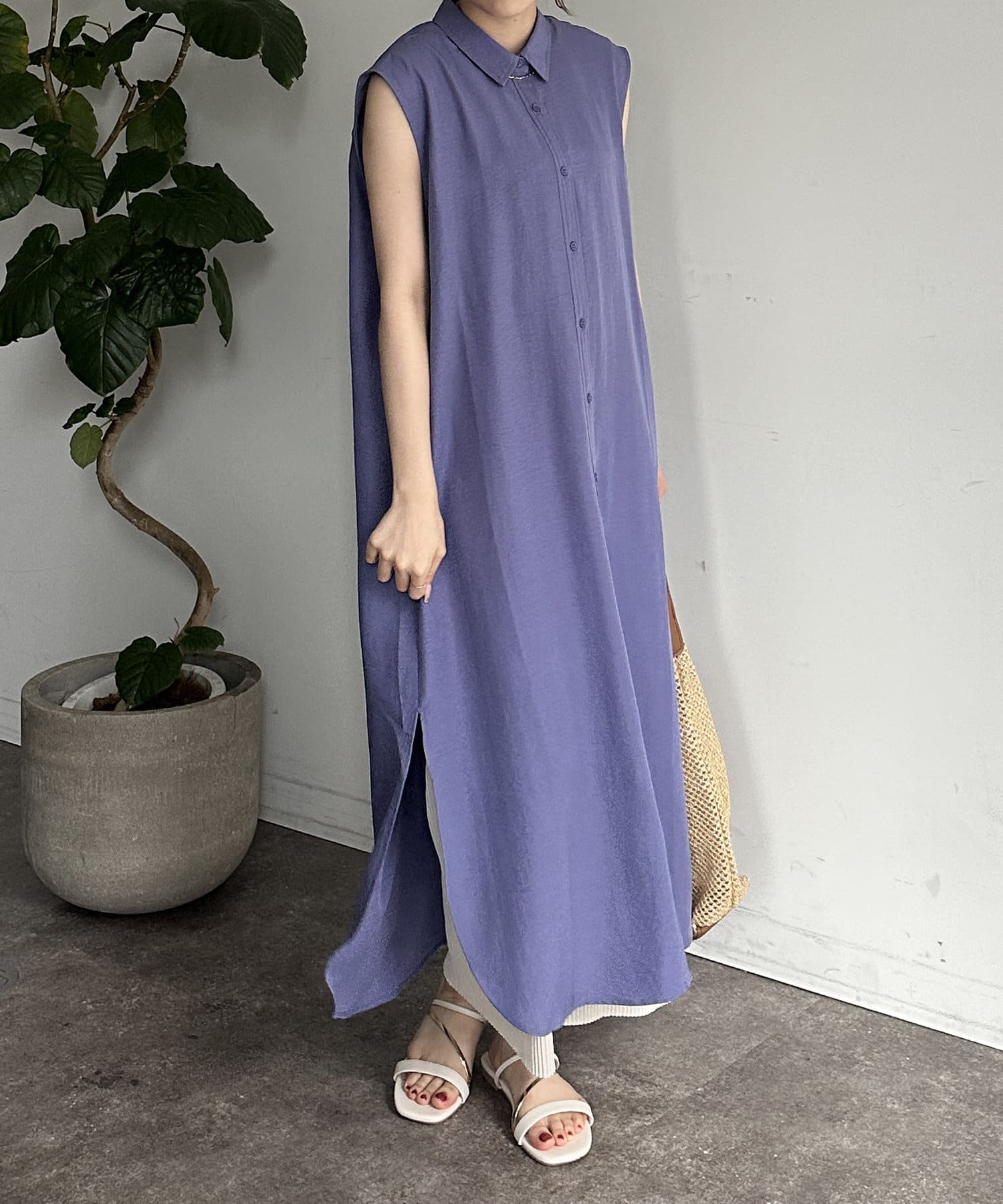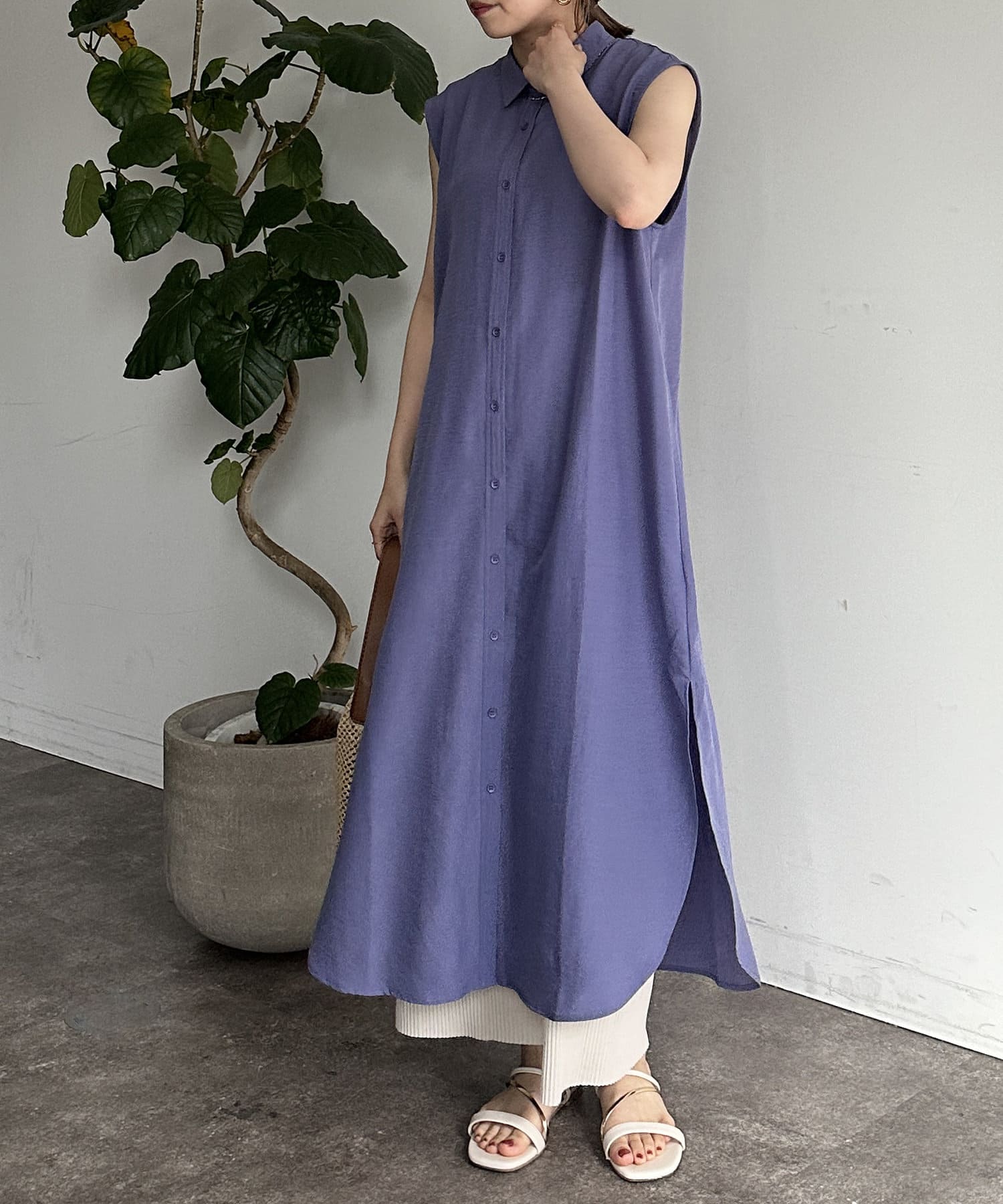 #シャツワンピース #ノースリーブ #夏ワンピ