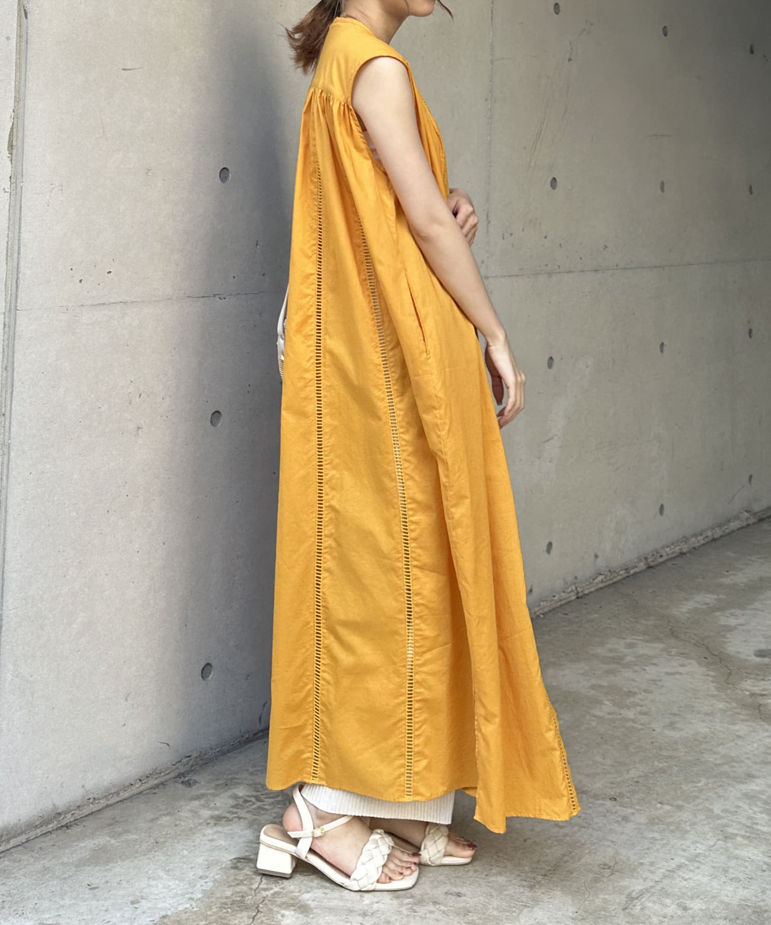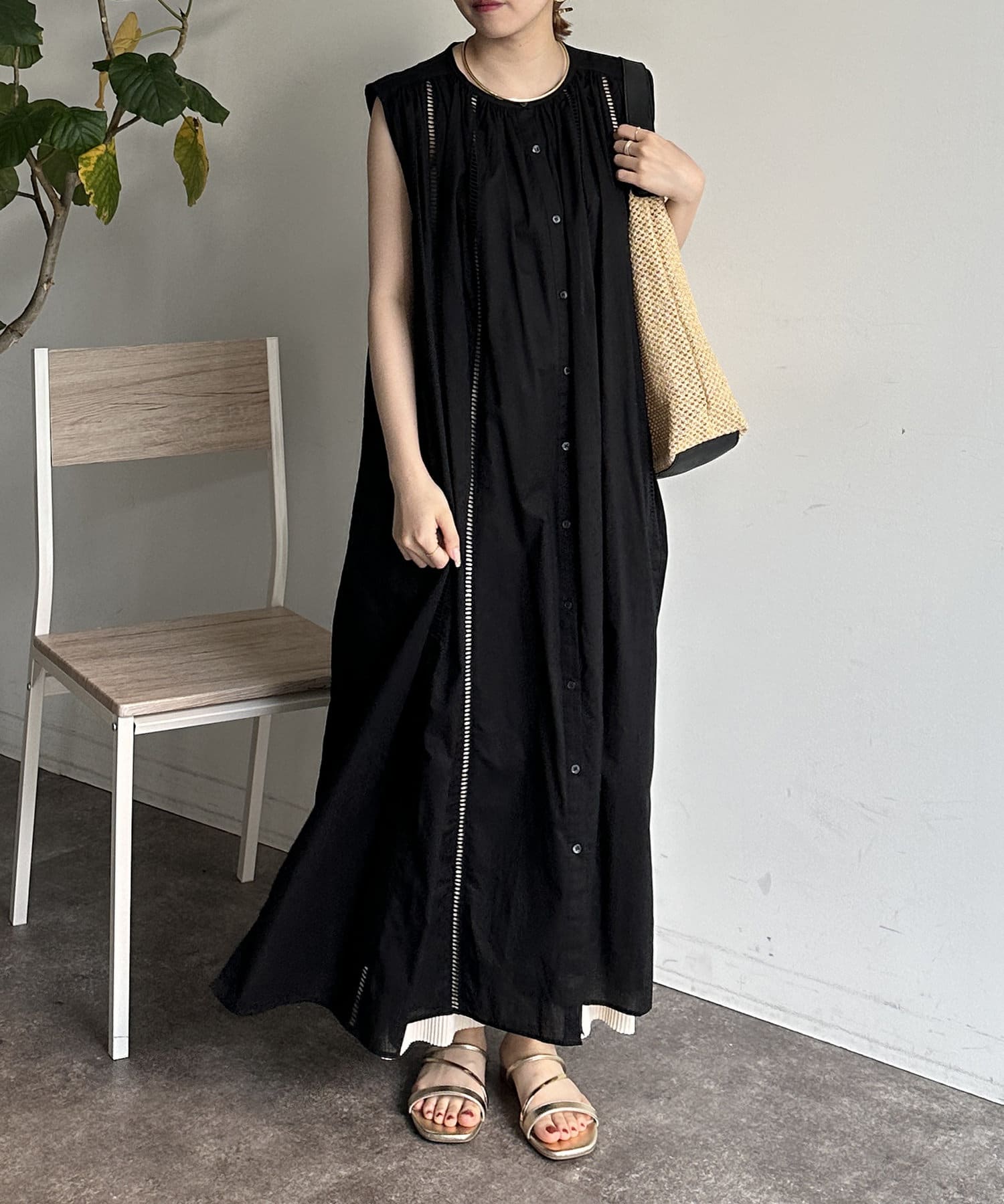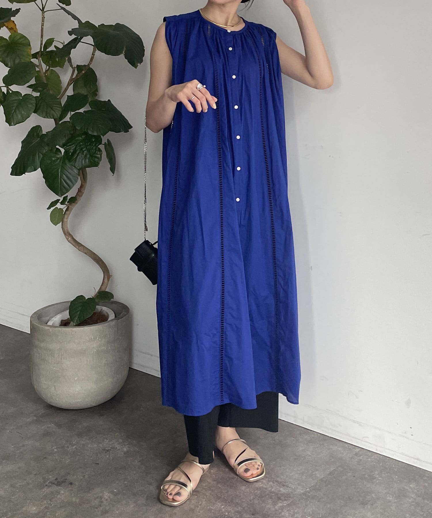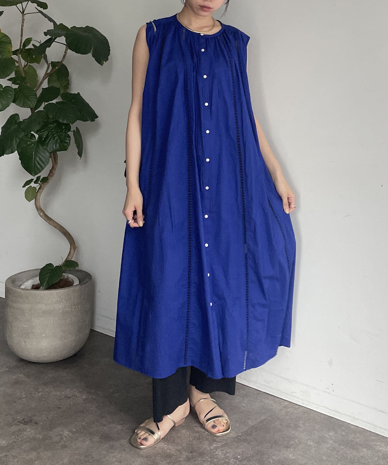 Thevon.(ゼヴォン) ラダーレースコットンローンノースリワンピース