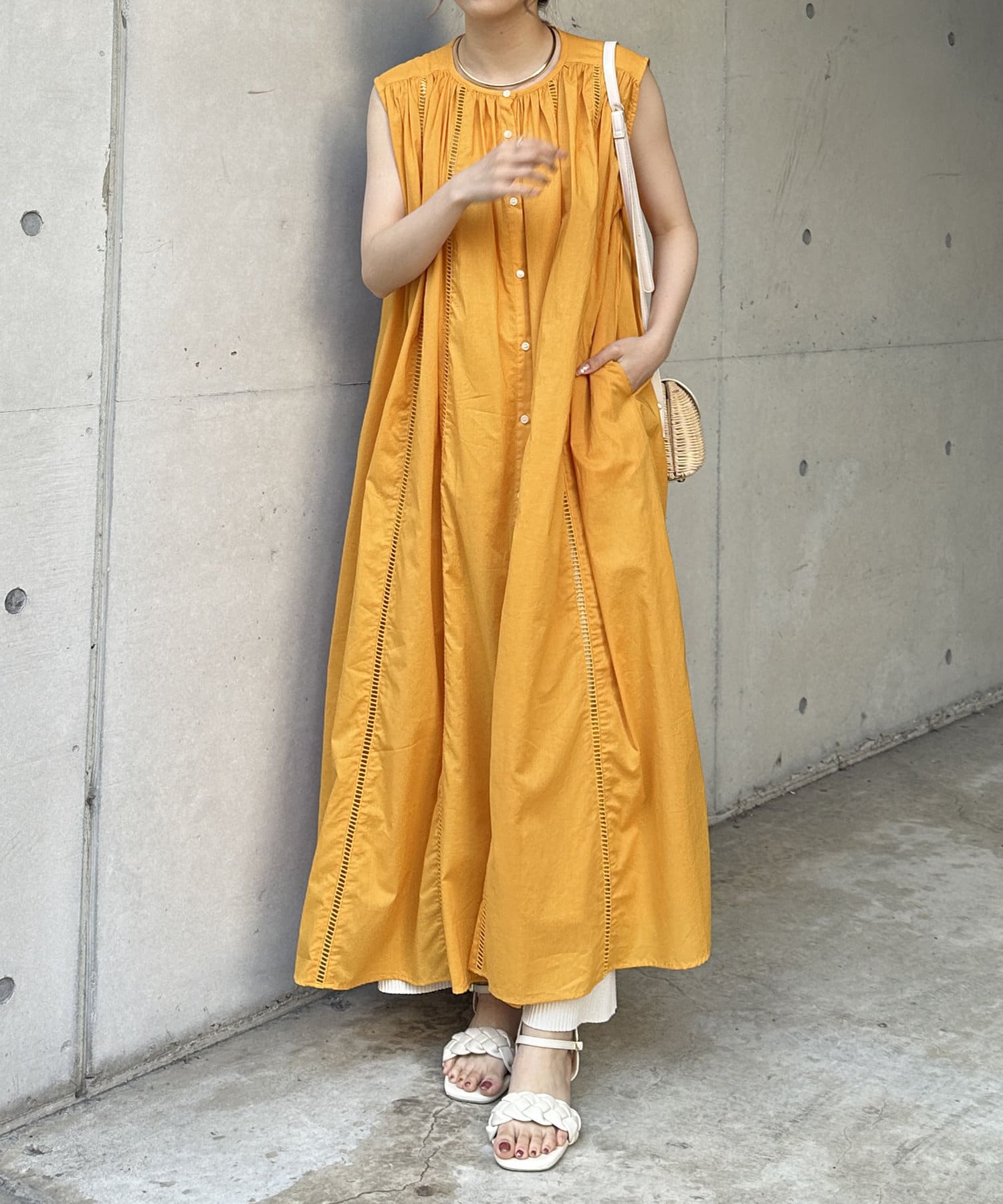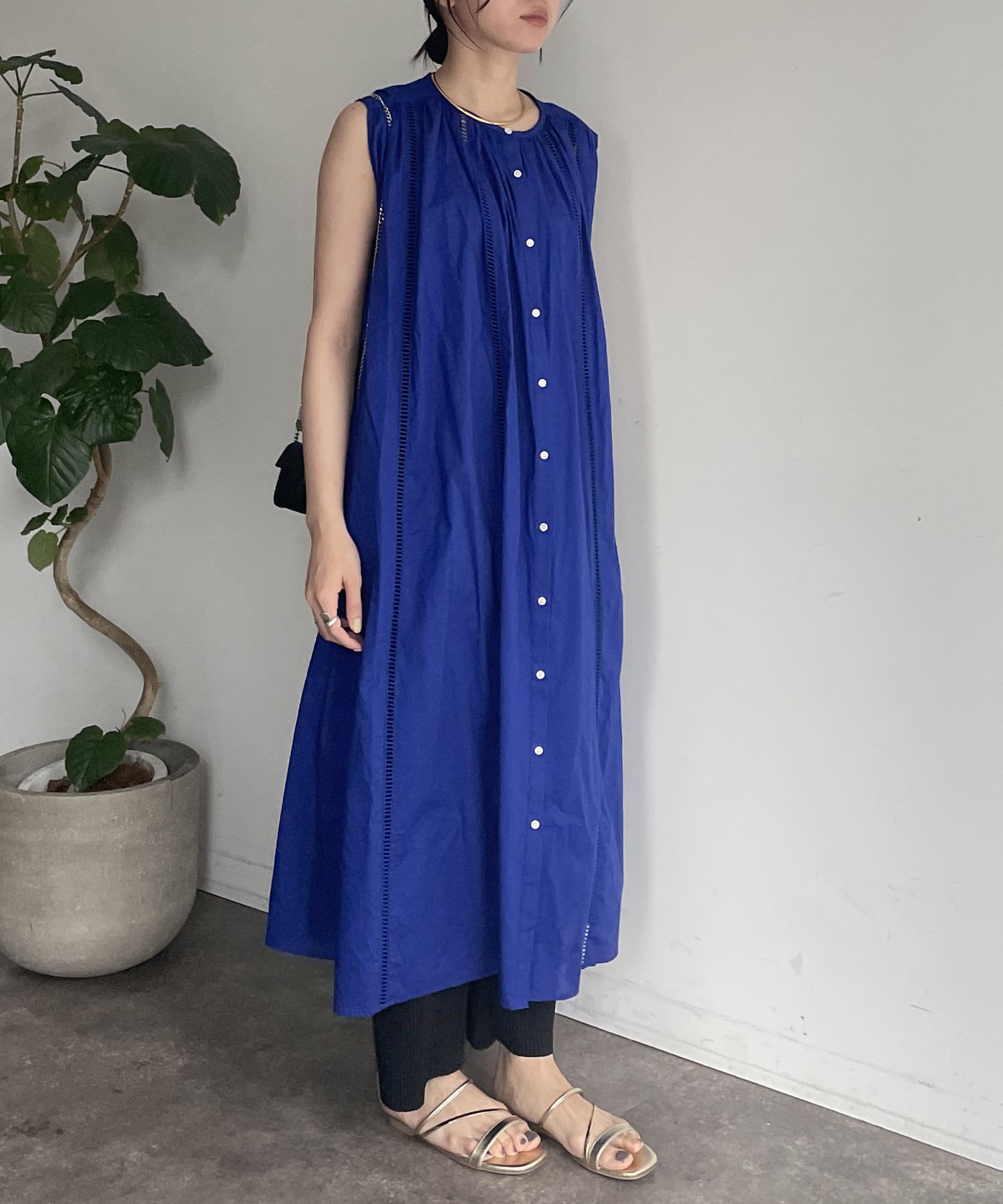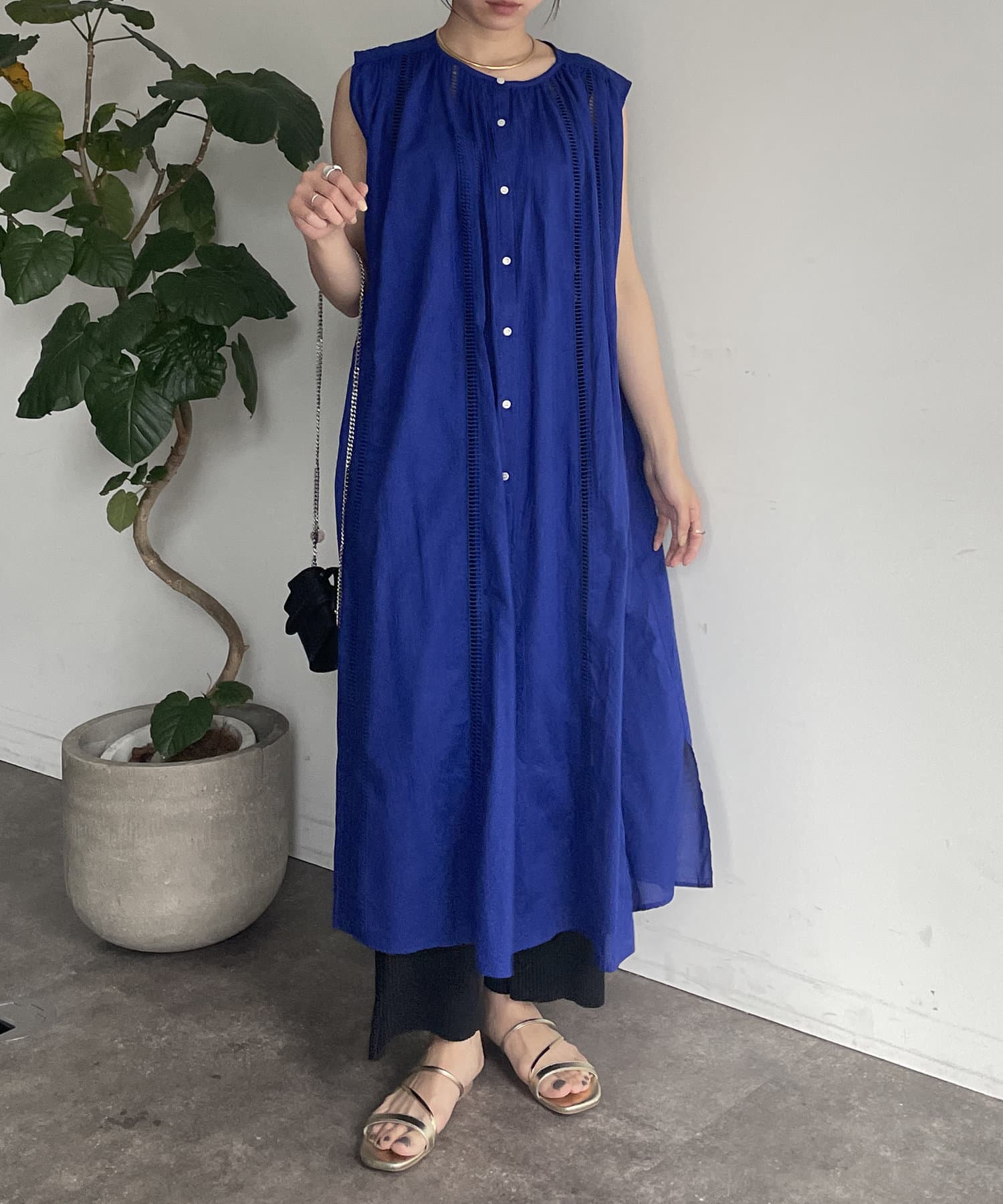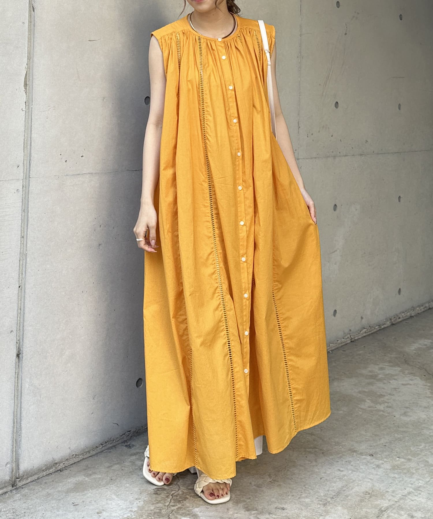 Thevon.(ゼヴォン) ラダーレースコットンローンノースリワンピース