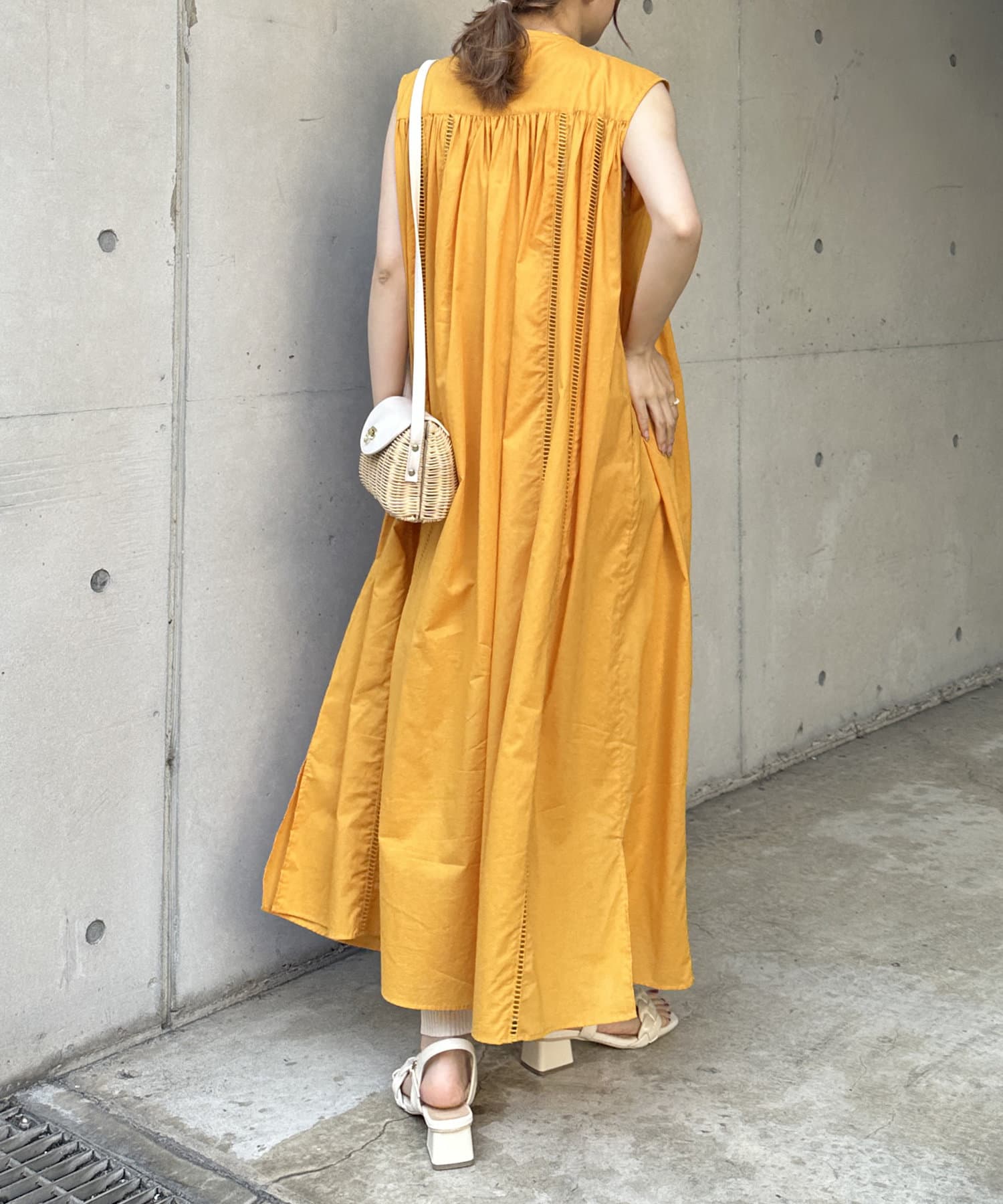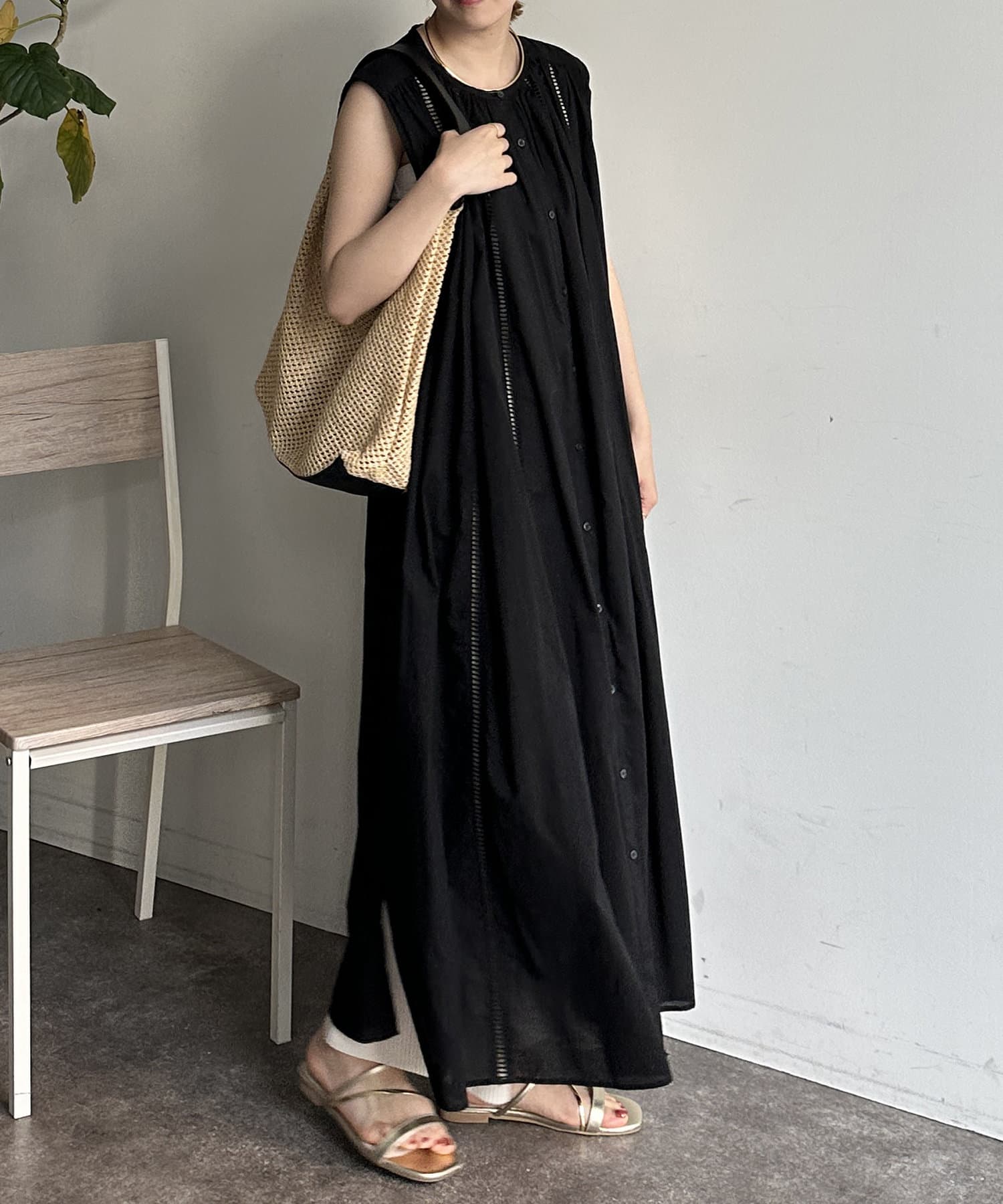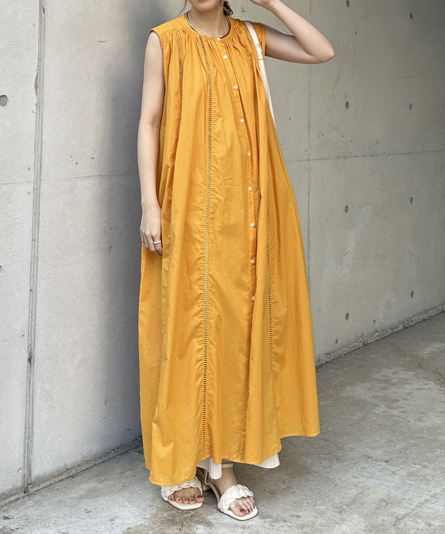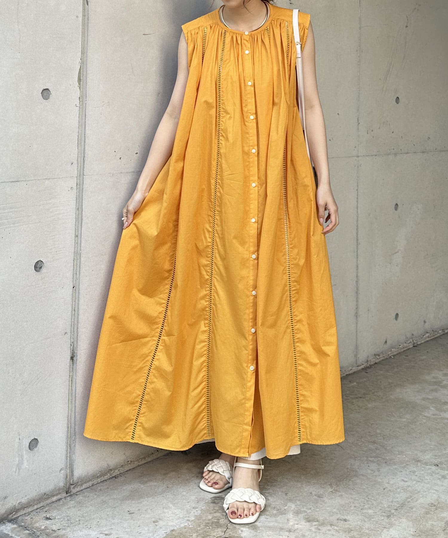 Thevon.(ゼヴォン) ラダーレースコットンローンノースリワンピース