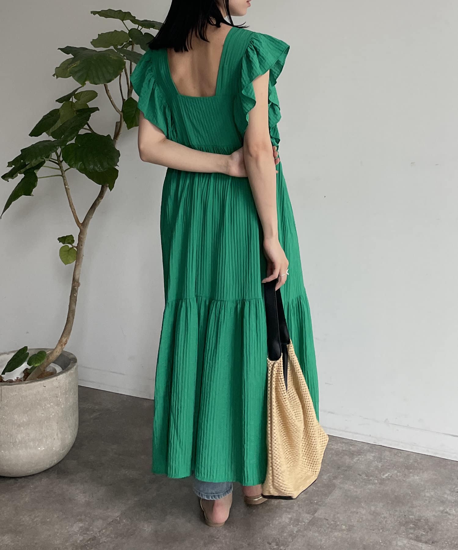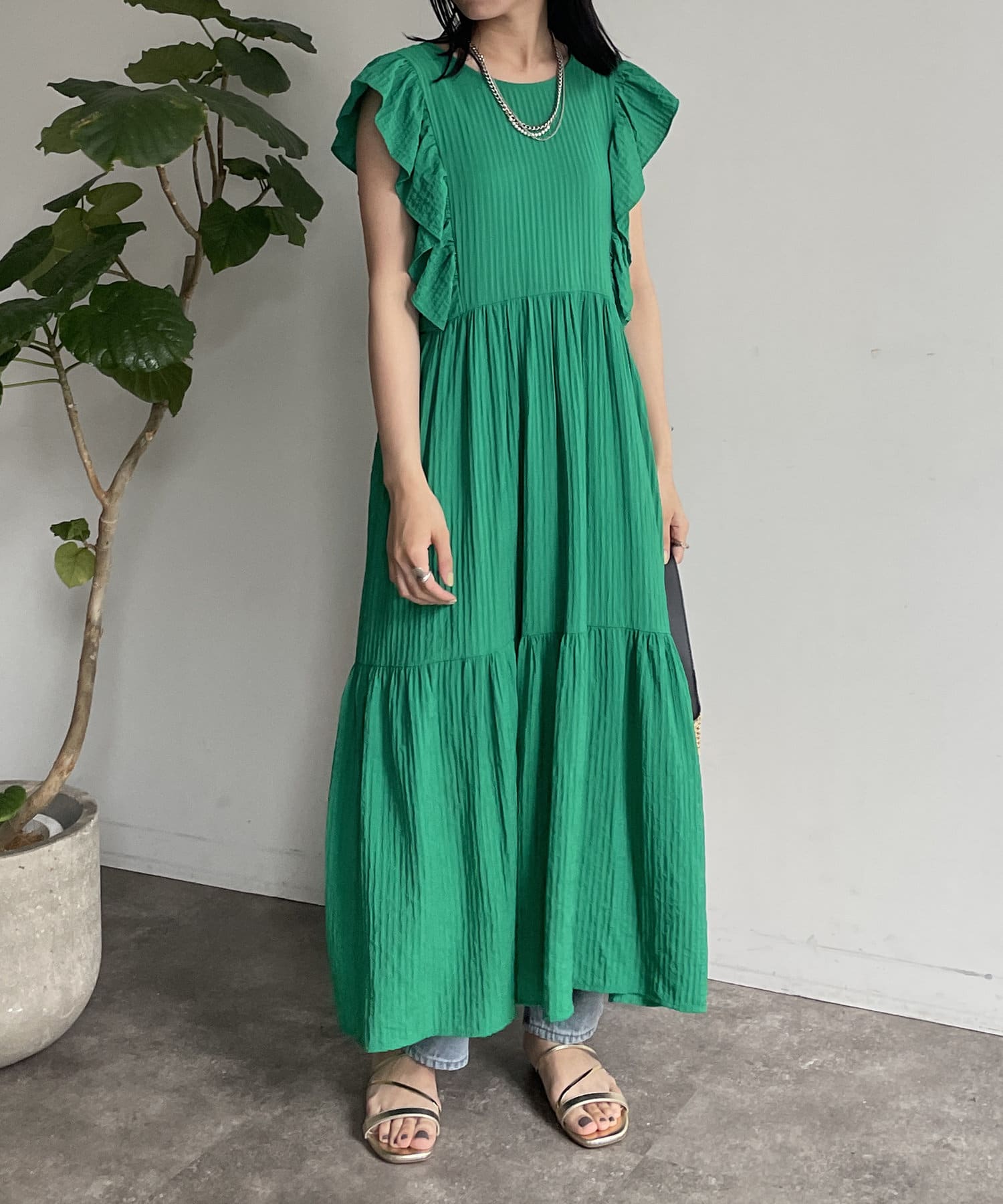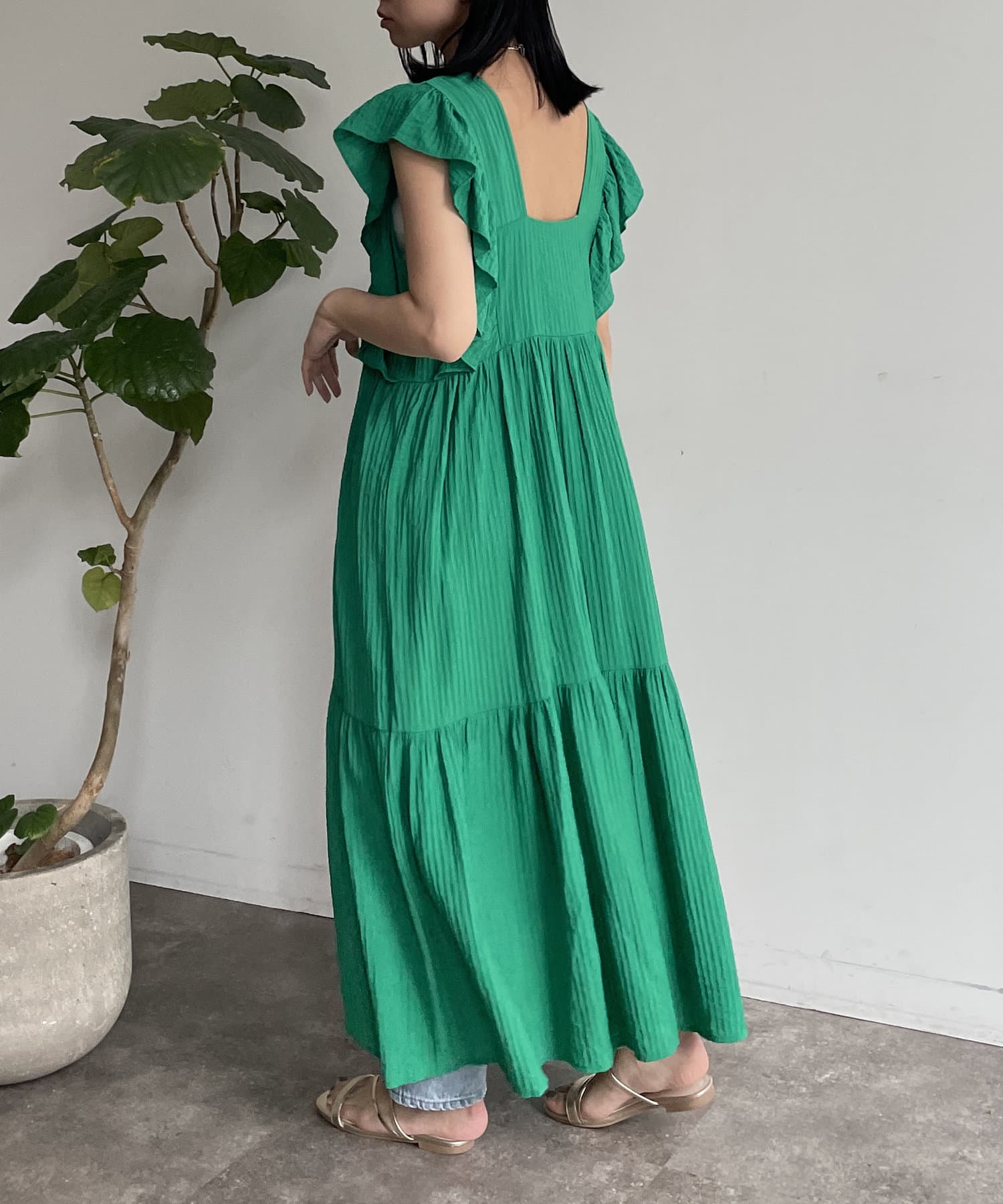 バックオープンフリルティアードワンピース