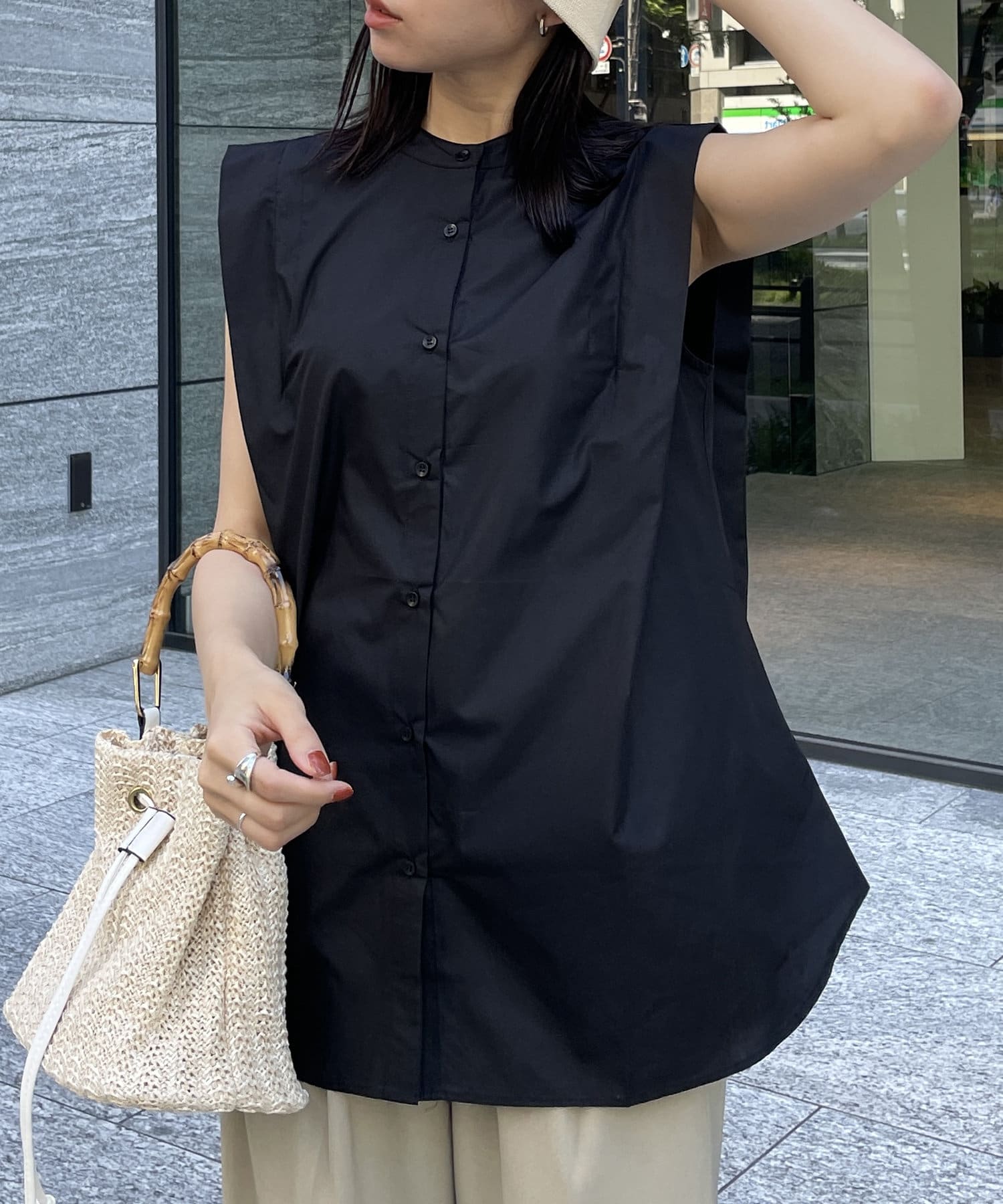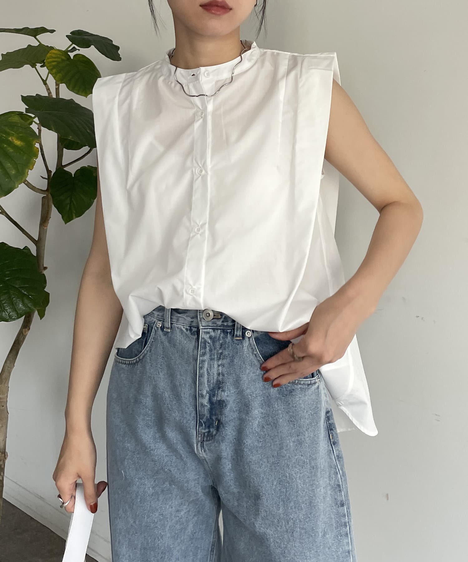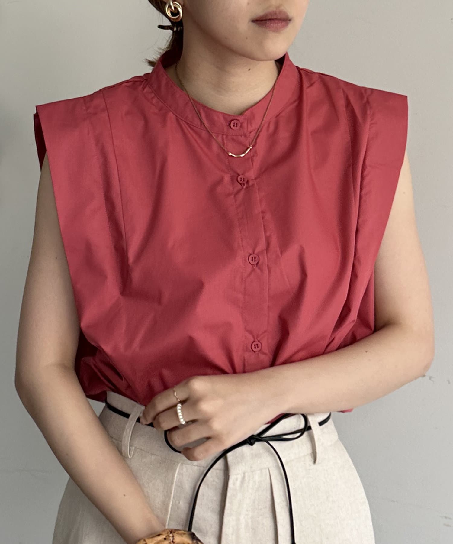 #デザインブラウス #ノースリーブ #カラーシャツ