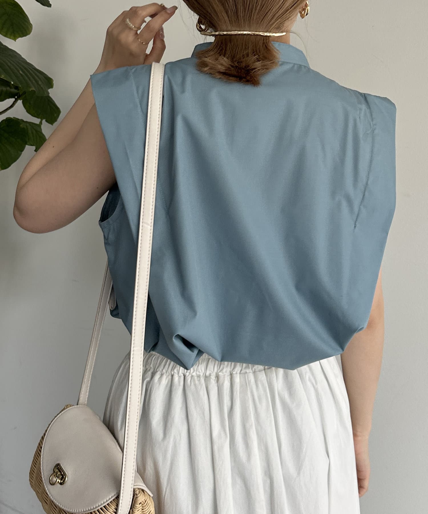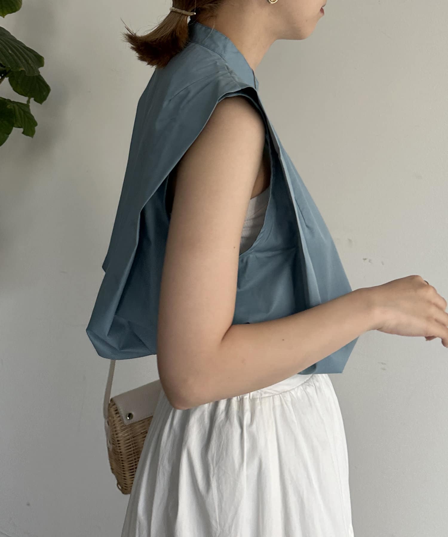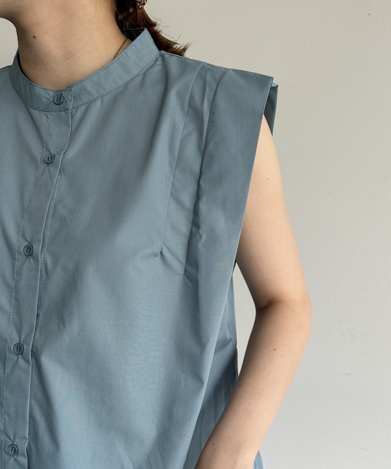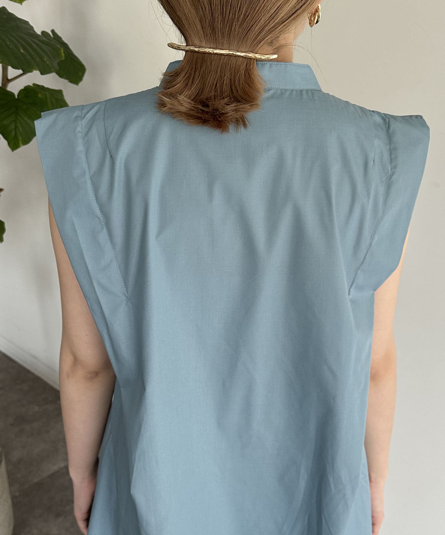 肩タックノースリAラインブラウス