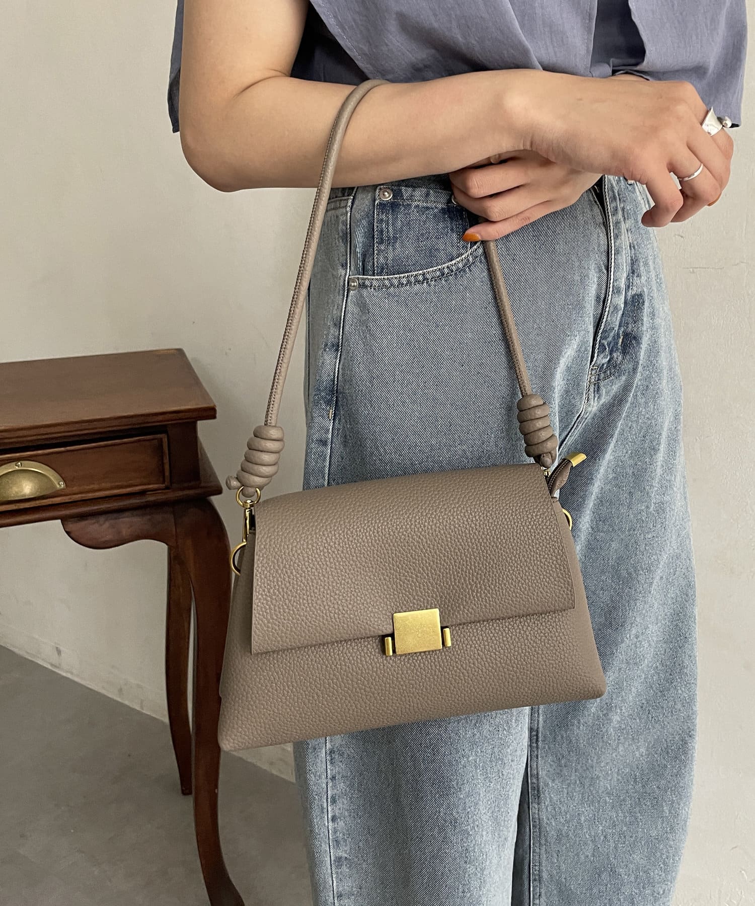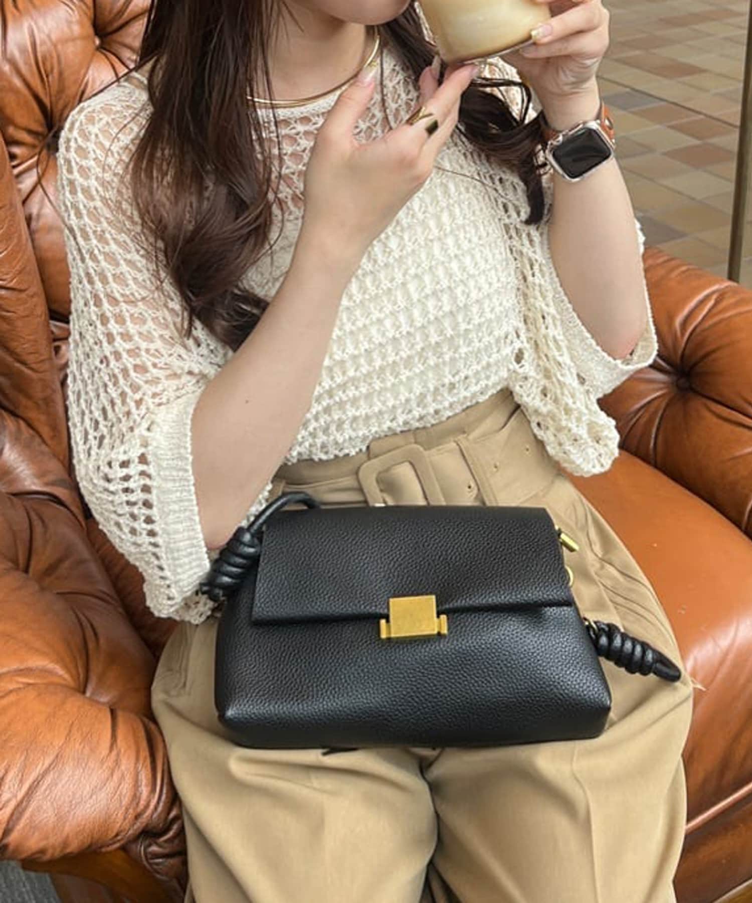 ハンドルデザインフラップショルダーバッグ