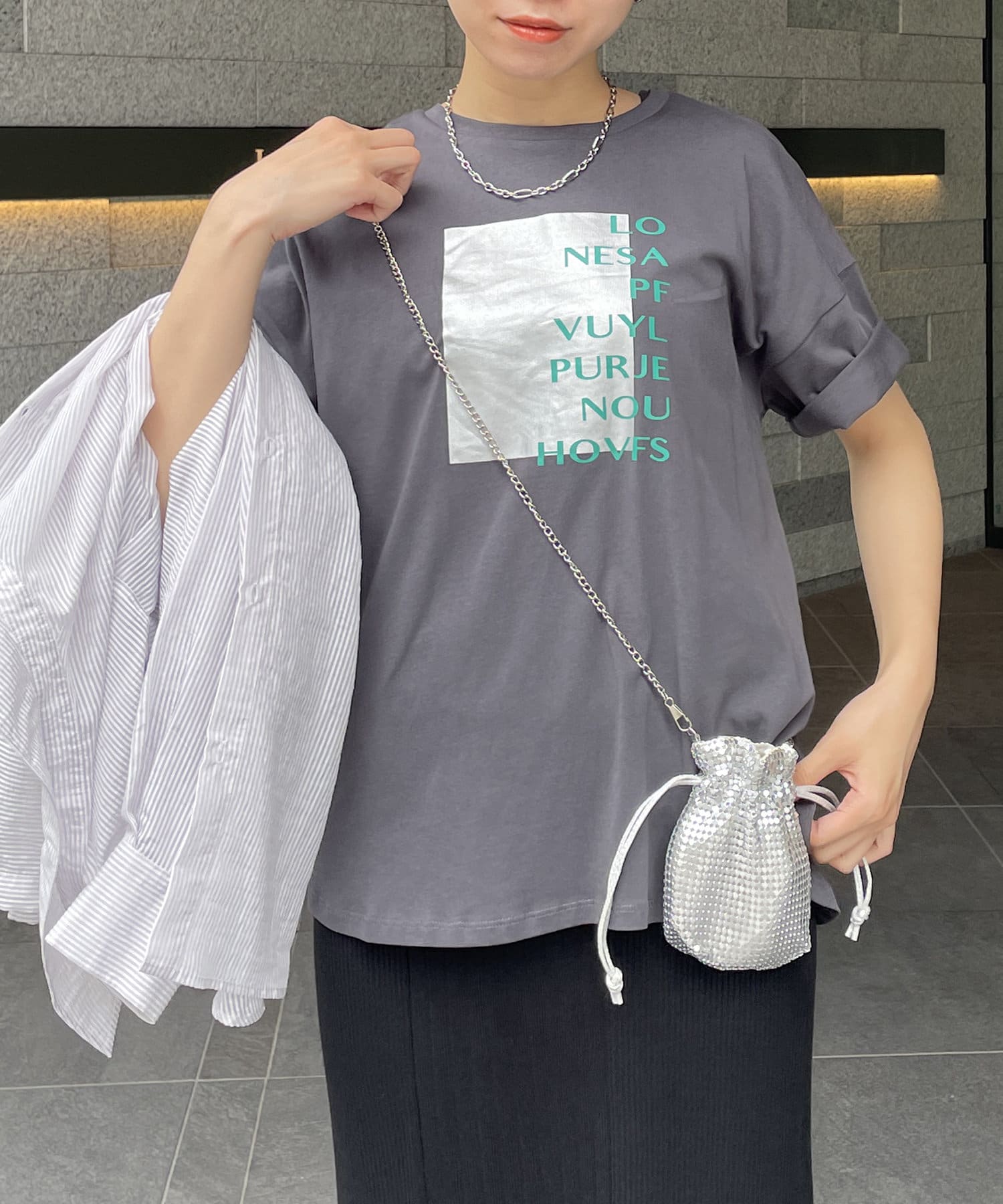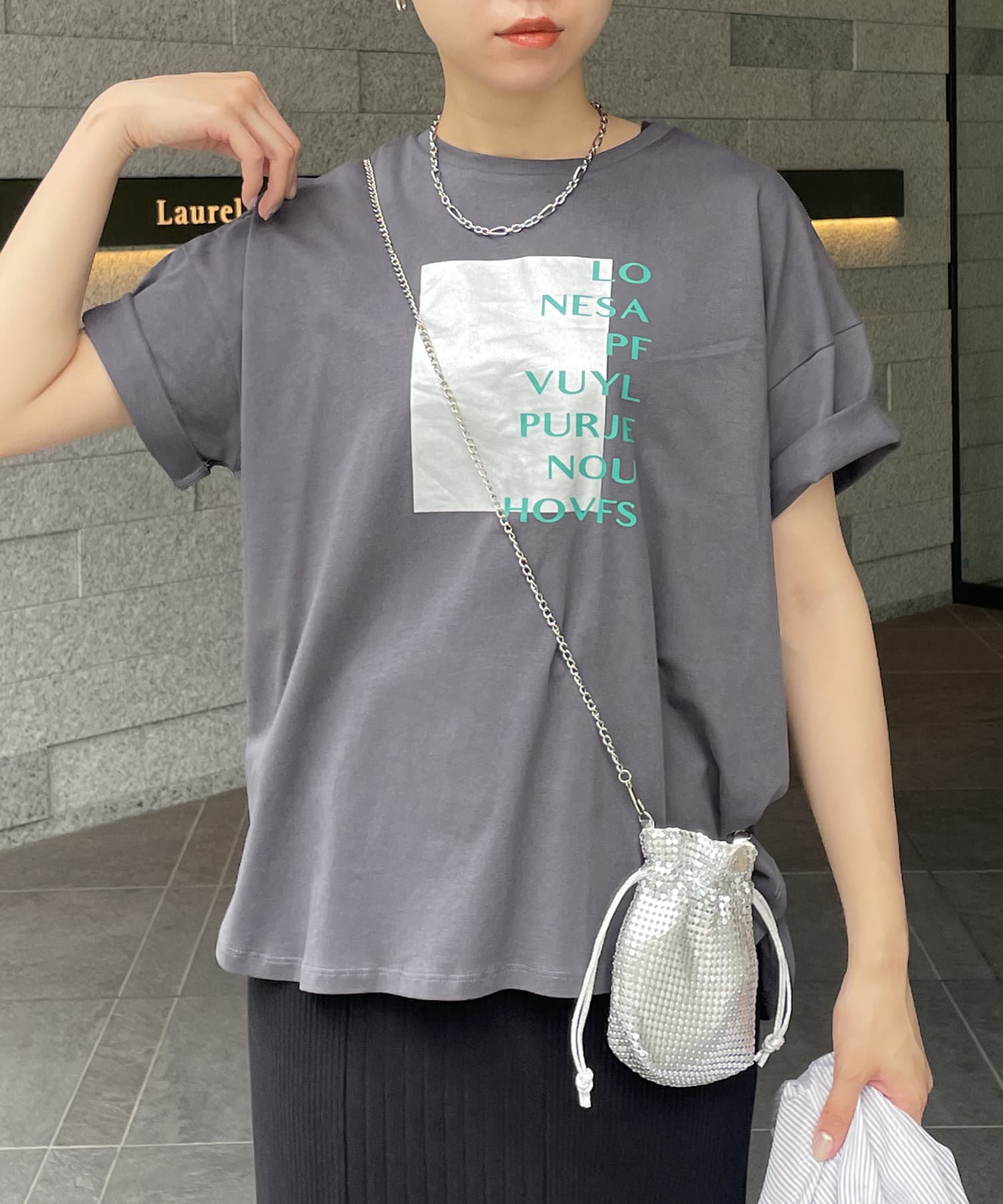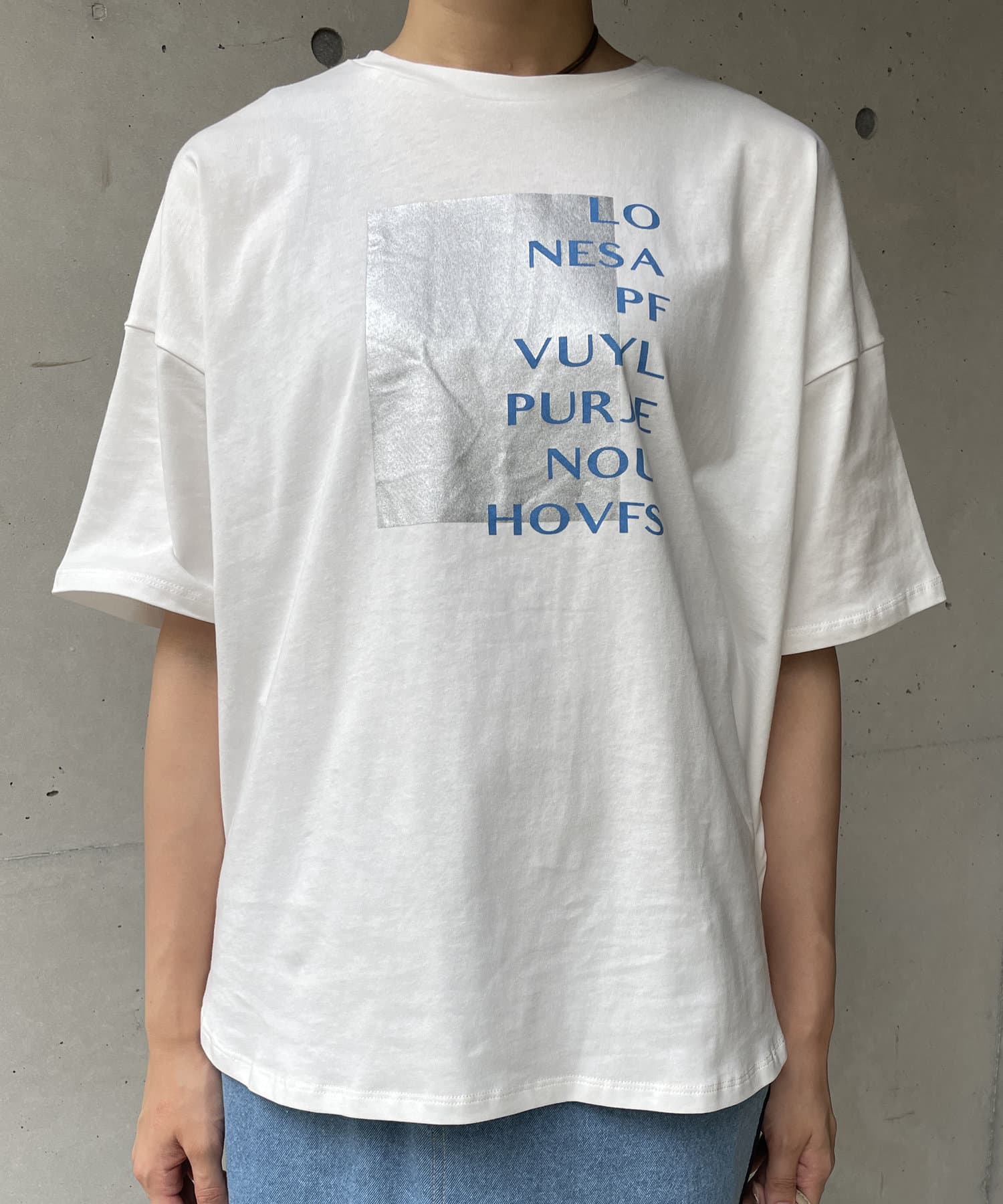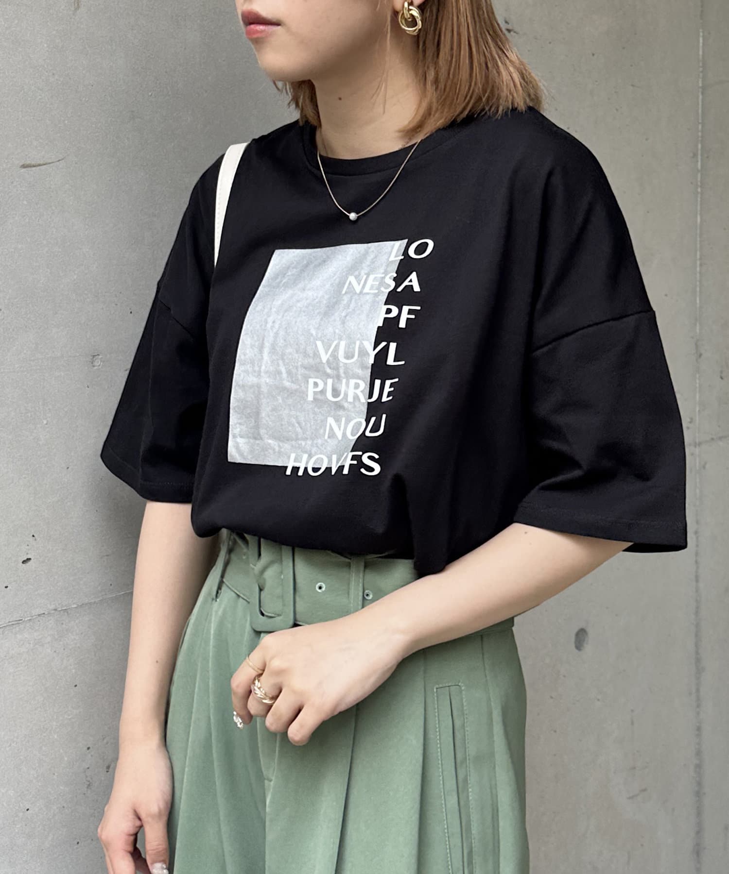 スクエア箔プリントTシャツ