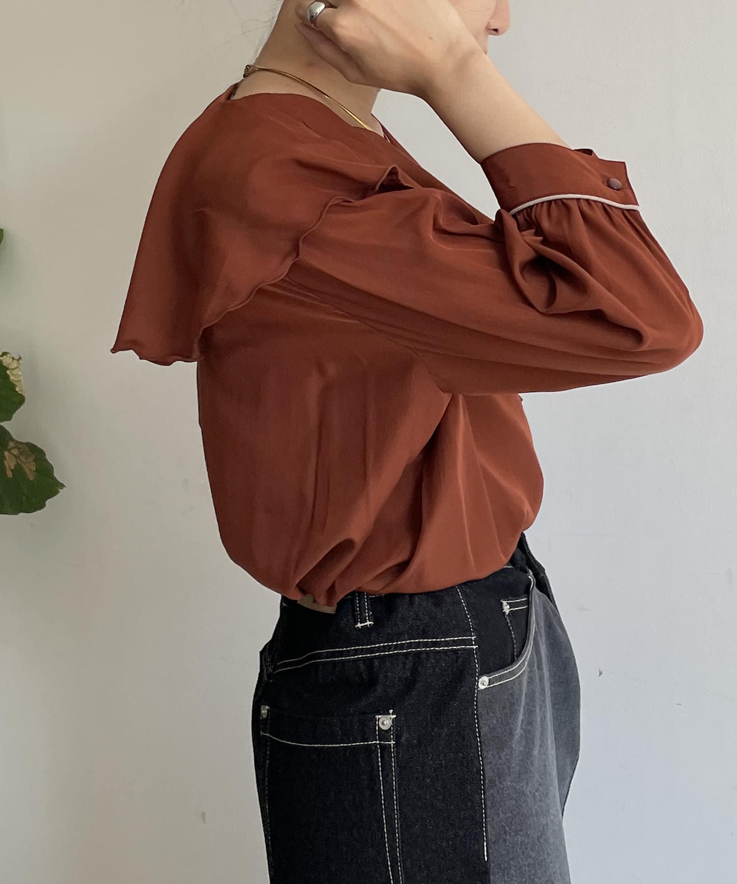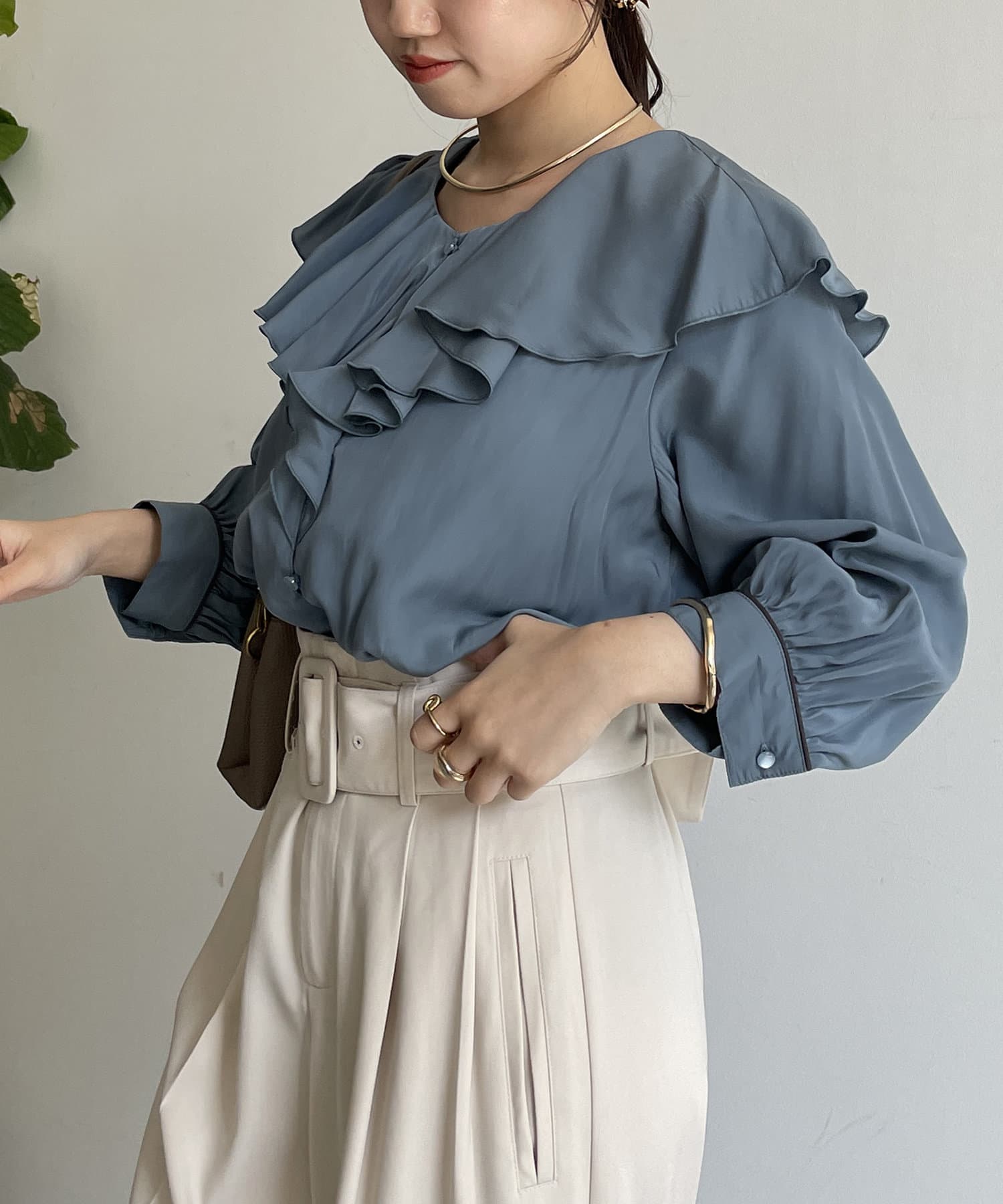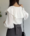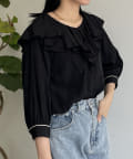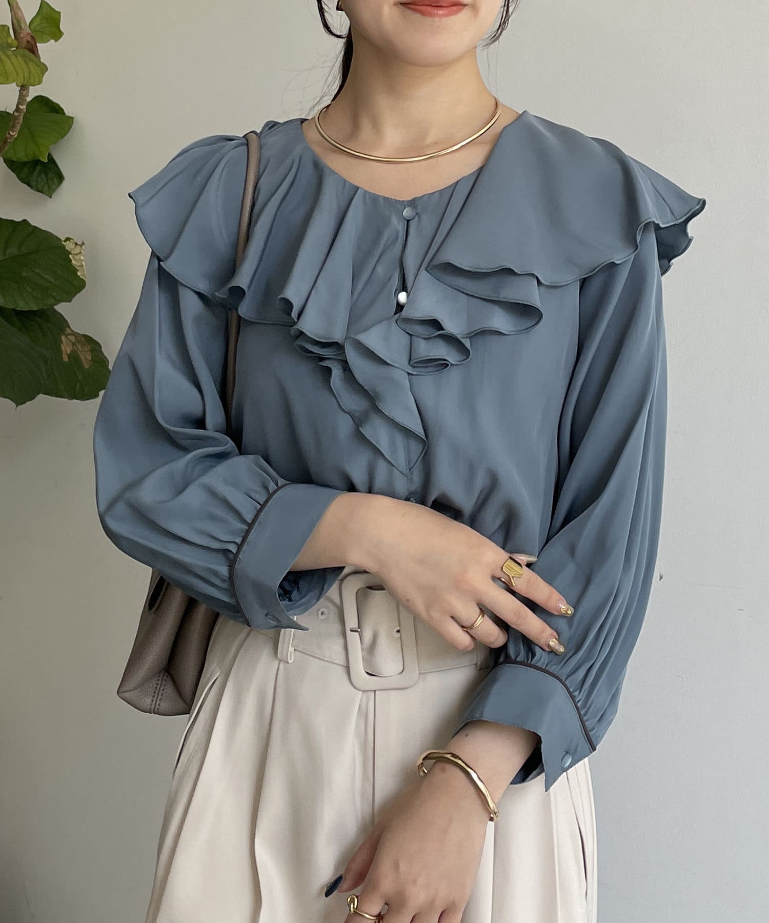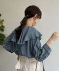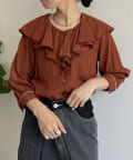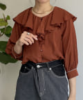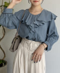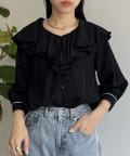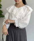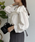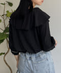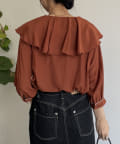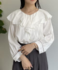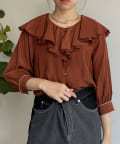 フリルカラー袖口パイピングブラウス