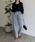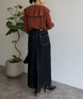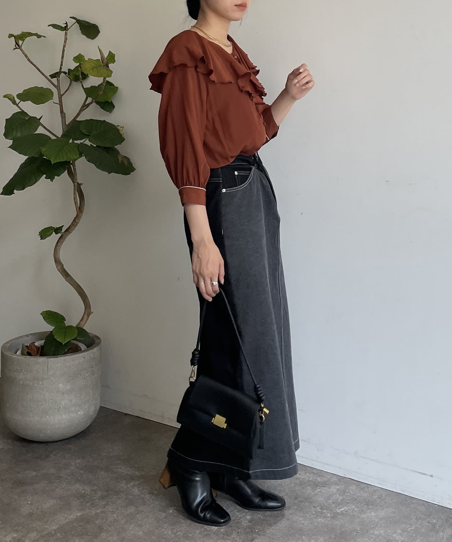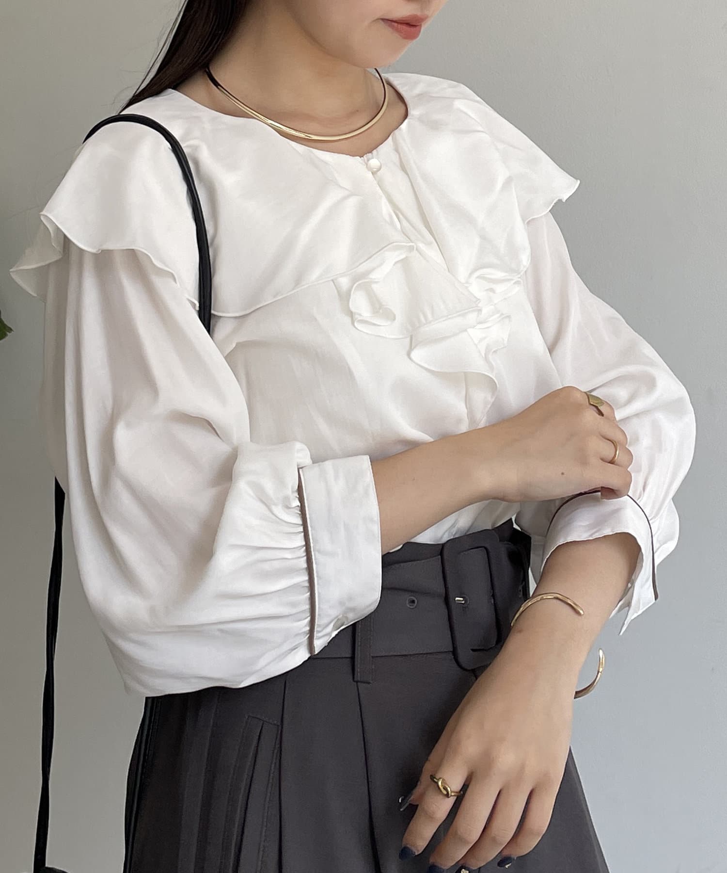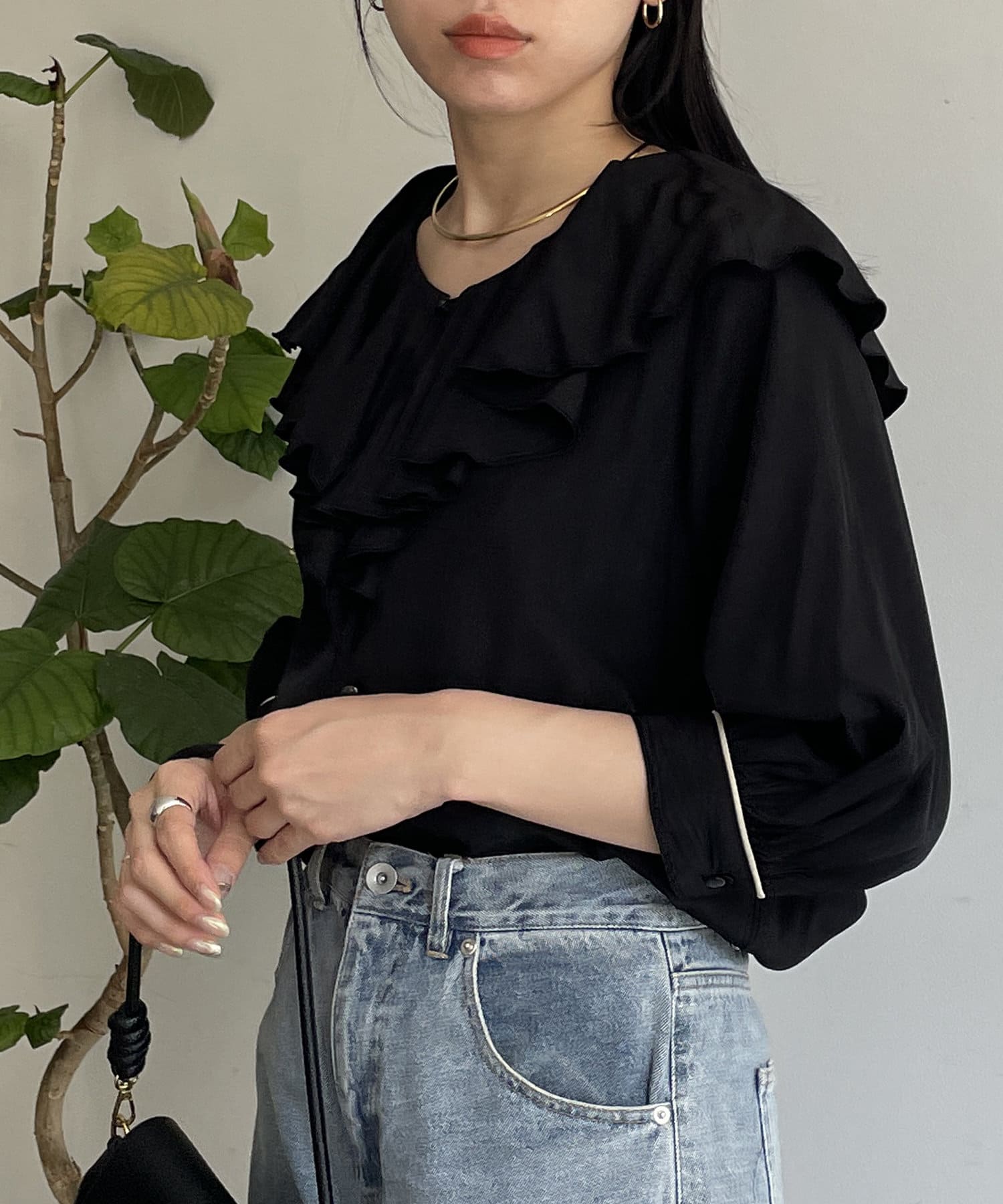 フリルカラー袖口パイピングブラウス