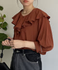 バックシルエットも可愛いフリルブラウス