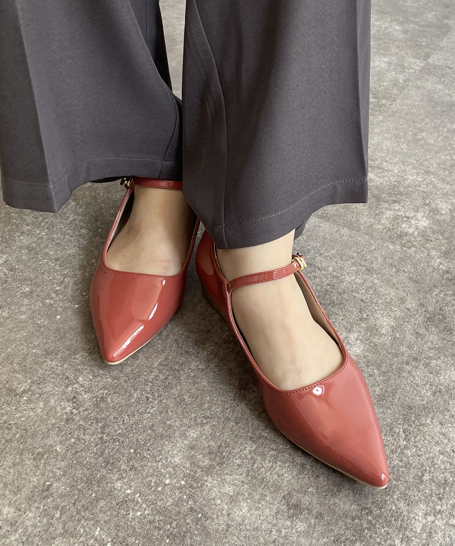 エナメルストラップパンプス