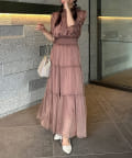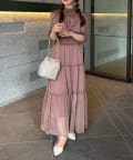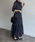 • Thevon.(ゼヴォン) 【オケージョン】袖シャーリングハイネックティアードワンピース