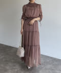 Thevon.(ゼヴォン) 【オケージョン】袖シャーリングハイネックティアードワンピース