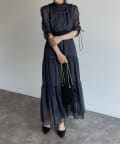 TOP > Thevon. > レディース > ワンピース > ドレス/オケージョンワンピース > 【オケージョン】袖シャーリングハイネックティアードワンピース