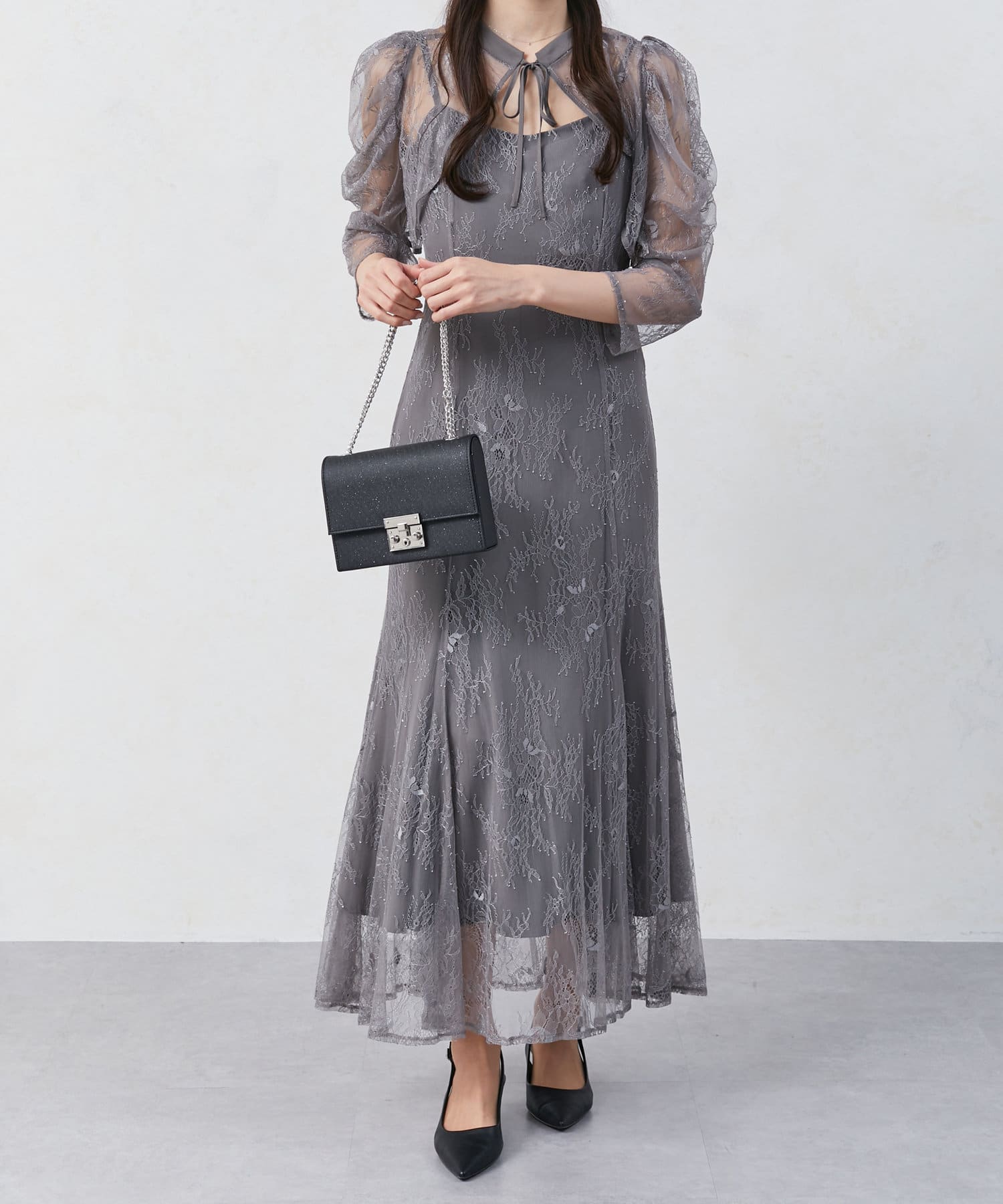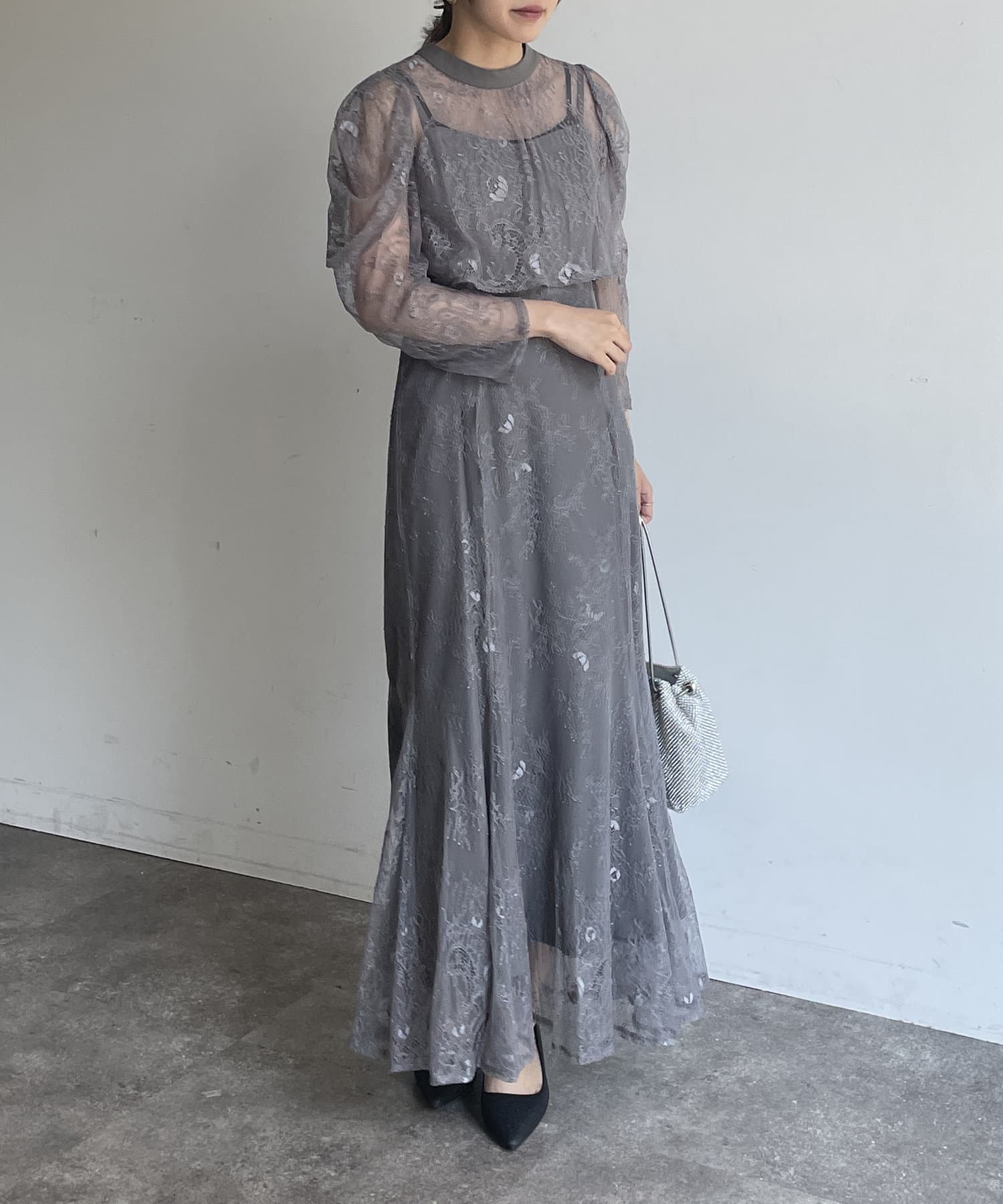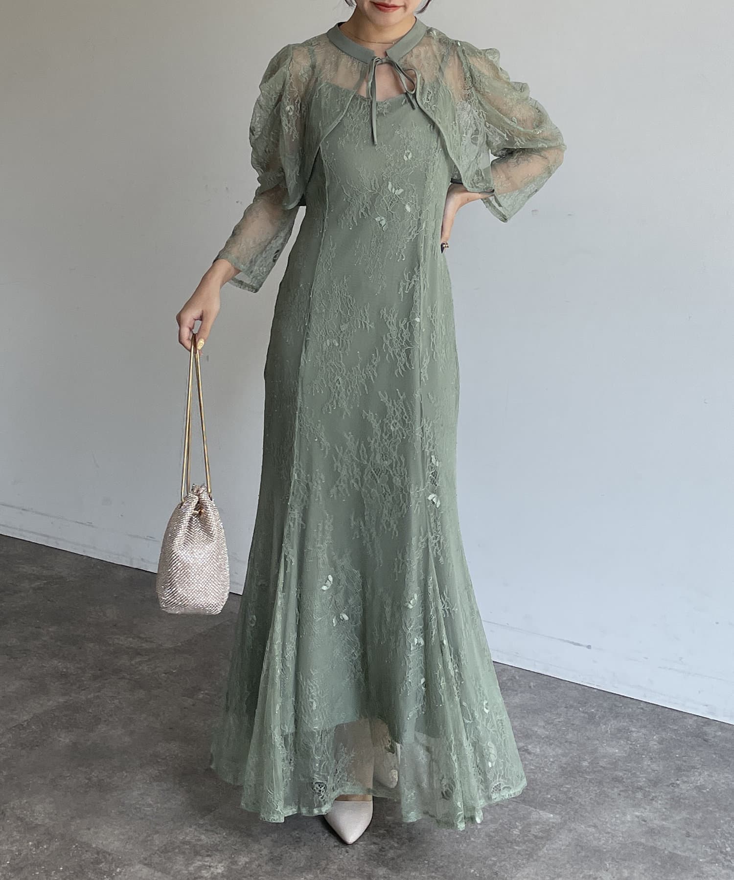 【オケージョン】ボレロレイヤーレースキャミワンピース