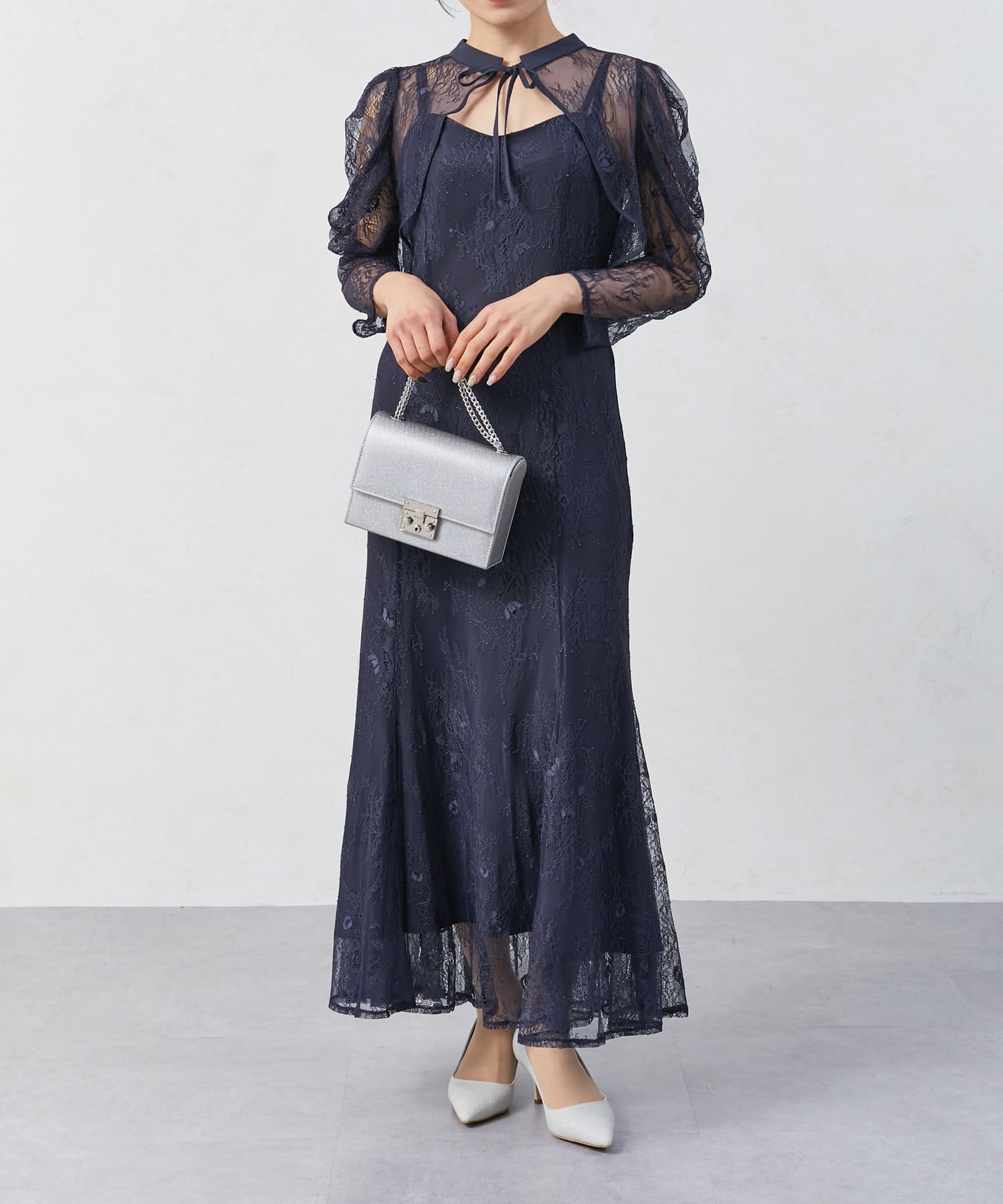 ・シンプルなキャミソールドレスとレースボレロのSET