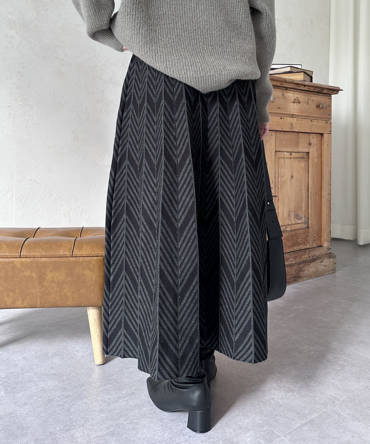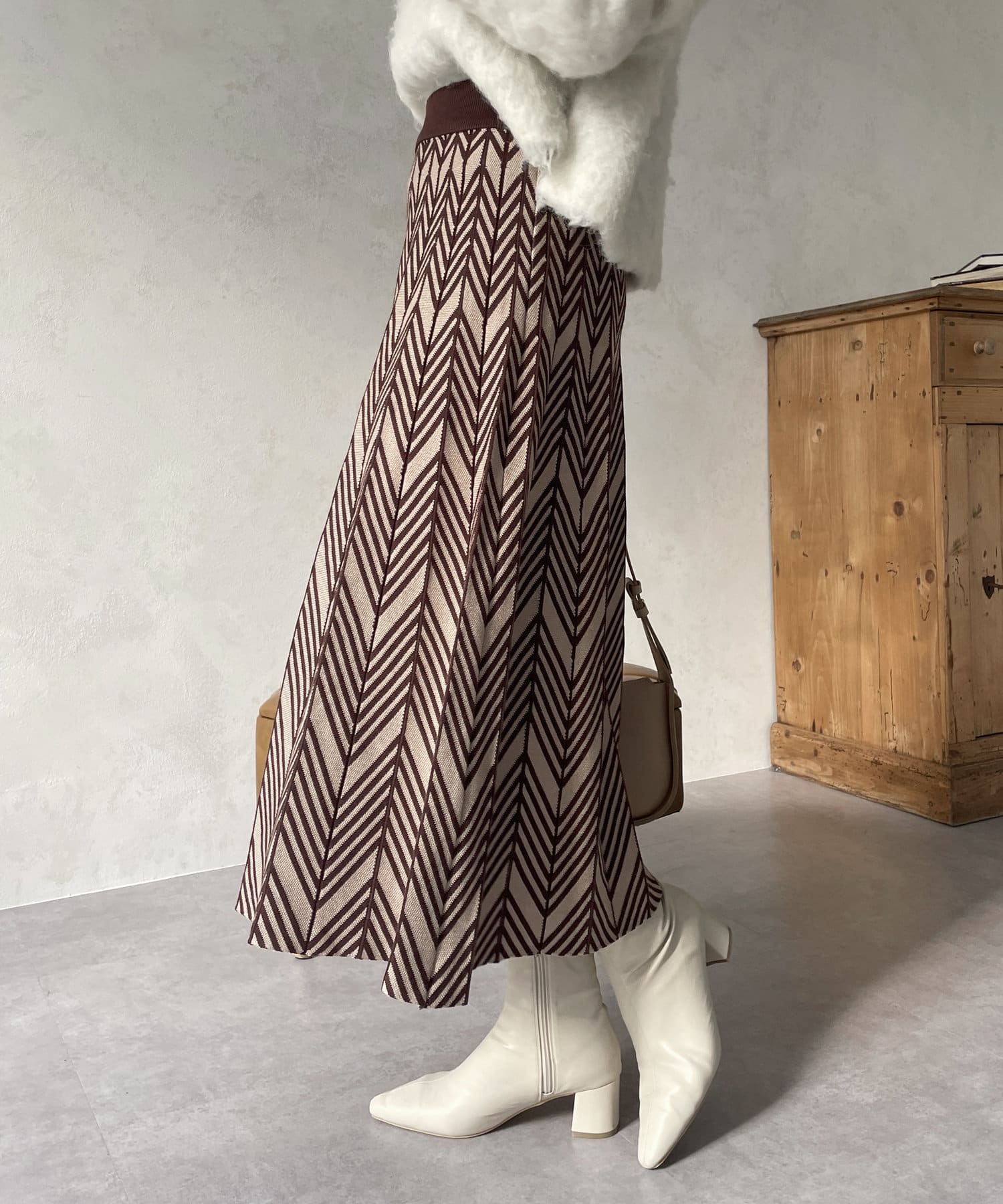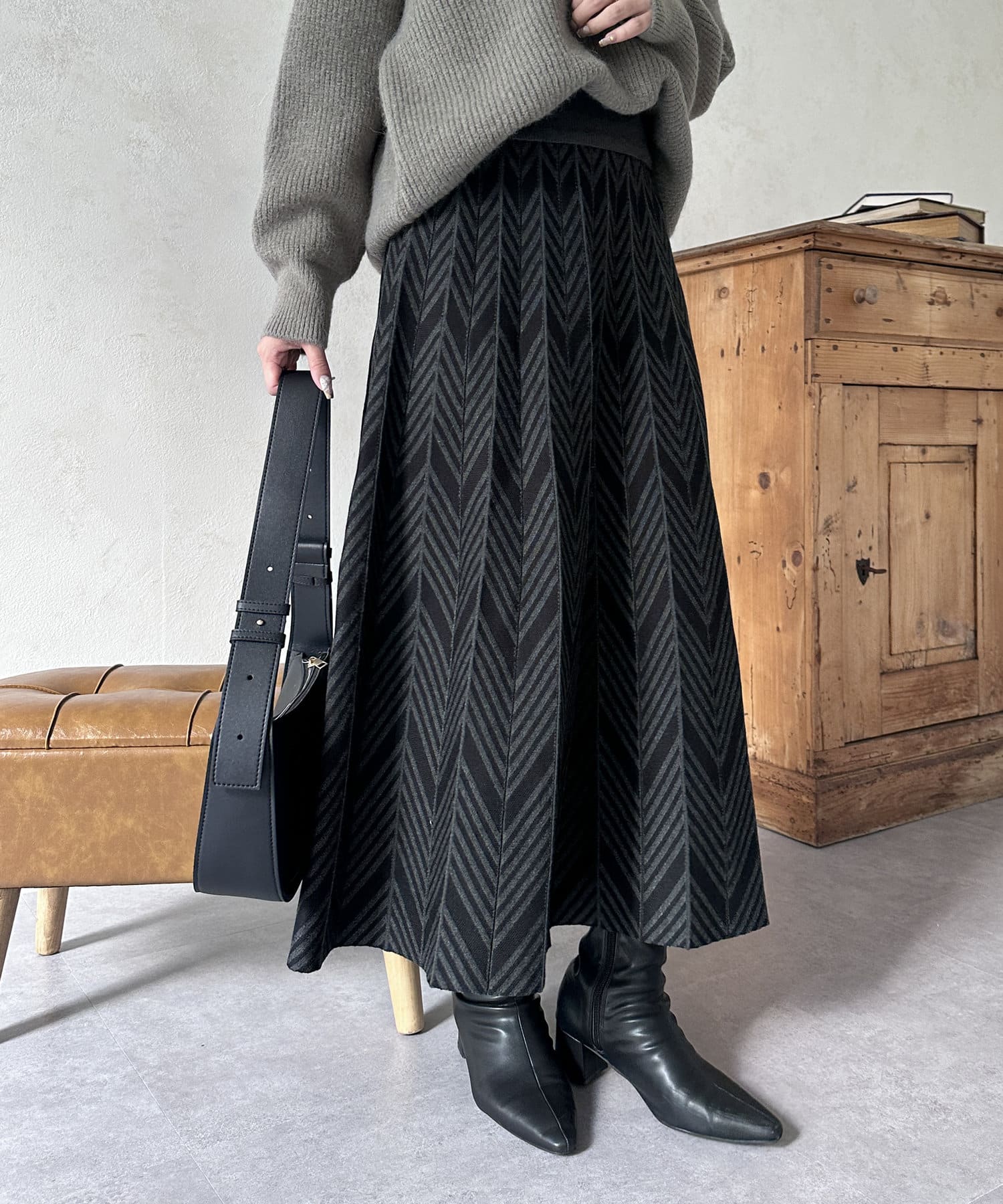 ヘリンボン柄ニットスカート