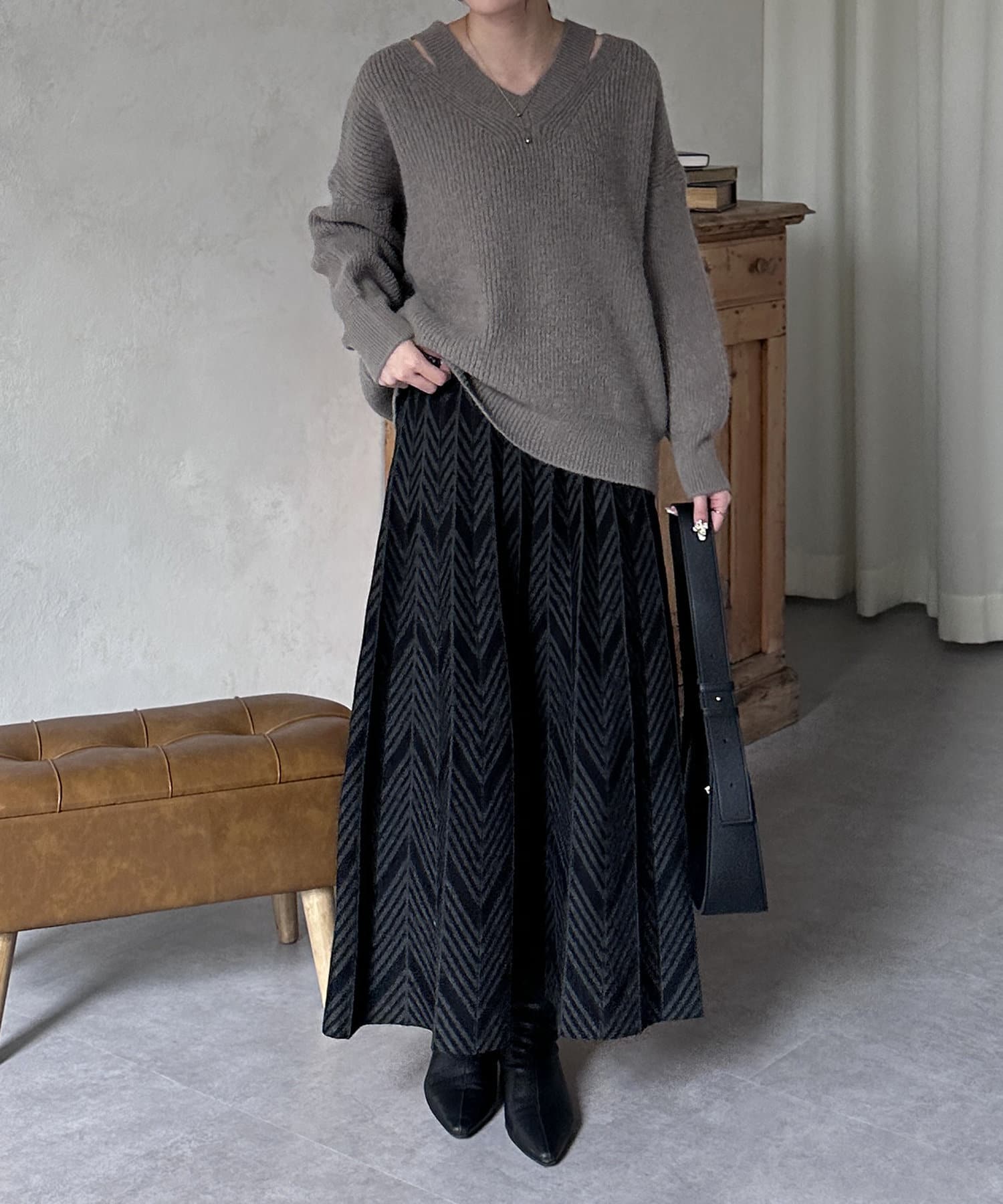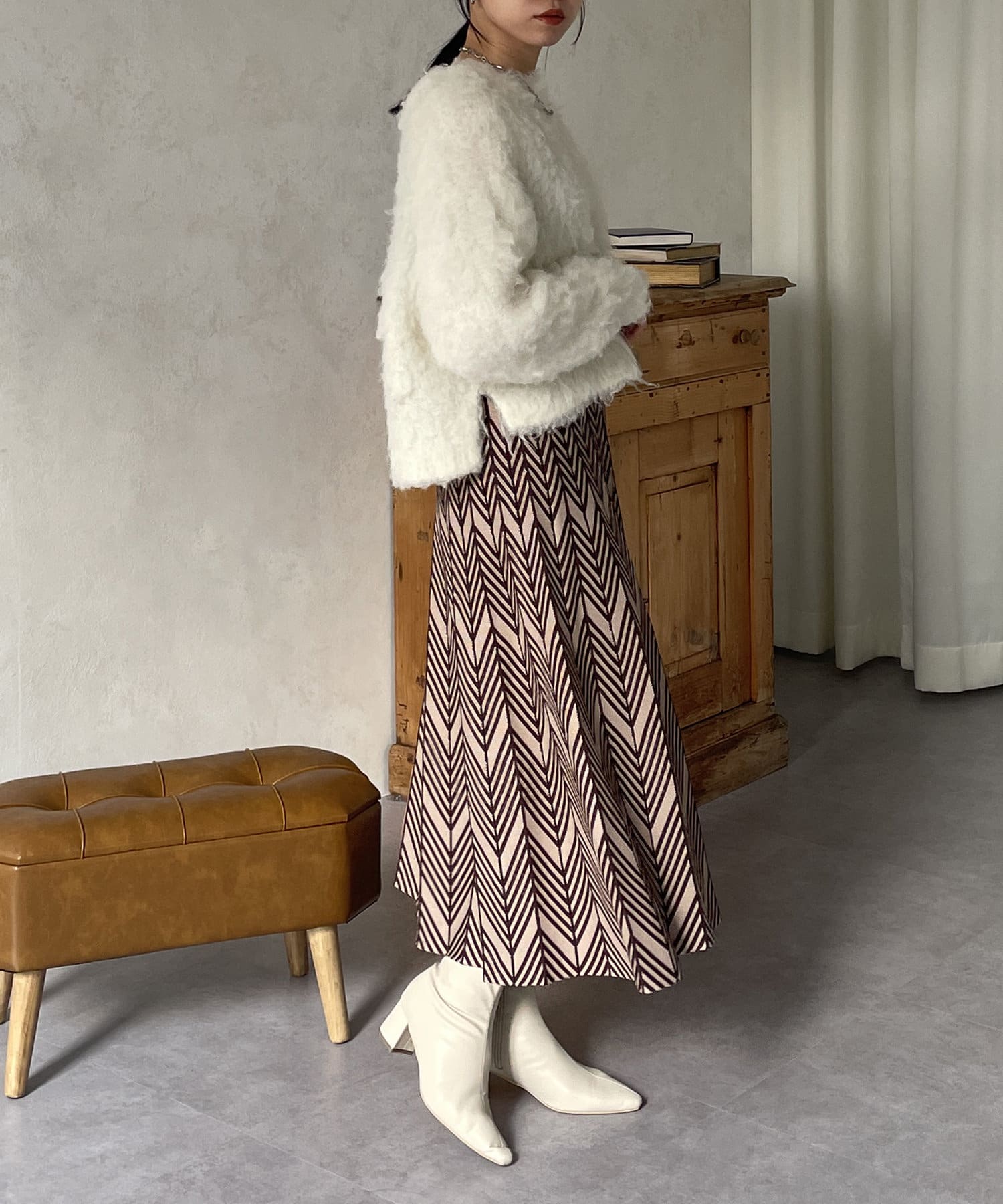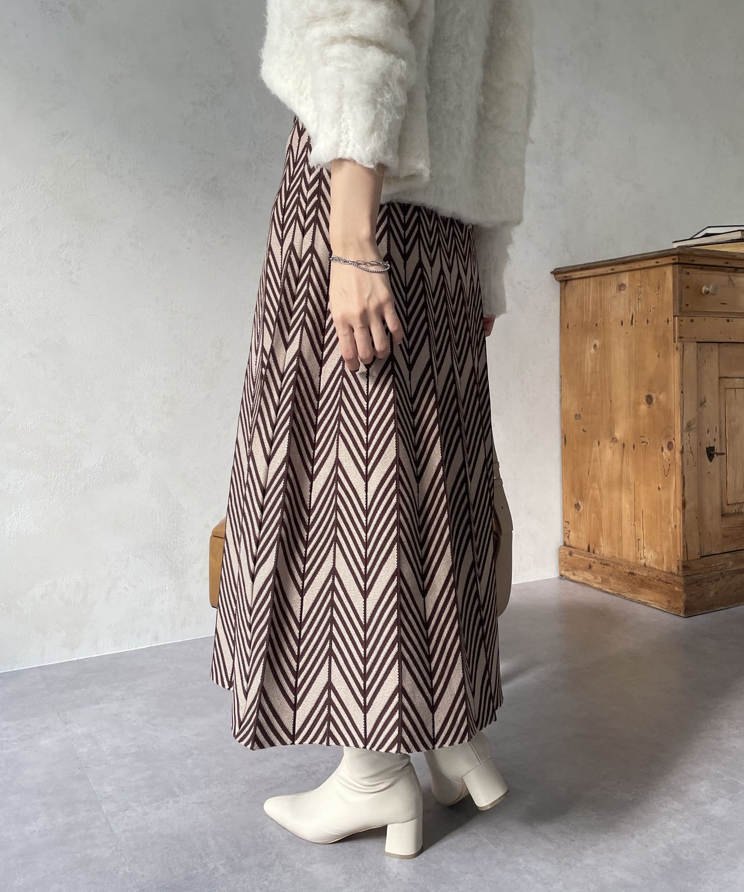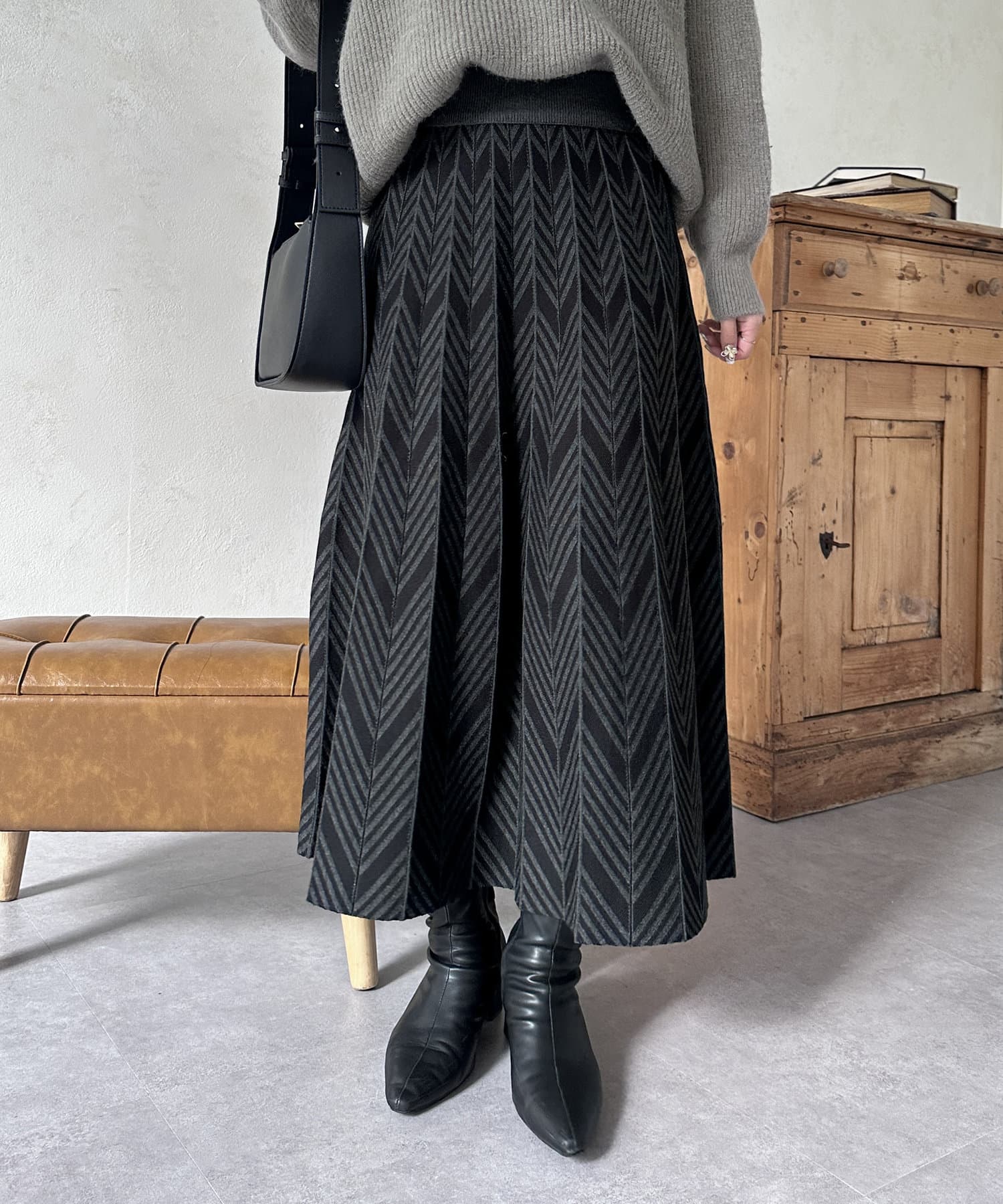 ヘリンボン柄ニットスカート