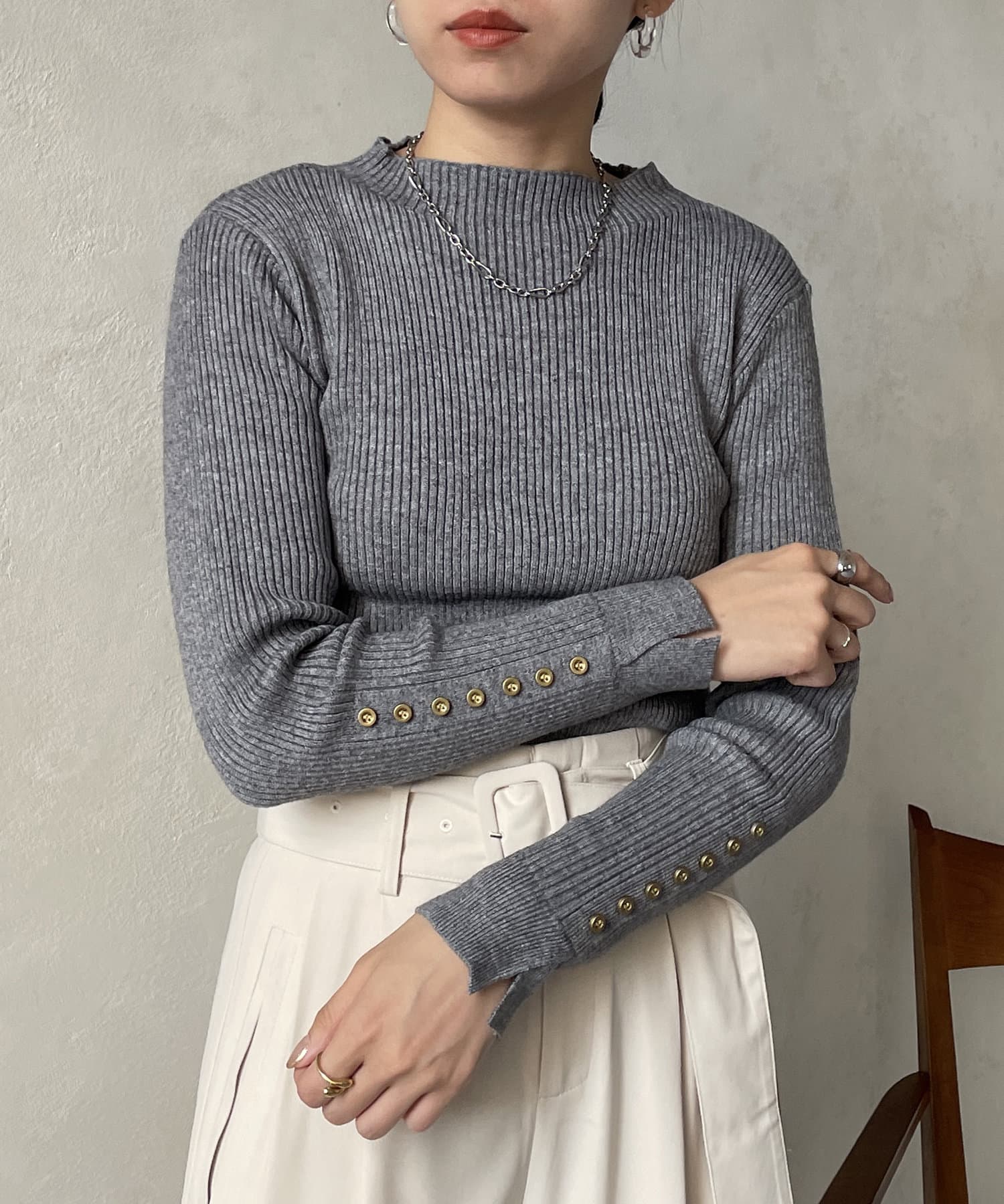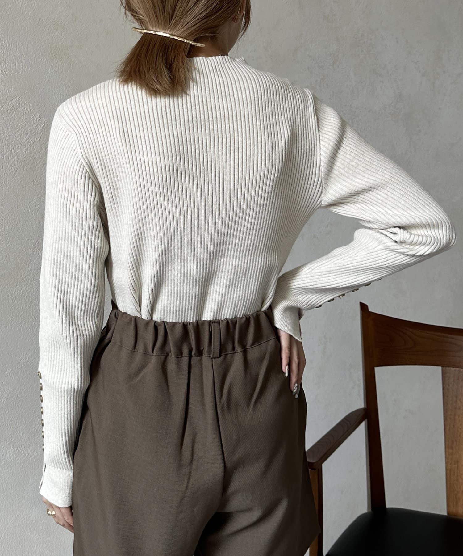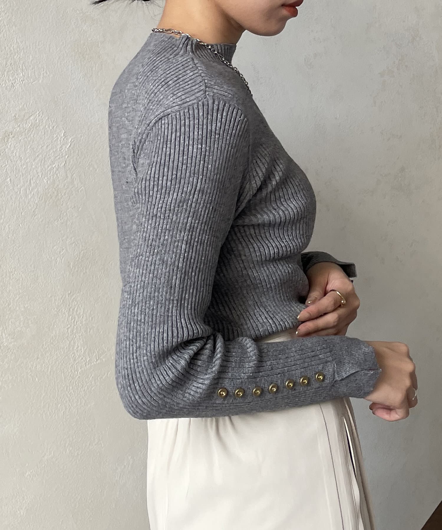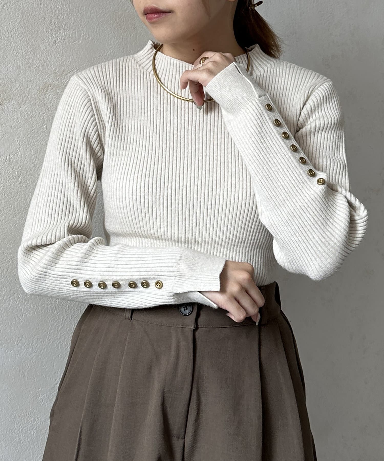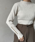 袖ボタンリブニットプルオーバー