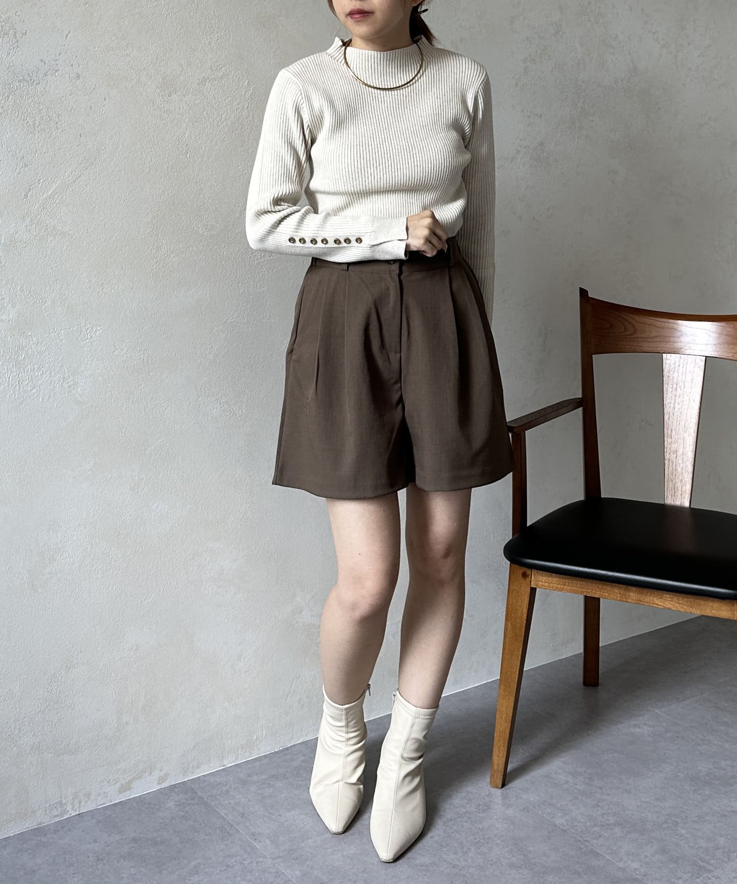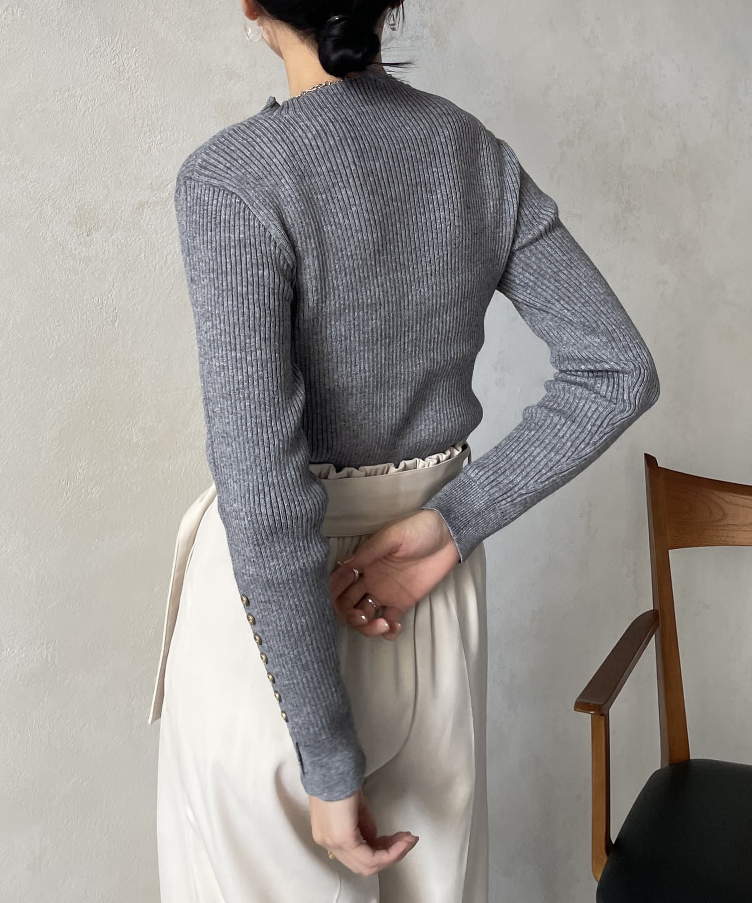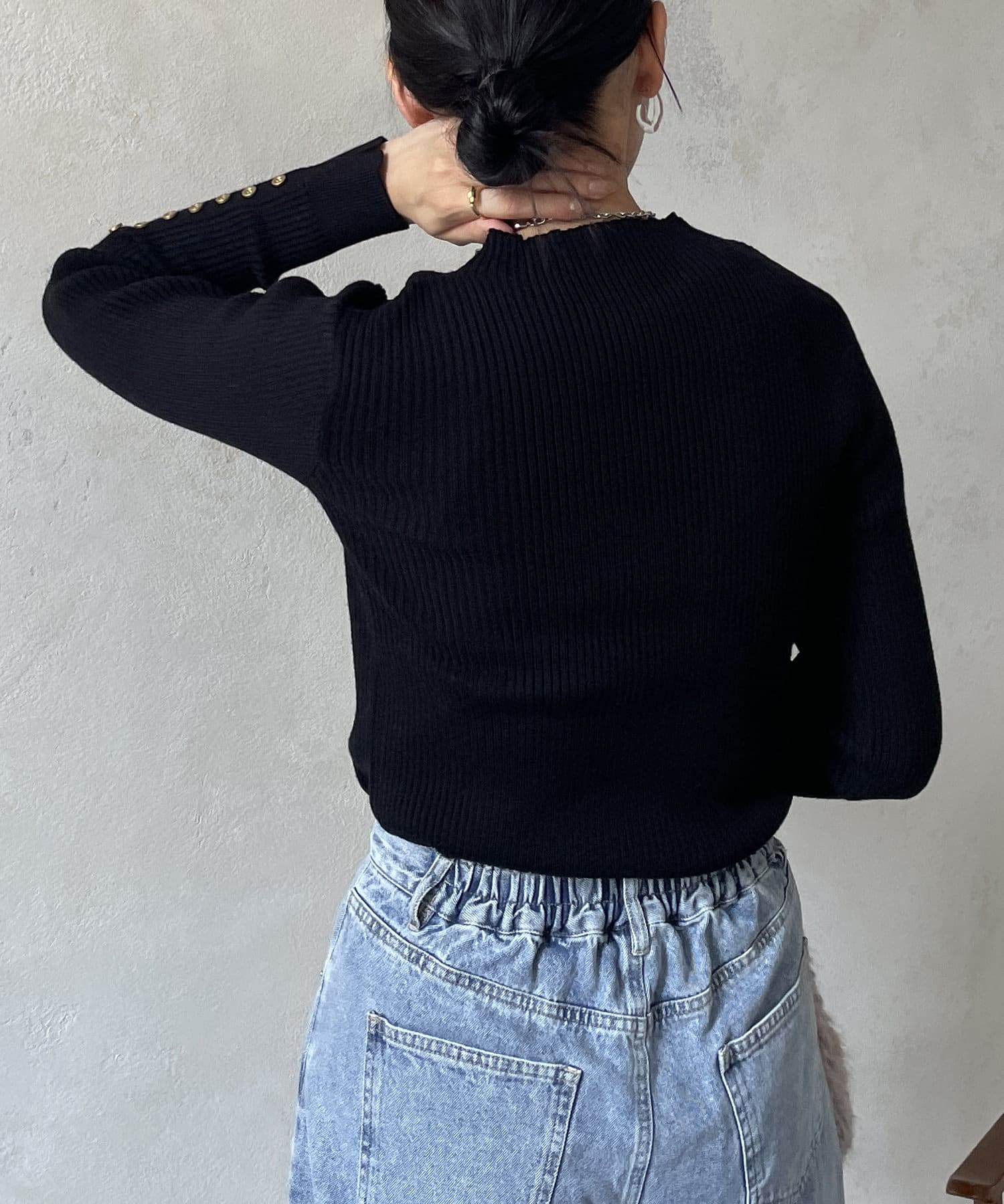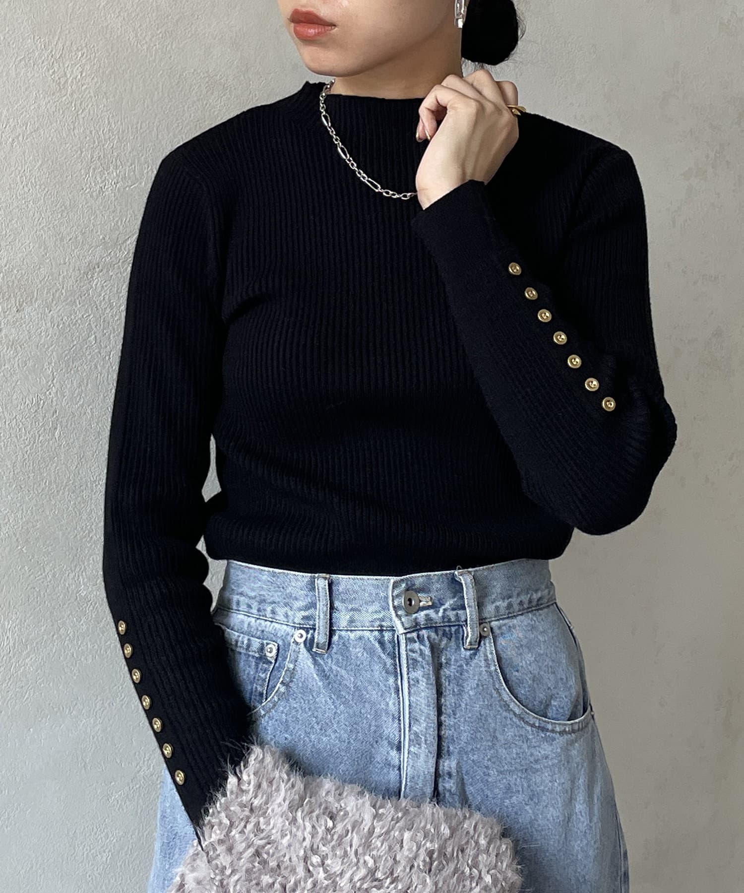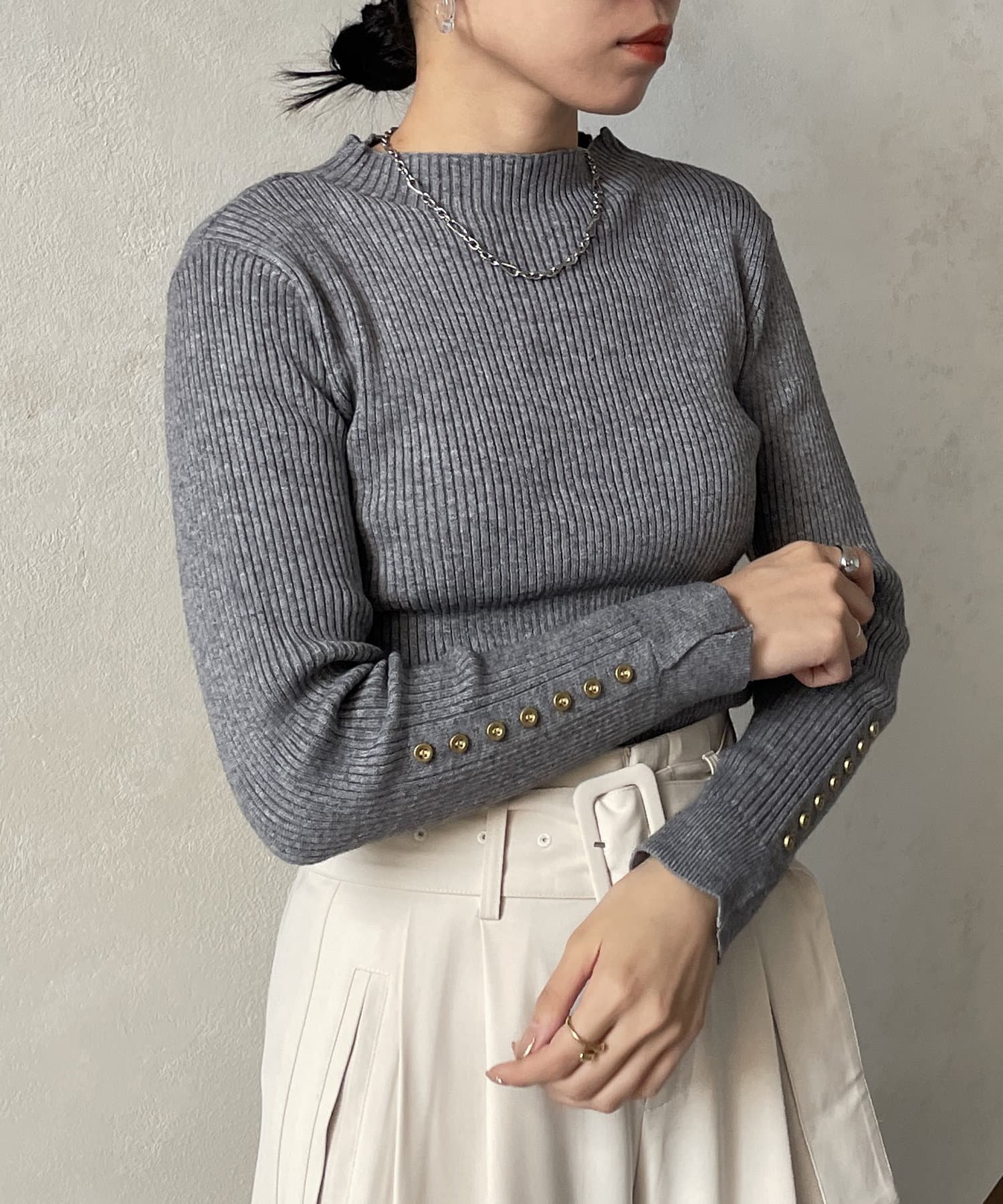 袖ボタンリブニットプルオーバー