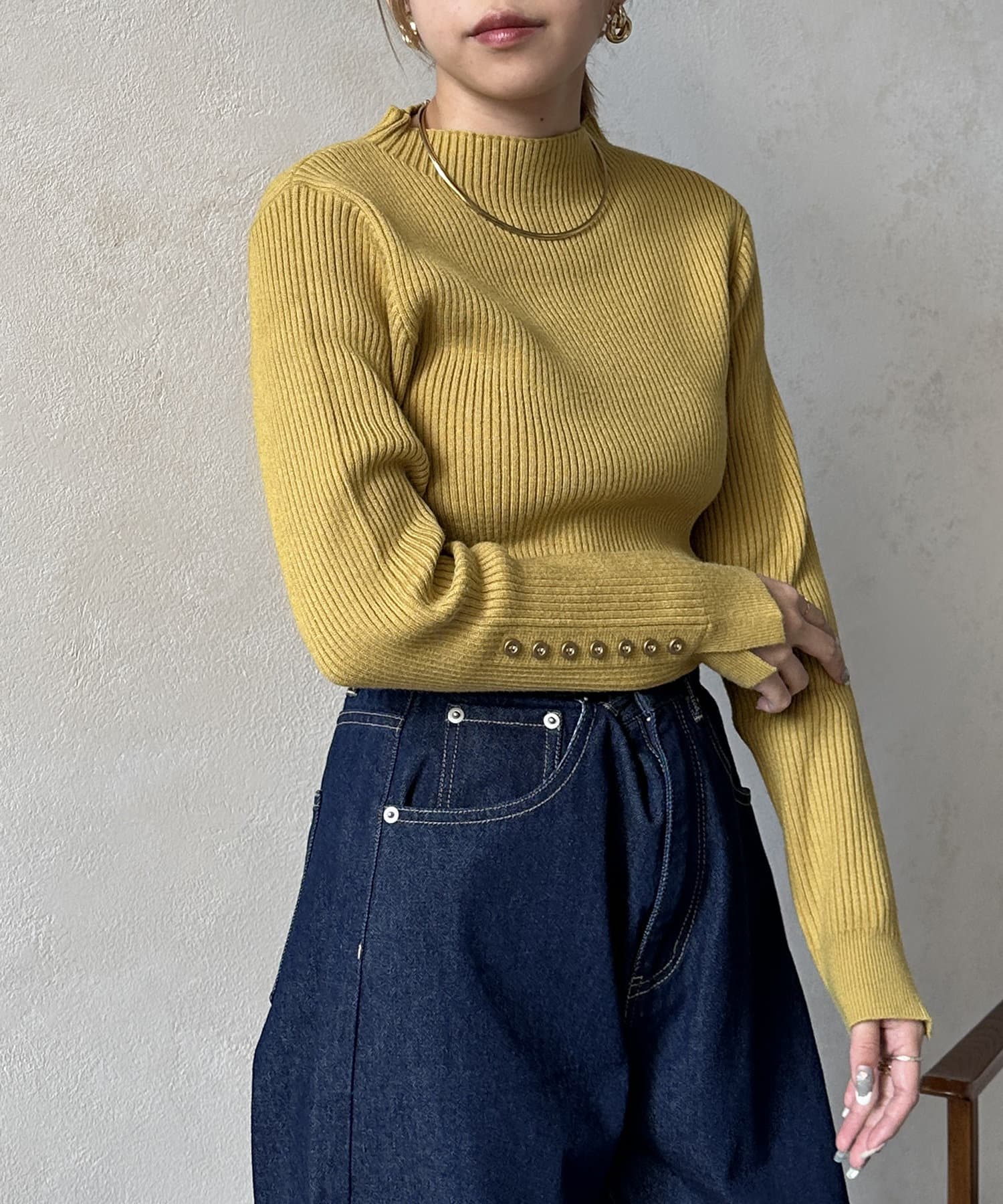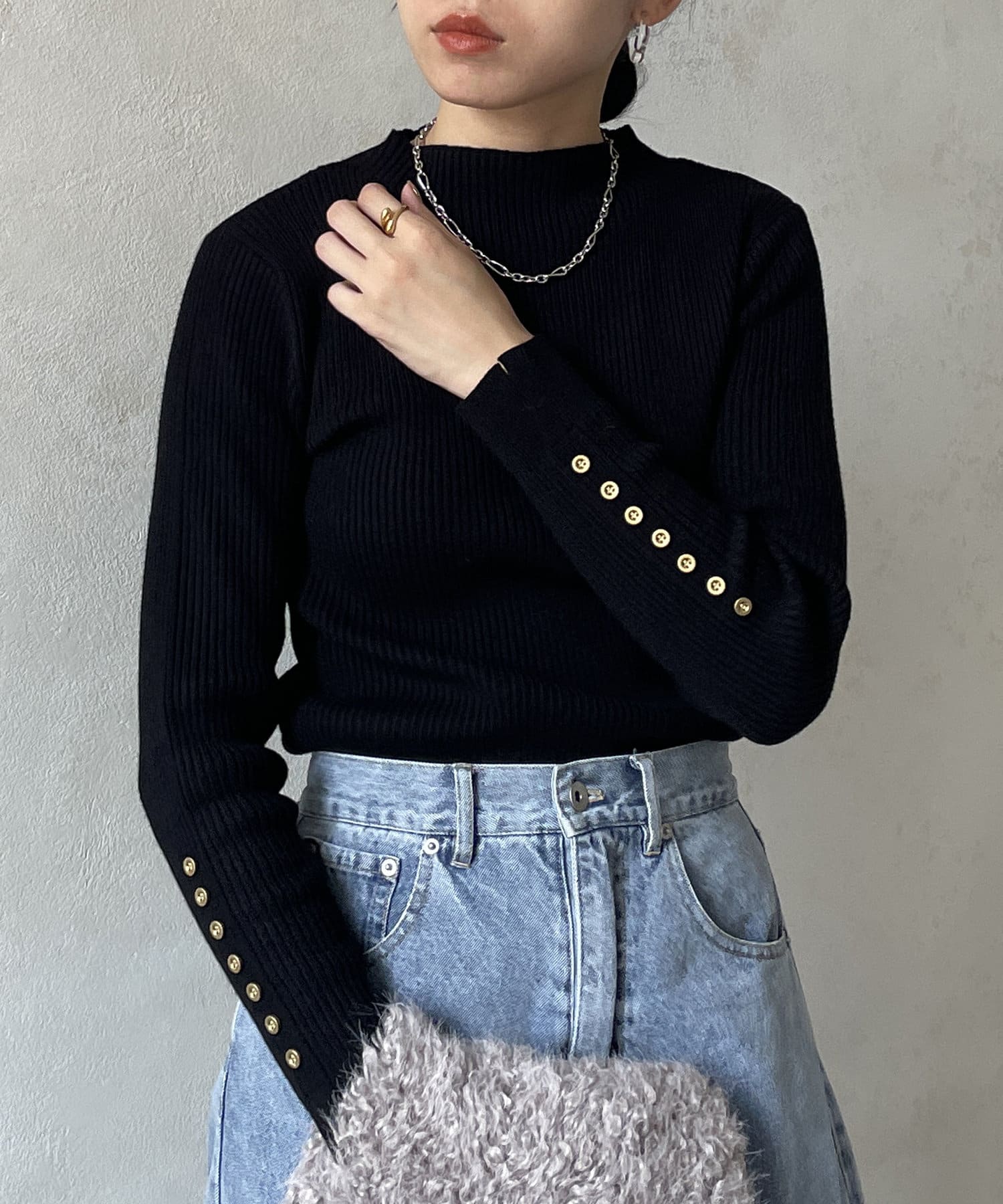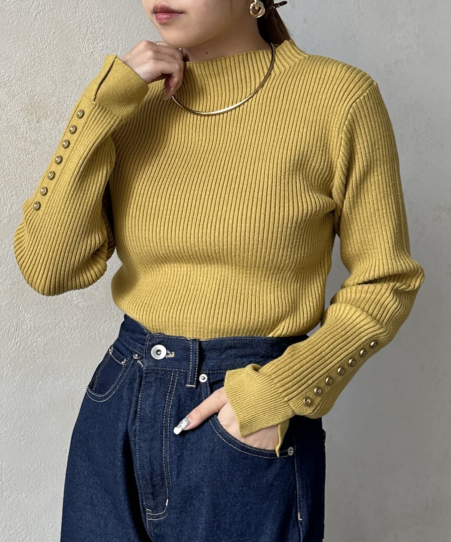 #リブニット #薄手ニット #ハイネック #スリット
