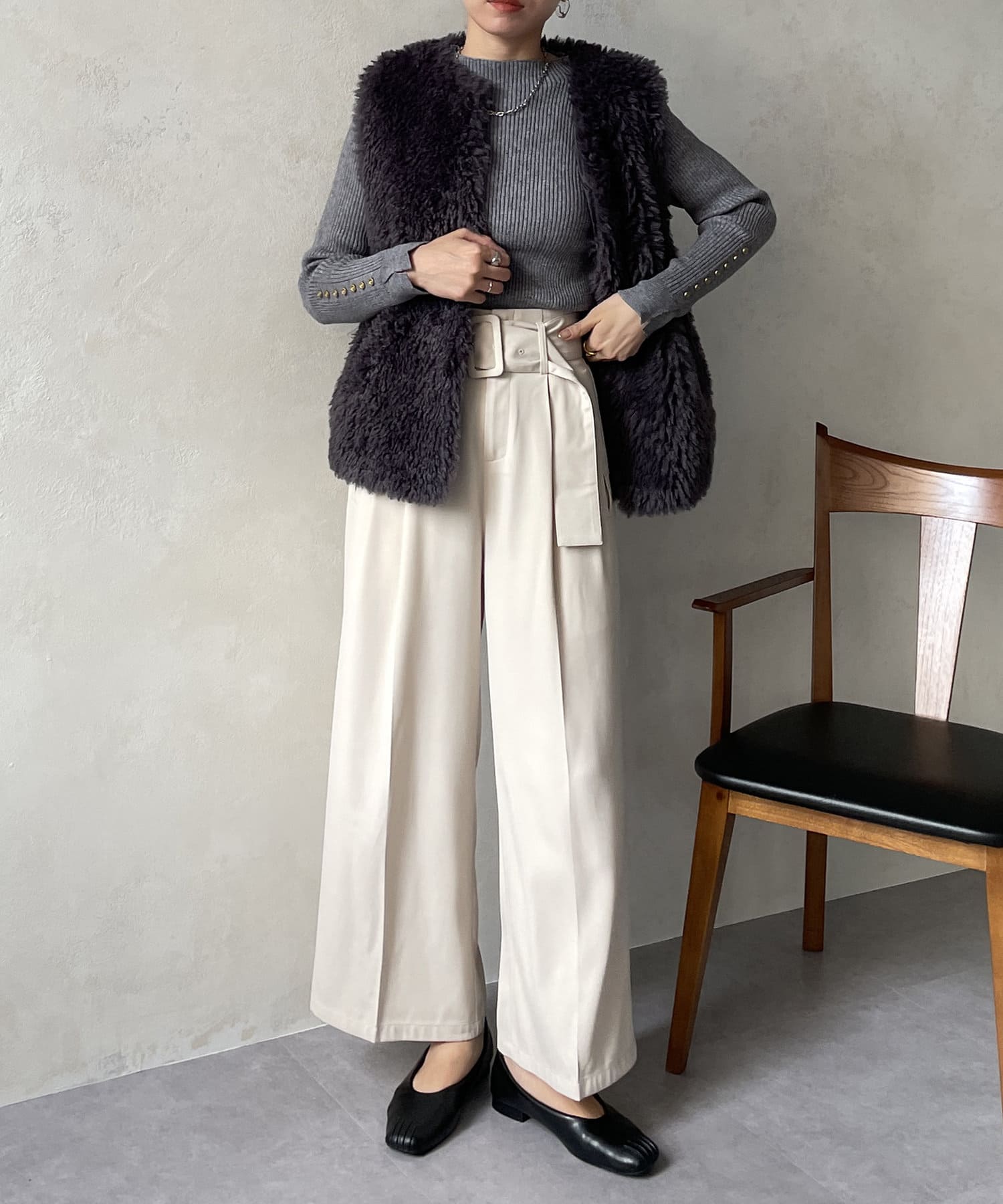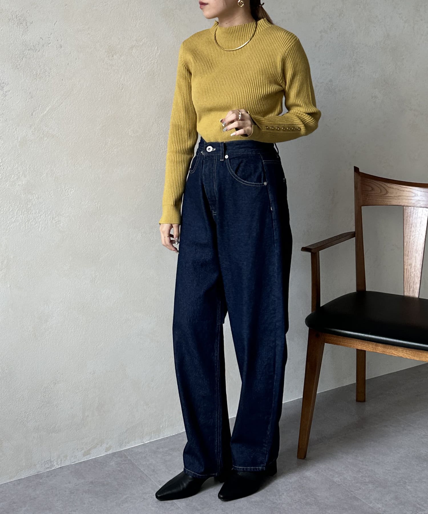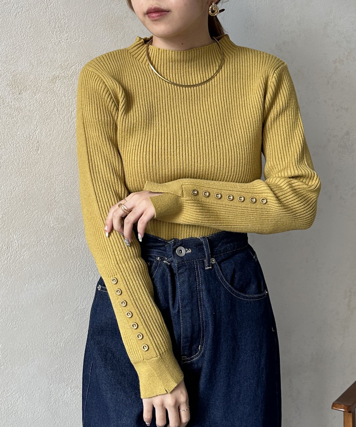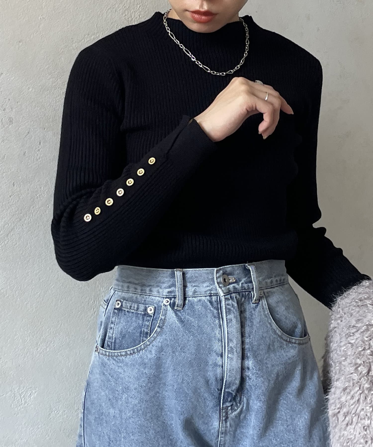 #リブニット #薄手ニット #ハイネック #スリット