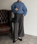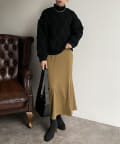 ・ボリューミーなシルエットを活かして、タイトスカートやパンツでメリハリをつけると、すっきりと着こなせます◎