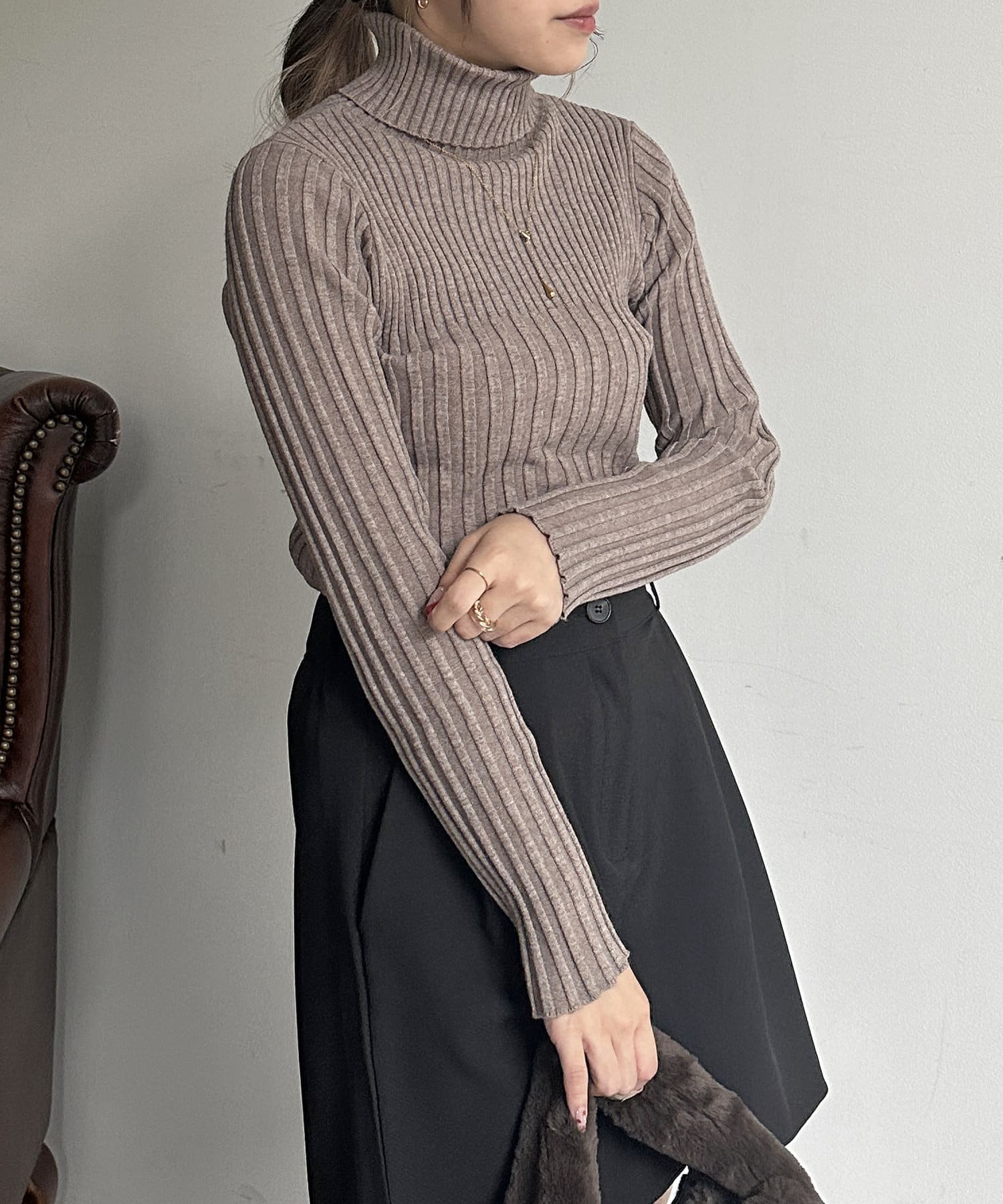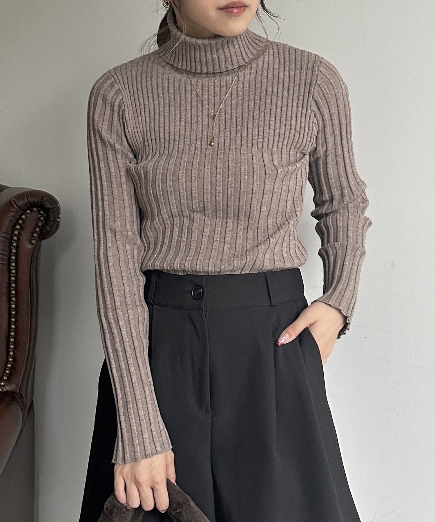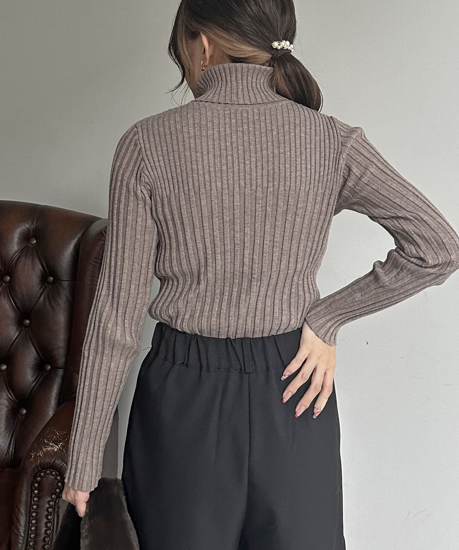 裏リブタートルニットプルオーバー