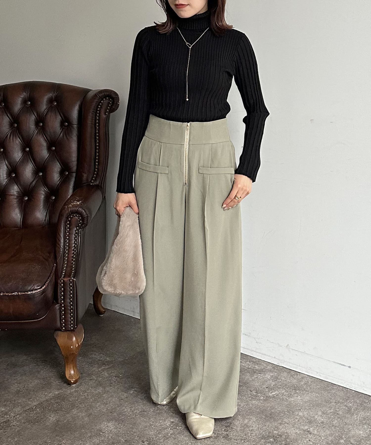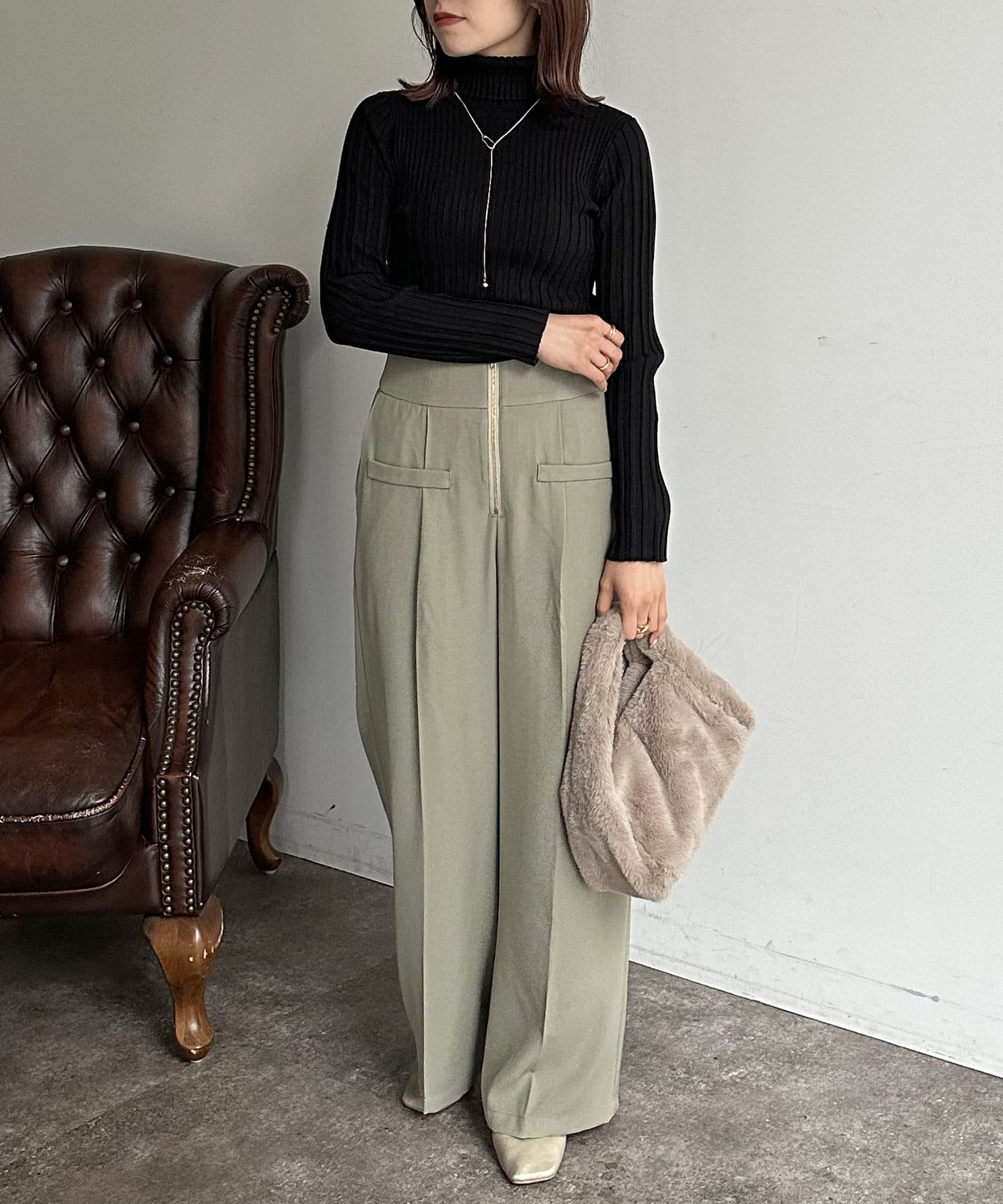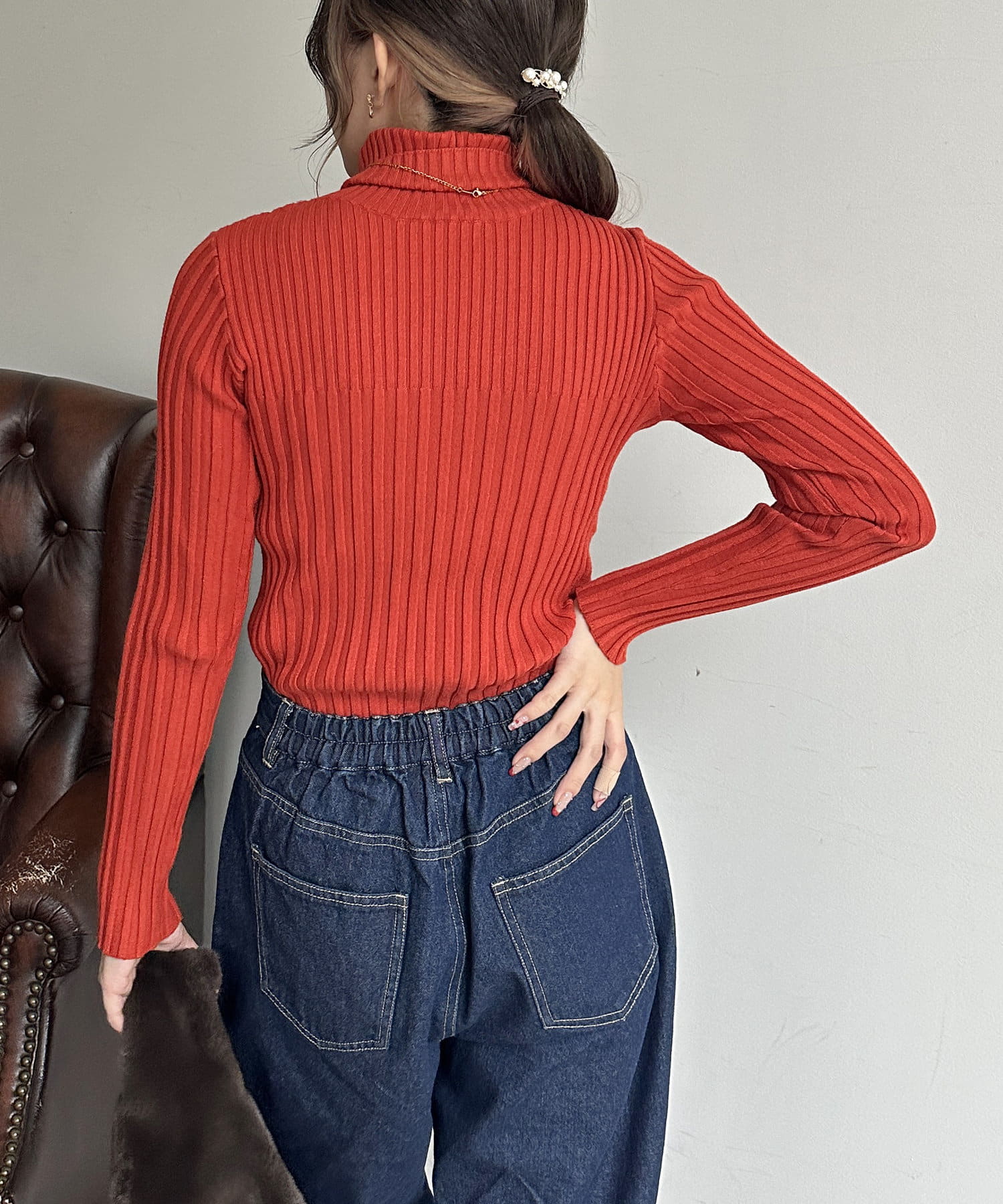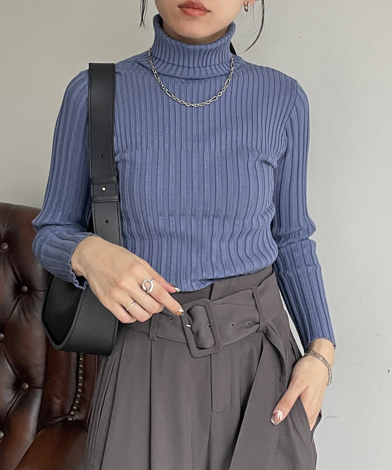裏リブタートルニットプルオーバー